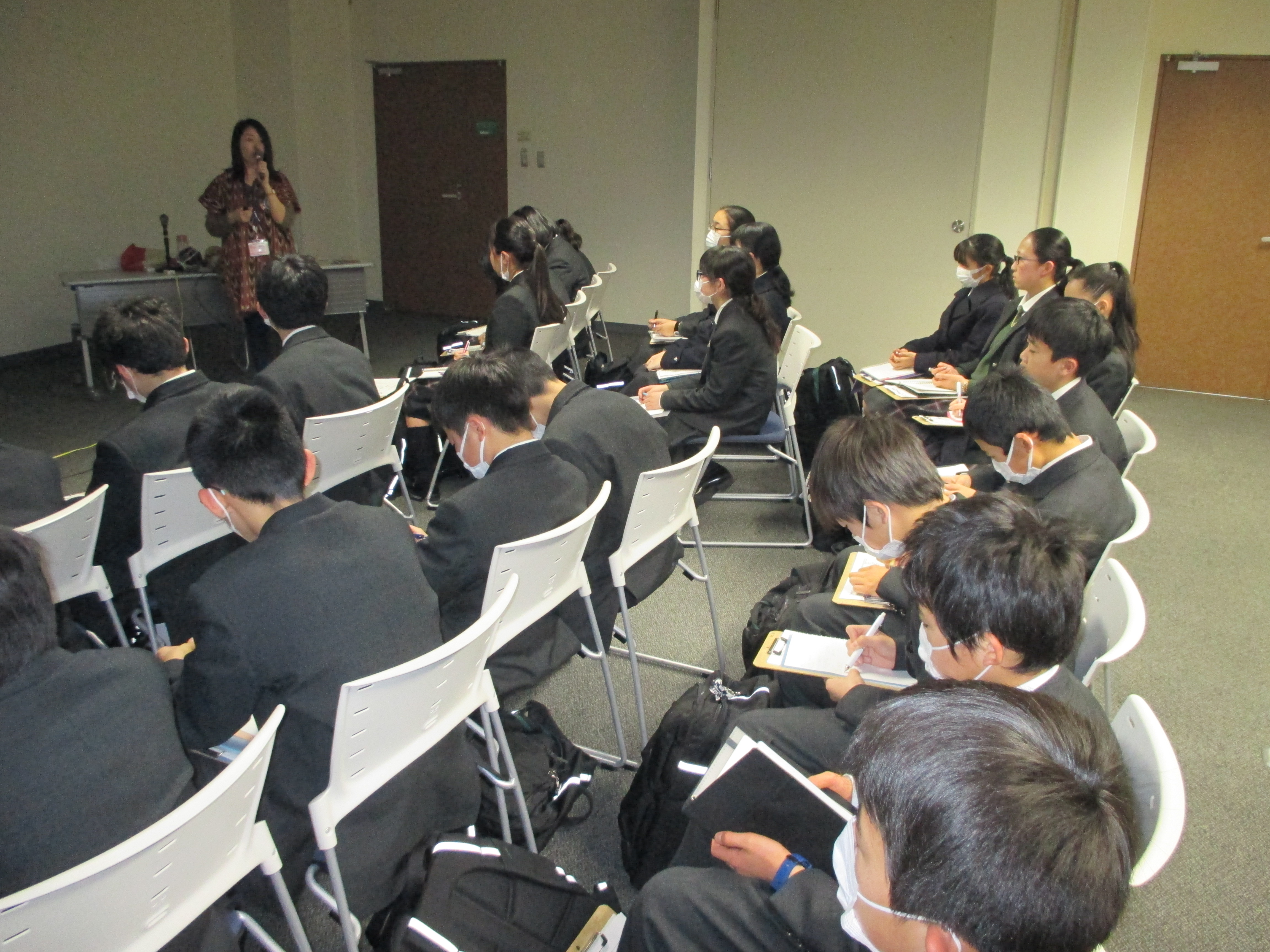 19日(水)は中1スペシャルウェンズデーでした。先週の水曜日は1,2組が、そして今週は3,4組がJICA地球ひろばにおじゃまいたしました。ザンビアとウガンダでの活動経験のある2名の青年海外協力隊経験者の方々に様々なお話を伺いました。「幸せとはなんだろう?」という問いには生徒達も考えさせられるものがあったようです。新しく知ったことや学んだことを「自分の生活に活かす」、そして「自分にできることを考えて行動する」ことの出来る人間に成長してほしいと思います。