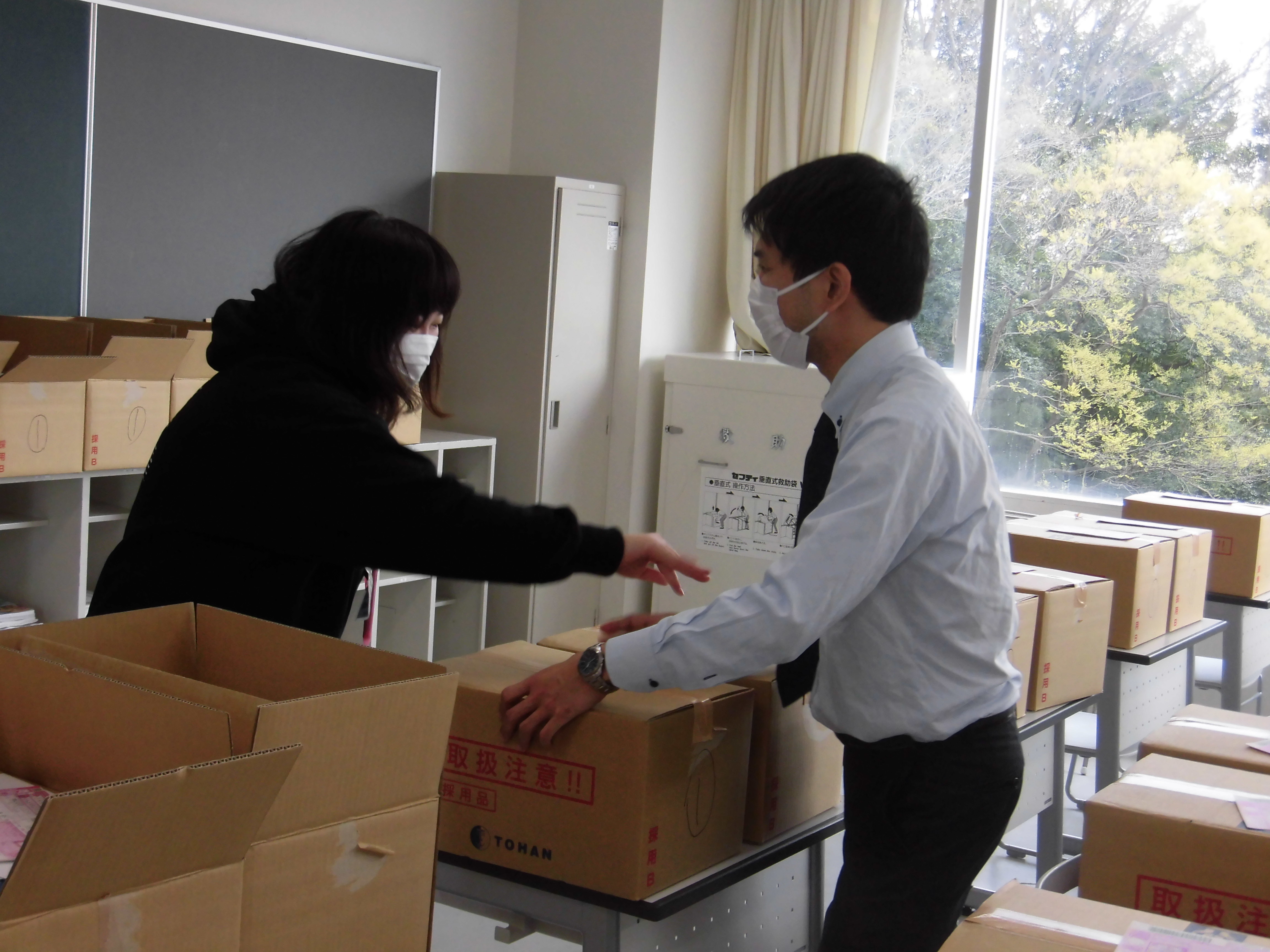 現在も新型コロナ感染症拡大防止のための休校は続いています。しかし入学式延期が決定する前からいつでも新入生を迎えられるように準備を進めてきました。休校中の今、まだ入学式は終えていませんが、新入生の皆さんが学校再開後にスムーズに学校生活や学習活動が始められるように先生方も日々準備をしています。本日、中1の先生方は、オンラインで皆さんの顔を見てコミュニケーションや授業が出来るように、オンライン会議システムを使い勉強会を行ないました。そして、入学式に新入生に渡す予定だった教材や学年通信第2号を入れた箱を明日金曜日の発送に向けて準備しました。1年生の学年通信には「今自分達にできることをやることが一番大切」と書きましたが、それは新入生だけでなく先生方も同じです。新2年生、3年生の先生方も生徒の家庭に送る荷物を準備しています。先輩になる2年生、最上級生になる3年生も日々どう一日を過ごすかを考えて登校再開までみんなで頑張りましょう。