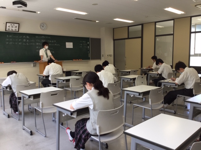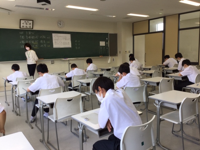 休校期間中学習確認考査を行いました。生徒は今日も全力で考査を受けました。来週は時差登校などの工夫をして、教室での授業が始まります。