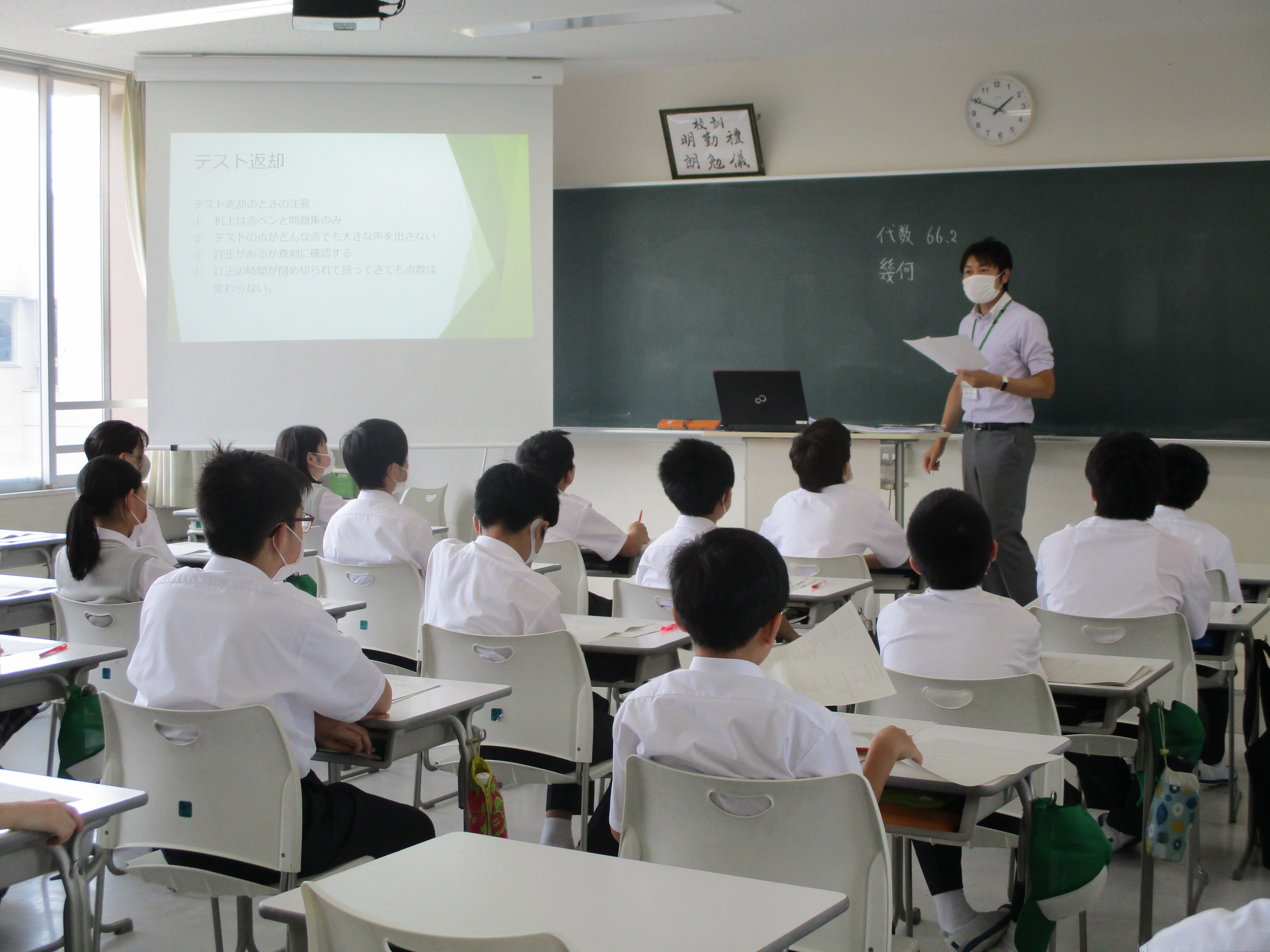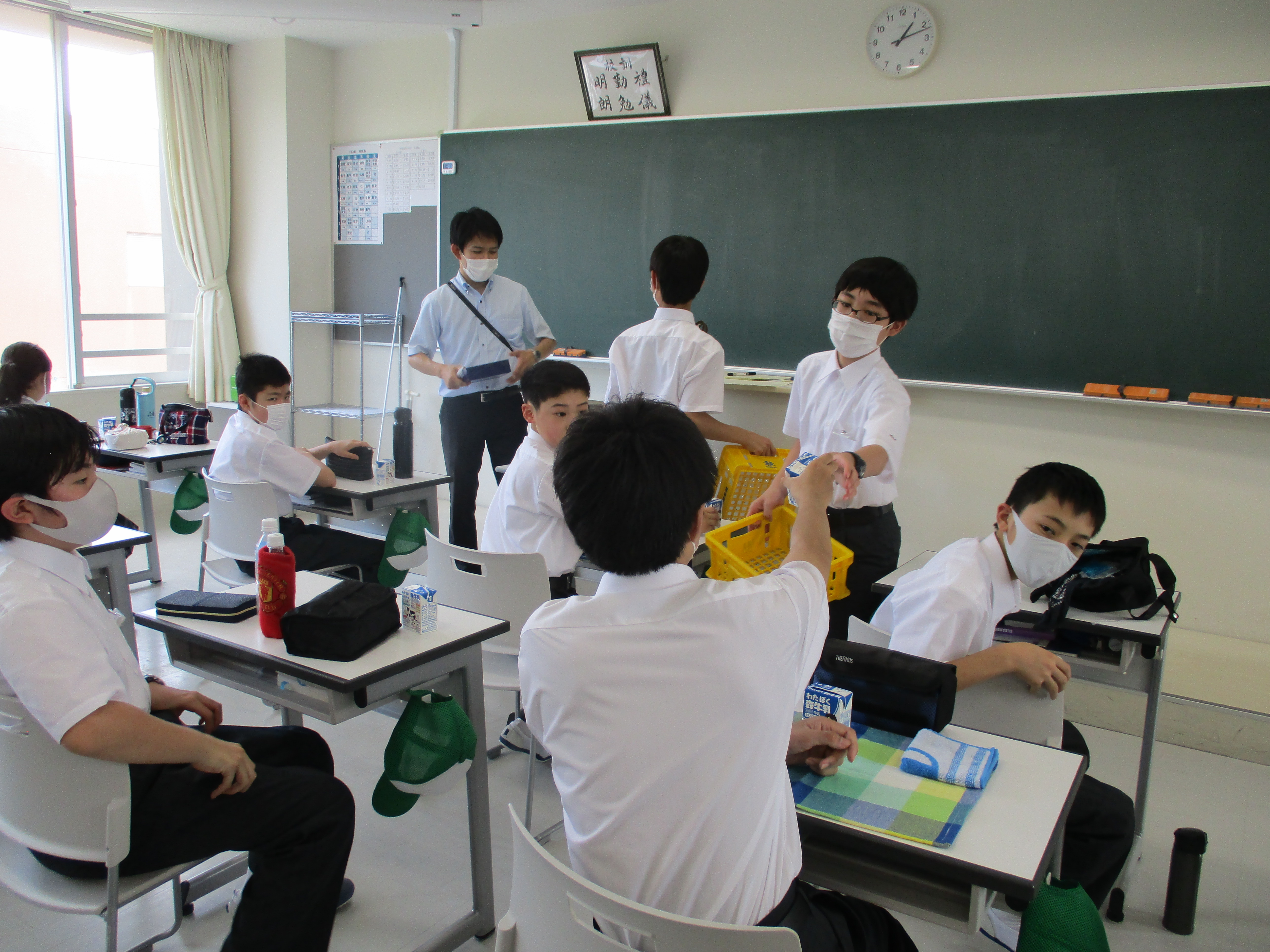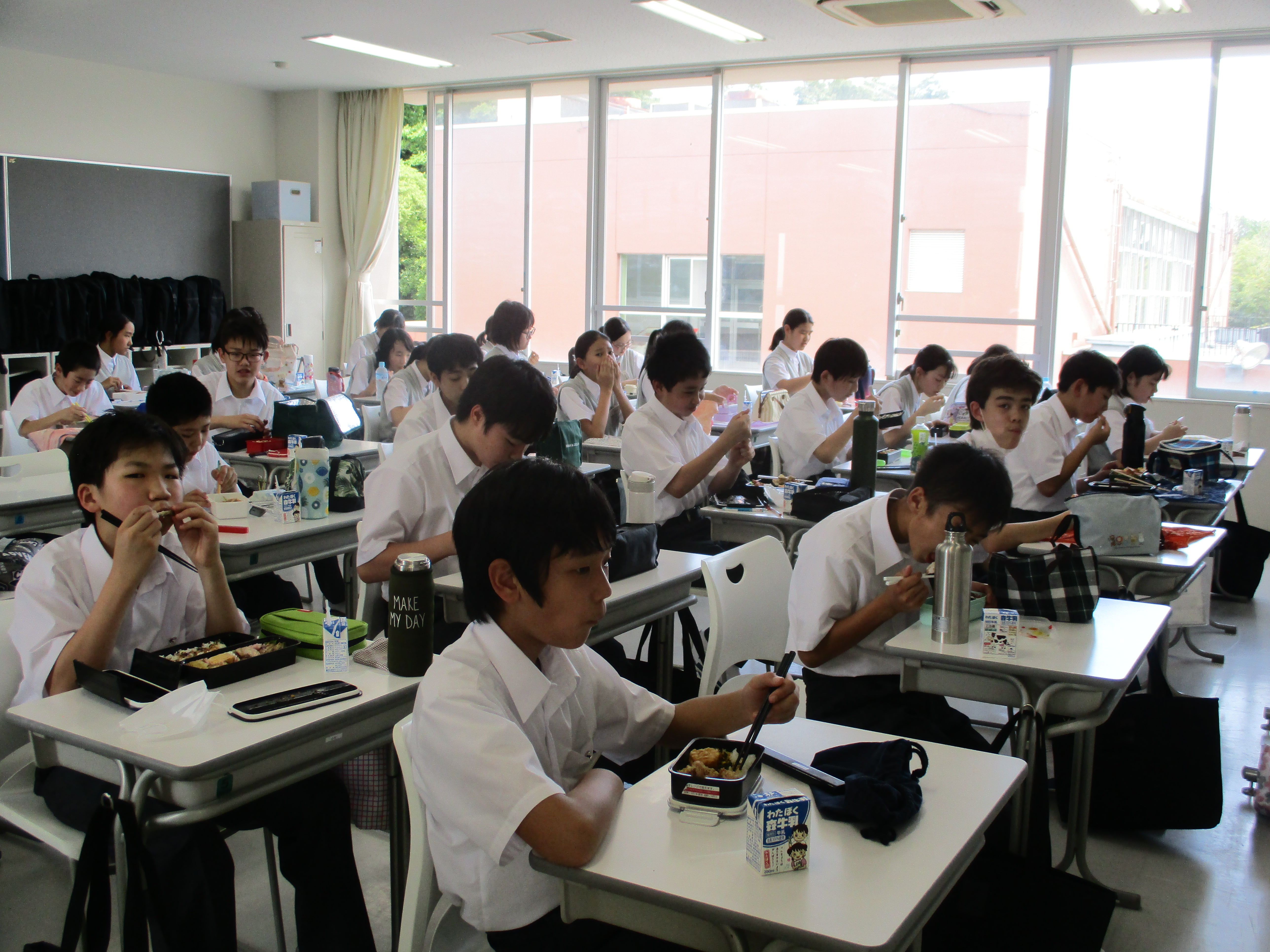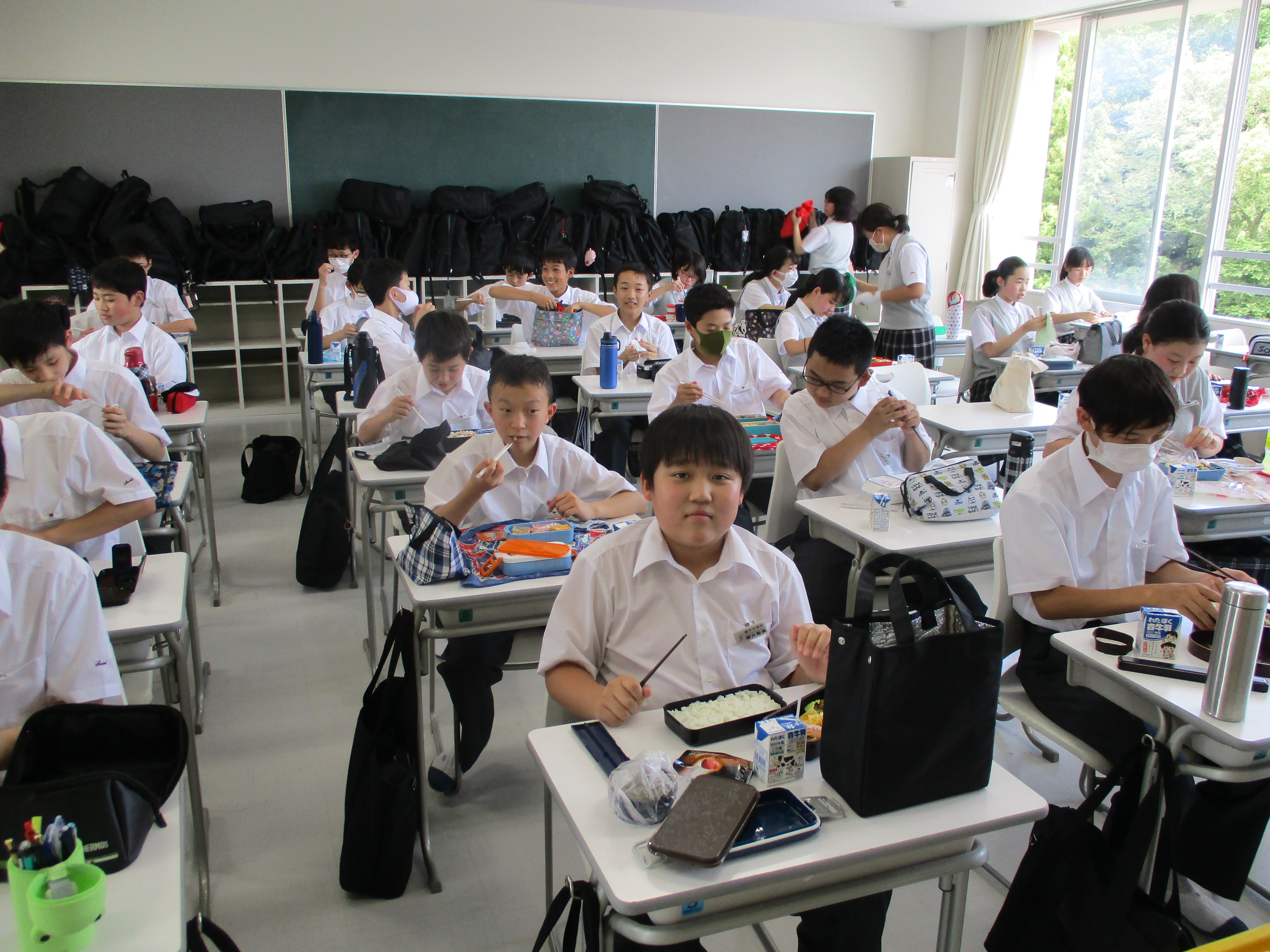 今週から時間を短縮して学校での授業が始まりました。1年生にとっては学校で授業をするのは初めてです。3,4限に体育の授業では整列、号令、準備体操など、これから6年間体育の授業に必要な基本の動きを練習しました。初めてのお弁当の時間はせっかくお友達を作るチャンスでしたが、前を向いておうちの人が作ってくれたお弁当を楽しみました。早くグループになって楽しく食べられる日が来るまでもう少しの我慢ですね。オンライン授業はしていたものの、やはり教室で実際に授業を受けると気持ちも引き締まりますね!!考査が返却された教科もありました。必ず復習をして次につなげる学習をしましょう。