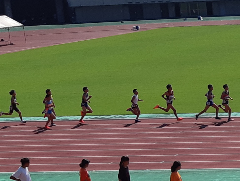 8月15日(土)・16日(日)熊谷スポーツ文化公園陸上競技場で行われた「第66回全日本中学生通信陸上競技埼玉県大会~アシックスチャレンジカップ~」1年生男子1500mに1年生渡部 智義が地区代表として出場しました。記録は4分46秒82で9位という結果になりました。自己ベストから20秒遅れてのゴールとなり、惜しくも入賞は逃してしまいましたが、気温38℃の猛暑の中で良く頑張ったと思います。