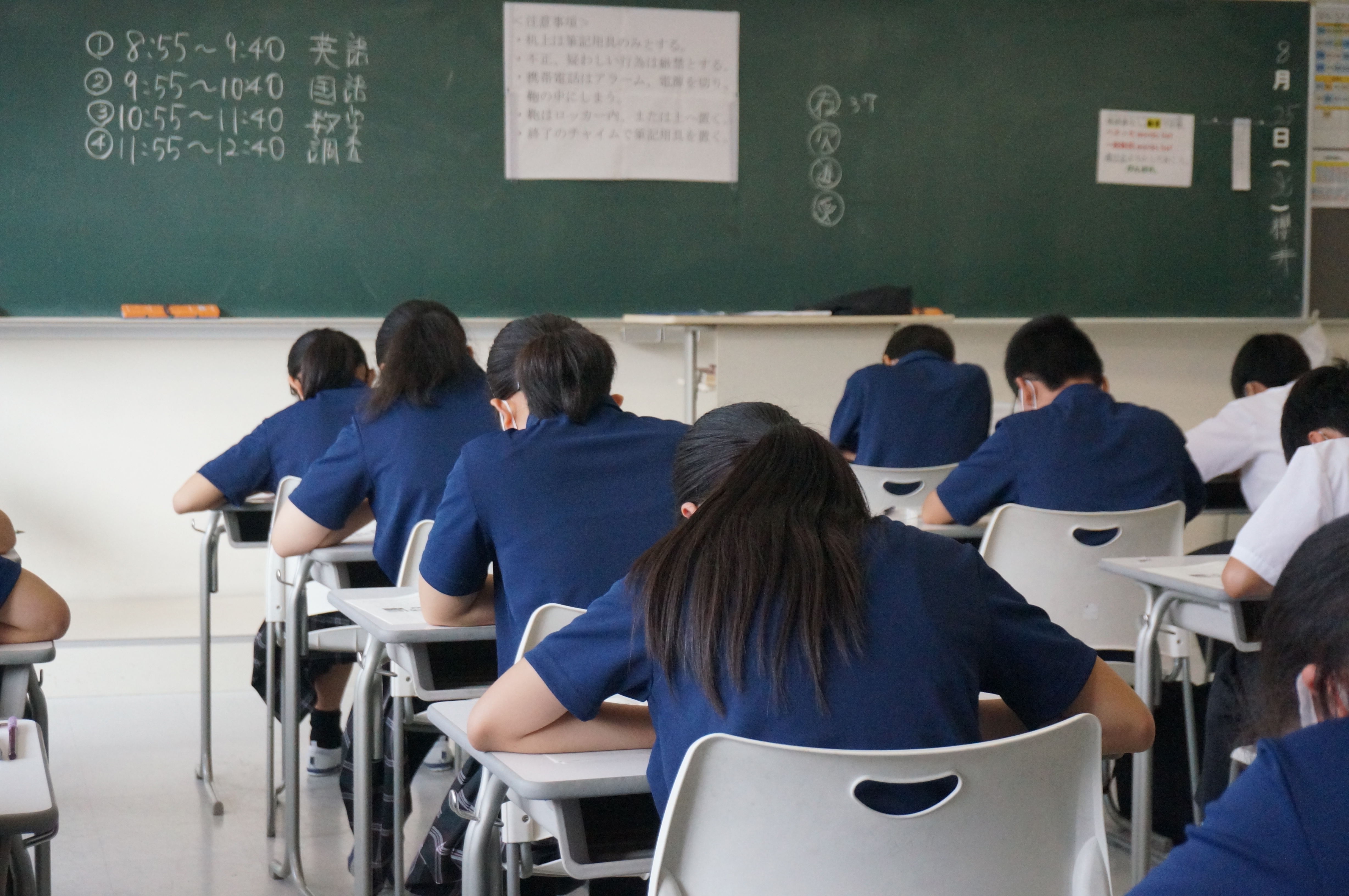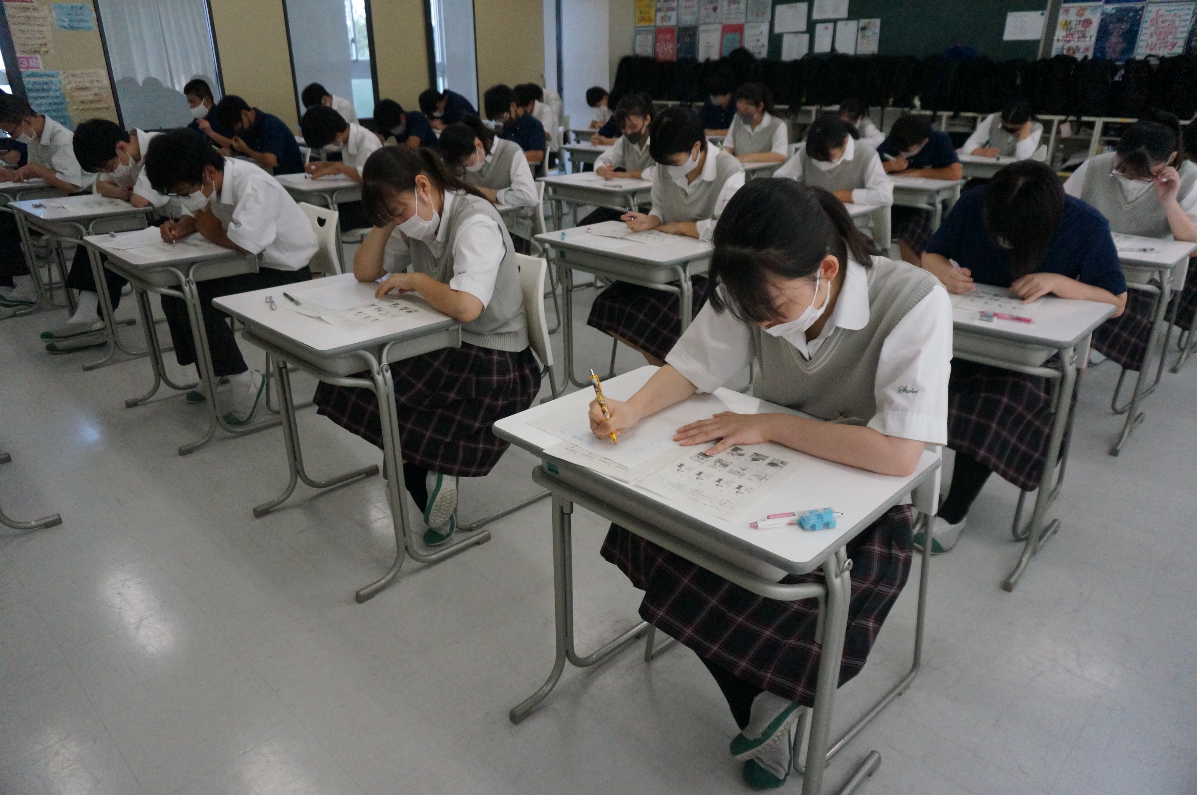 学校が再開してから、初めての模試です。真剣に取り組む姿が見られました。範囲があり、担当の先生のアドバイスにそって準備のできる定期考査と違い、このテストでは本当の実力が明らかになります。日頃の学習の成果を発揮しました。結果が楽しみですね。