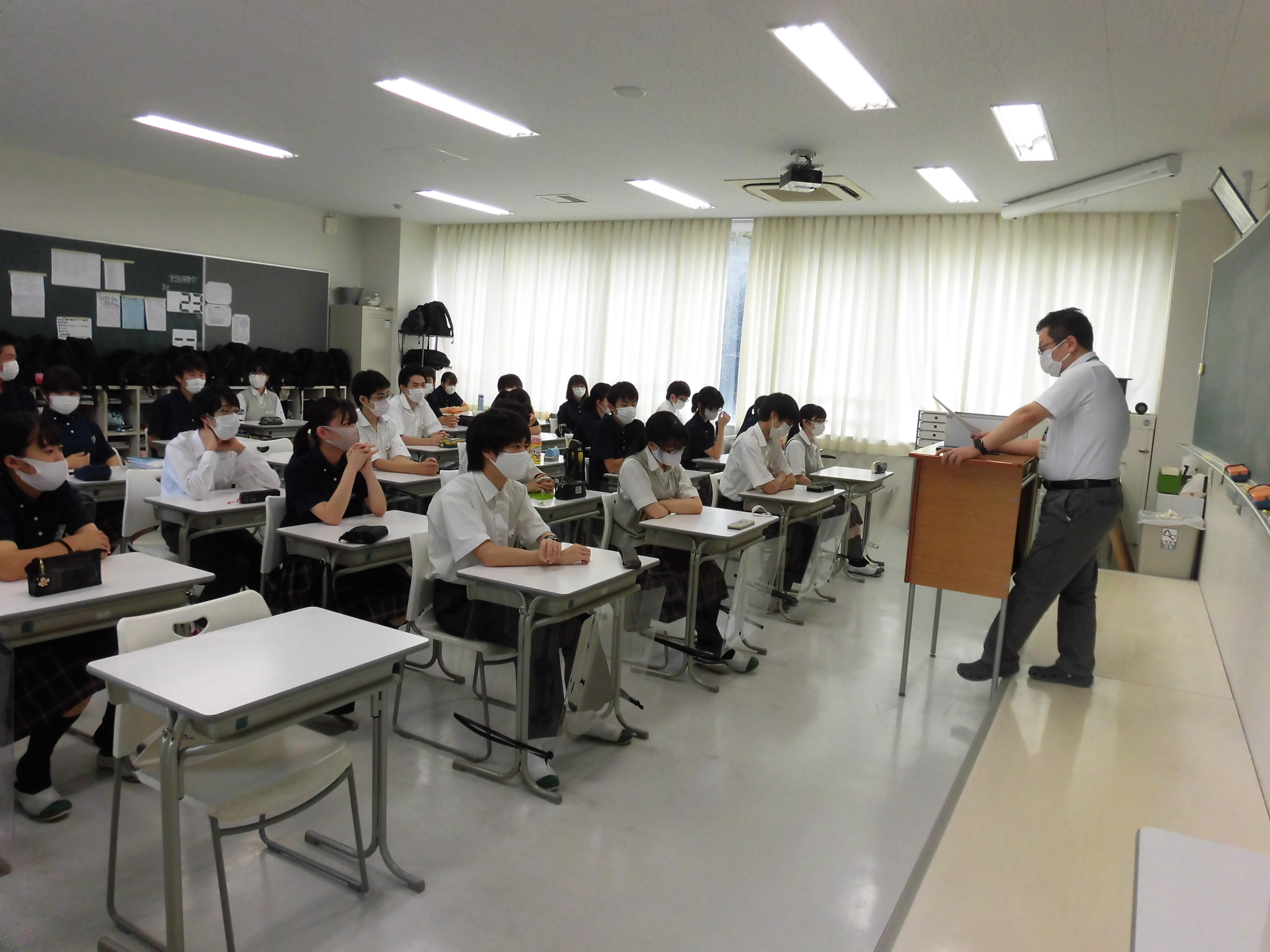 本日、中学・高校で防災学習が行われました。例年は避難訓練が行われるところですが、今年度は感染症の拡大防止のため、各教室・放送での防災学習となりました。避難経路の確認と通報訓練、諸注意、また杉戸消防署員の方からの講話と校長先生のお話を各教室の放送で聞きました。日頃から防災に対する意識をもち、いざというときにも落ち着いて行動したいものですね。これを機会に、ご家庭でも有事に備えて話し合いをしてみてください。