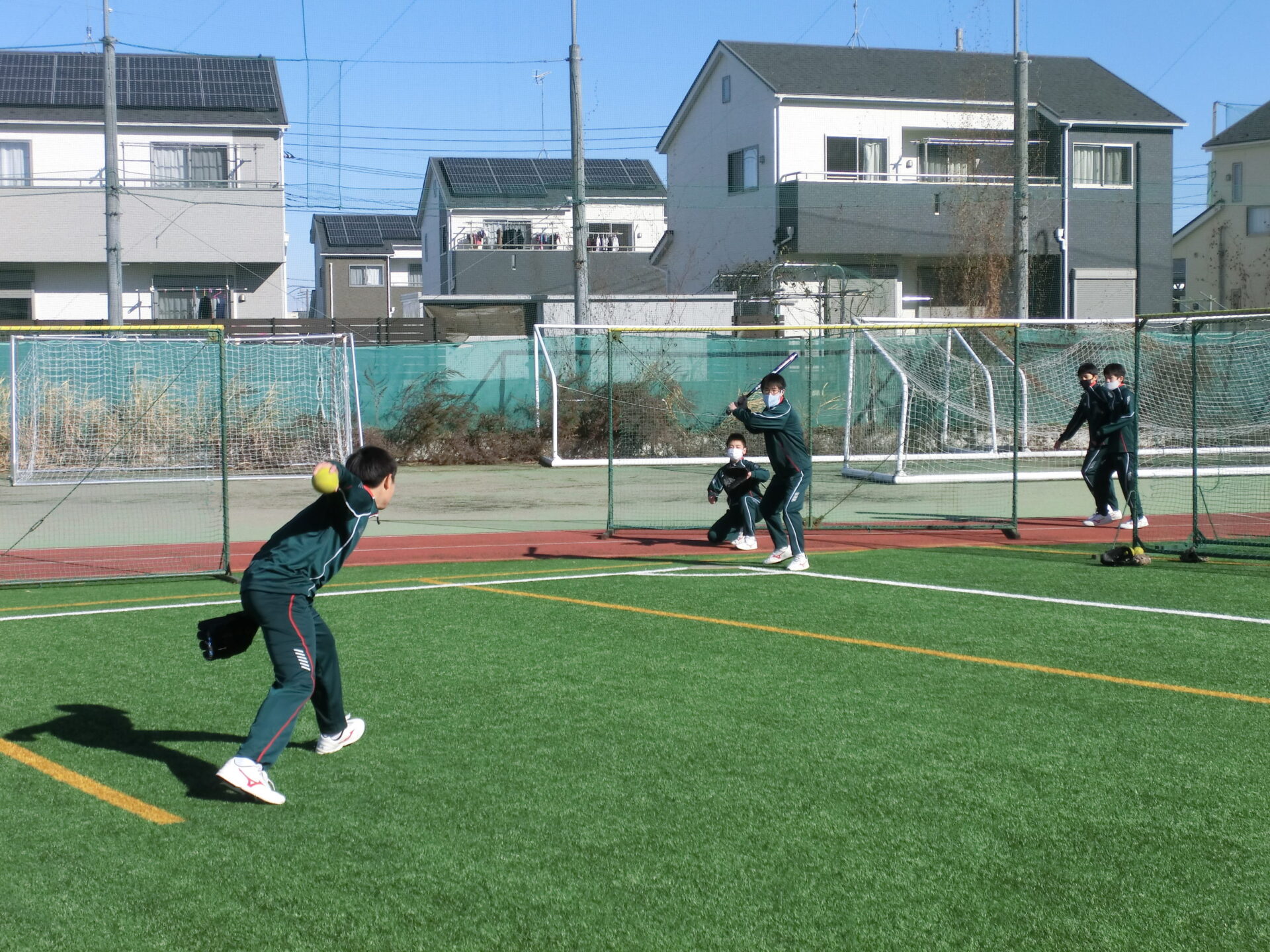 北風吹く極寒でも生徒たちには関係ないようです。晴天のもと思いっきりソフトボールを楽しんでいました。
