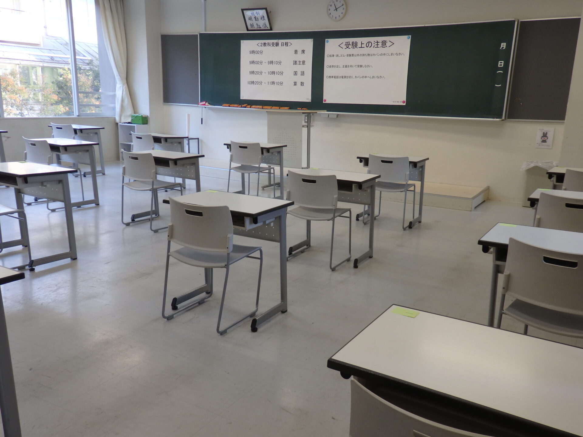 明日は大宮会場や越谷会場で受験する児童の皆さんもいますね。そちらの会場のほうも準備はばっちりです。安心して明日来てください。なお、各会場では、児童の皆さんも保護者の皆様にも検温と消毒をしていただきます。マスクも忘れずにしてきてください。ご協力お願いいたします。