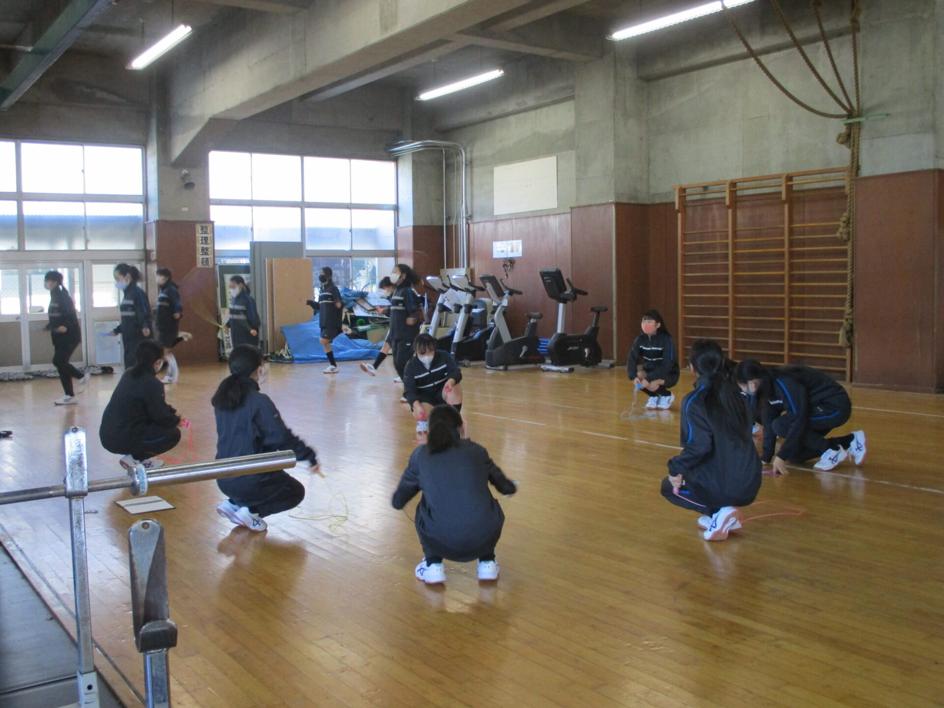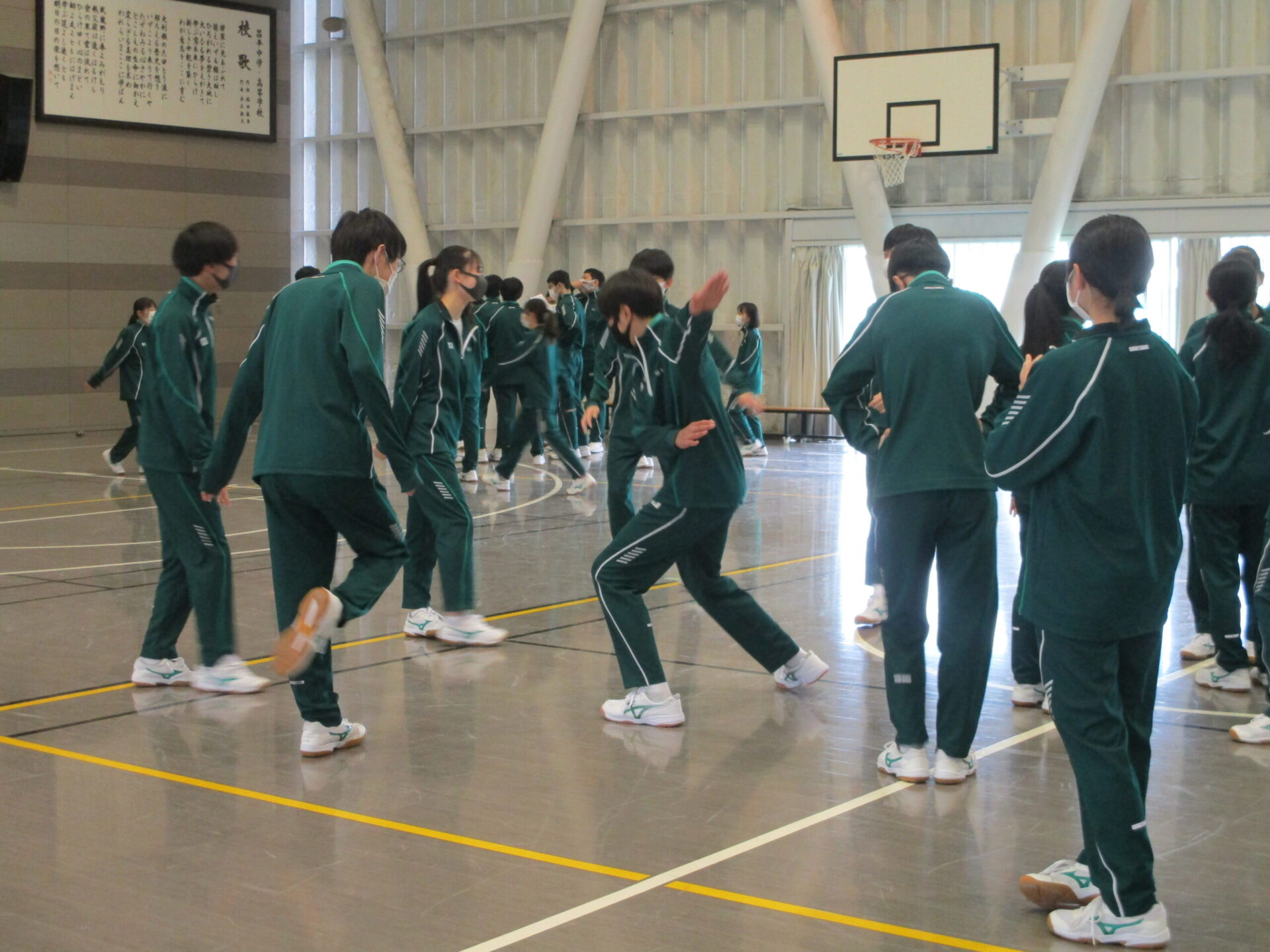 今体育の授業では、1年生はリズム縄跳び、2、3年生は創作ダンスに取り組んでいます。課題曲は1年生が鬼滅の刃主題歌「紅蓮華」、3年生はBTSの「Dynamite」、2年生は自由曲です。コロナの影響で行事がほとんど中止になってしまい、なかなかクラスの交流ができなかったので、みんなで協力をして作品を作っています。どの教科においても、客観的な視点を持って活動に取り組むことが大切です。生徒達は様々な視点から創造性豊かに作り上げている途中ですが、様々なクラスのカラーがよく出ています。自分らしさやクラスらしさをみんなで表現できればいいと思います。特に3年生は発表会に向けて密を避け、担任の先生が立ち会って朝練習をするなど、各クラスとも熱が入っています。