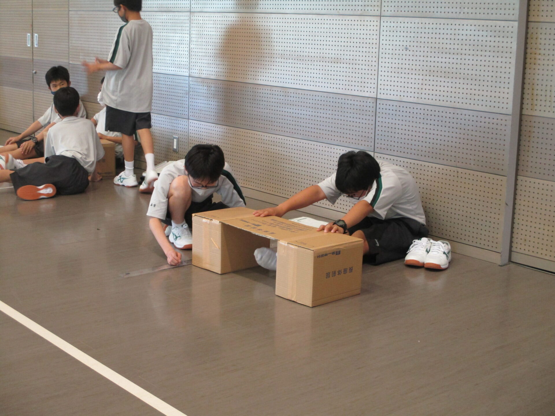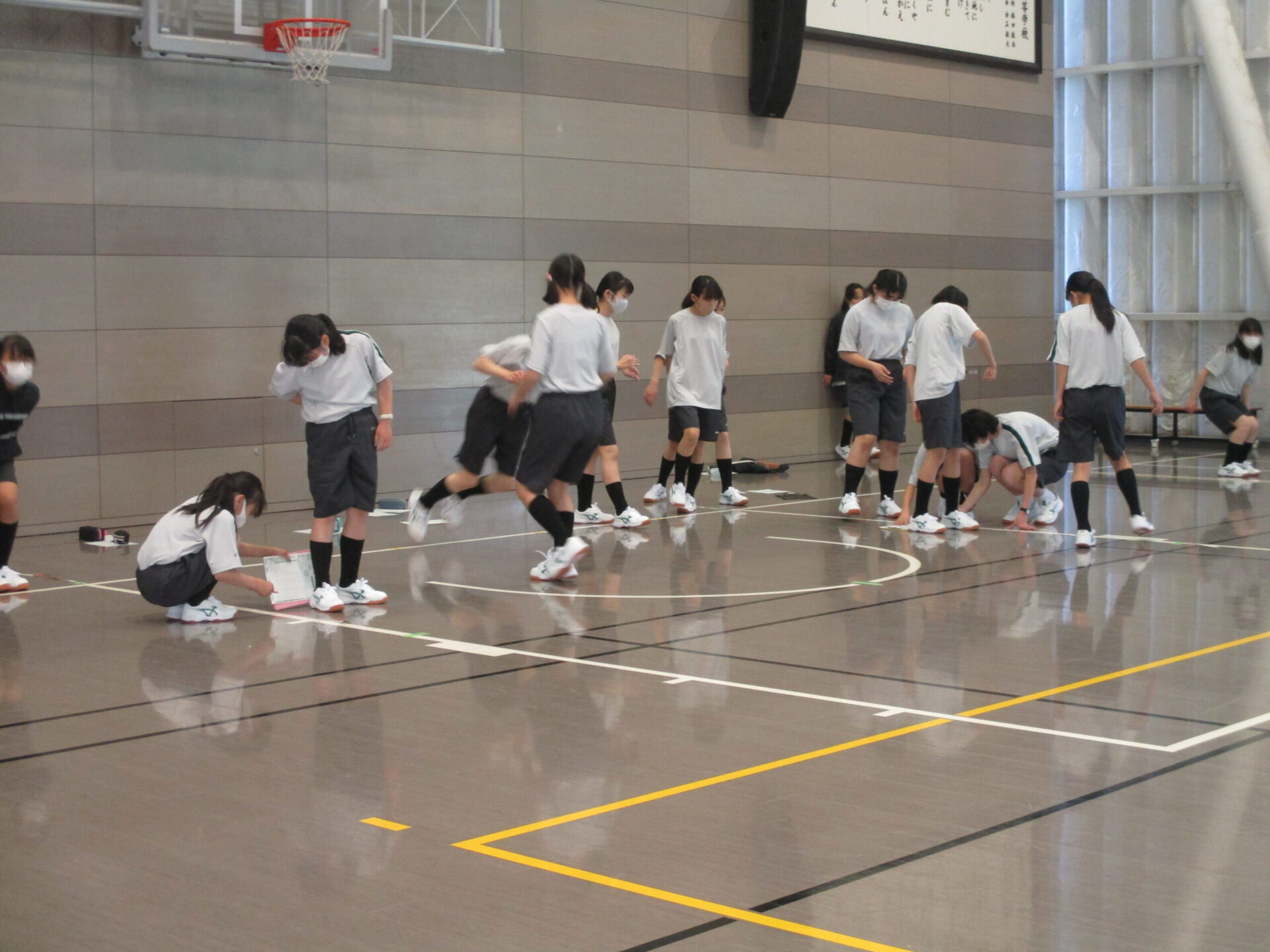 サブアリーナでは、立ち幅跳び、長座体前屈を行いました。