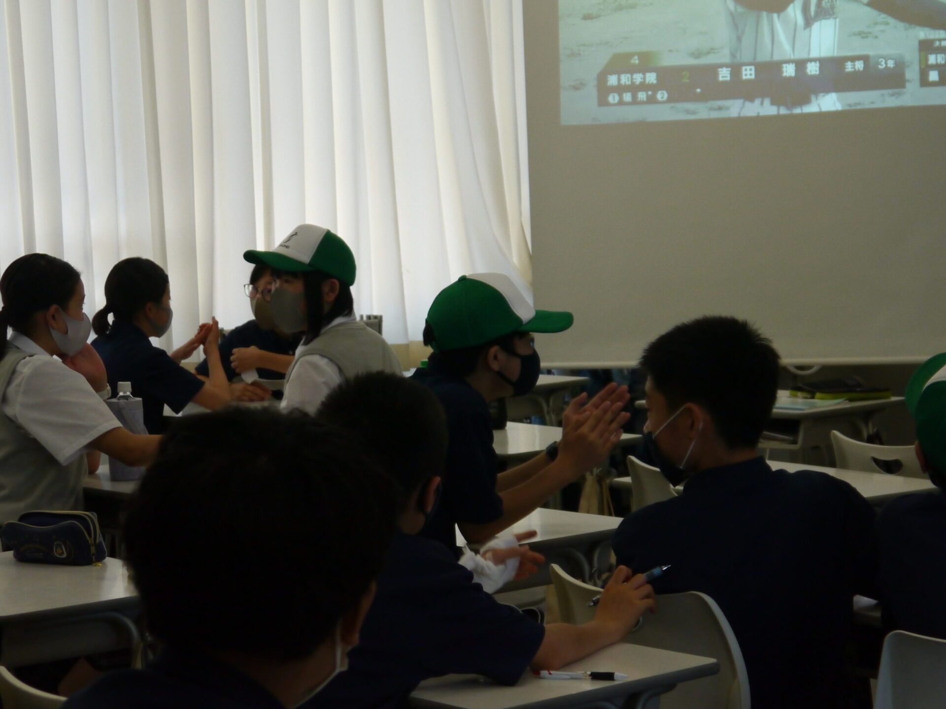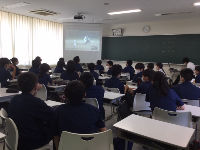 今日は全国高校野球選手権埼玉県大会の決勝戦があるため、生徒は1限に夏期講習を受け、2限と3限は映像視聴形式にて全クラスで野球部の応援をしました。クラスには、本校の法被や帽子を身に着けて応援する生徒や、思わず身を乗り出して応援する生徒がおり、「がんばれ!」の声援や「やったあ!」という歓声も多くのクラスから聞こえました。祈る姿も数多く見られました。3限終了後は、自由参加での応援でしたが、多くの生徒が教室に残り、昌平高校生の勇姿に心からの声援を送り続けました。また、事前に申し込みを済ませていた一部の生徒は、球場で応援しました。