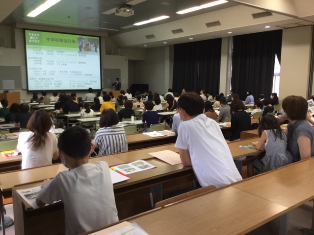本日、学校説明会を、新規来校の方と再来校の方とで、会場を分けて実施しました。どちらの会場でも、始めに、学校長からお話をさせていただき、その後、各担当者から生徒の学校生活などについて説明させていただきました。説明会後は、自由に校内を見学していただきました。感染対策にご協力いただきながら、多くの方にご来校いただきましたことに感謝申し上げます。ありがとうございました。