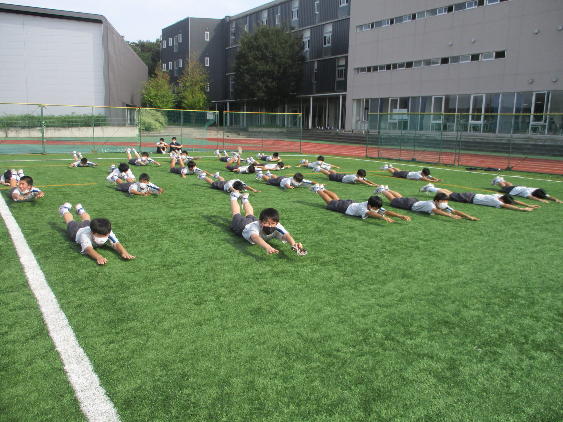 コロナ対策で手洗い、うがい、消毒を徹底し、マスクをして、みんな元気よく学習や体育活動に積極的に取り組んでいました。