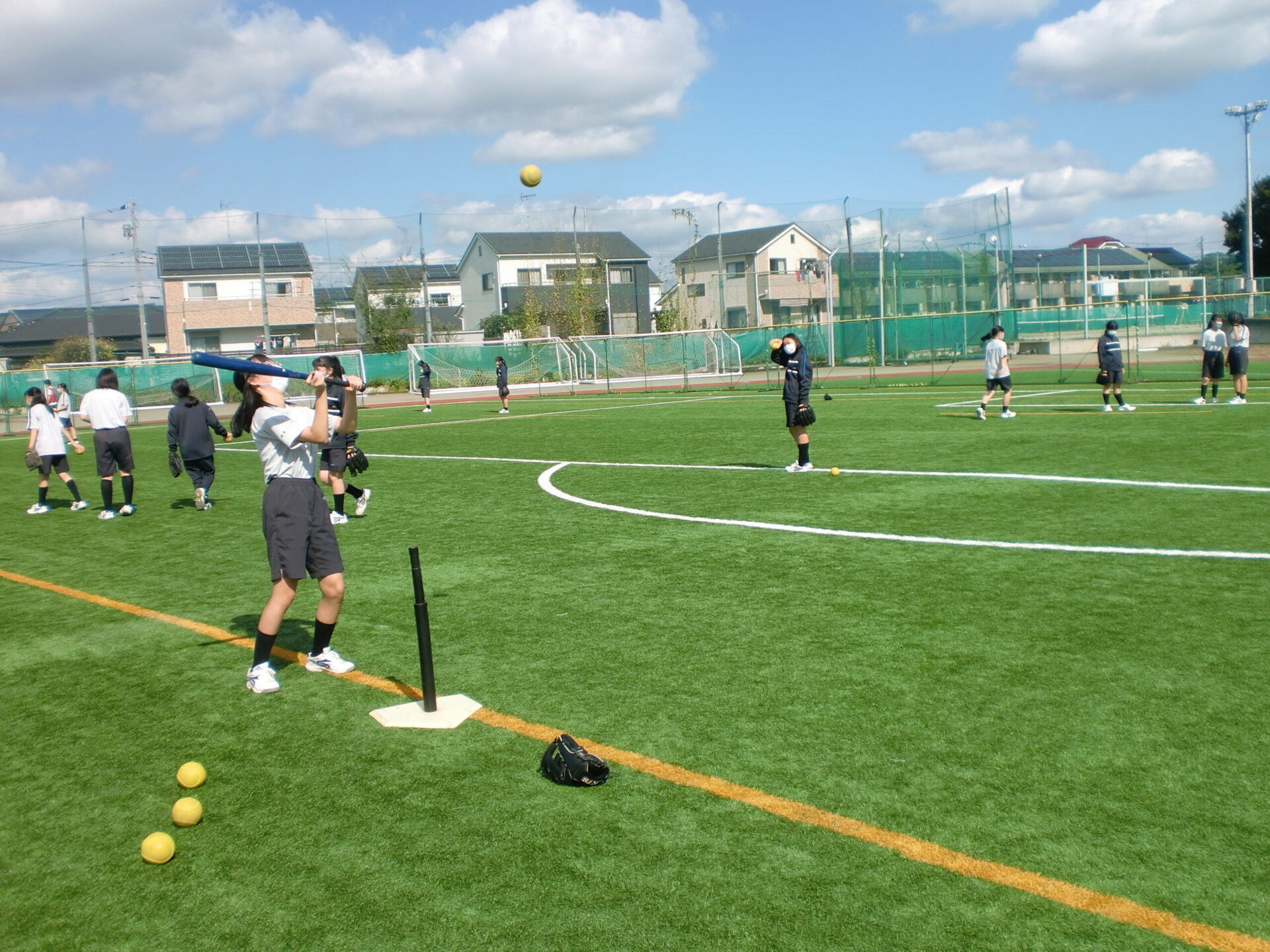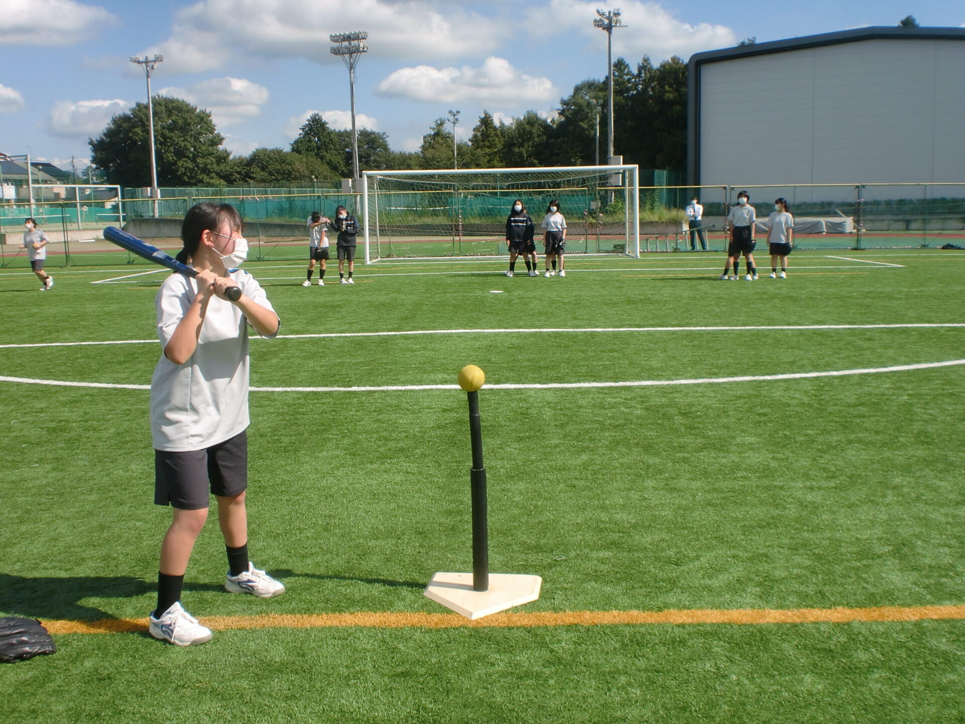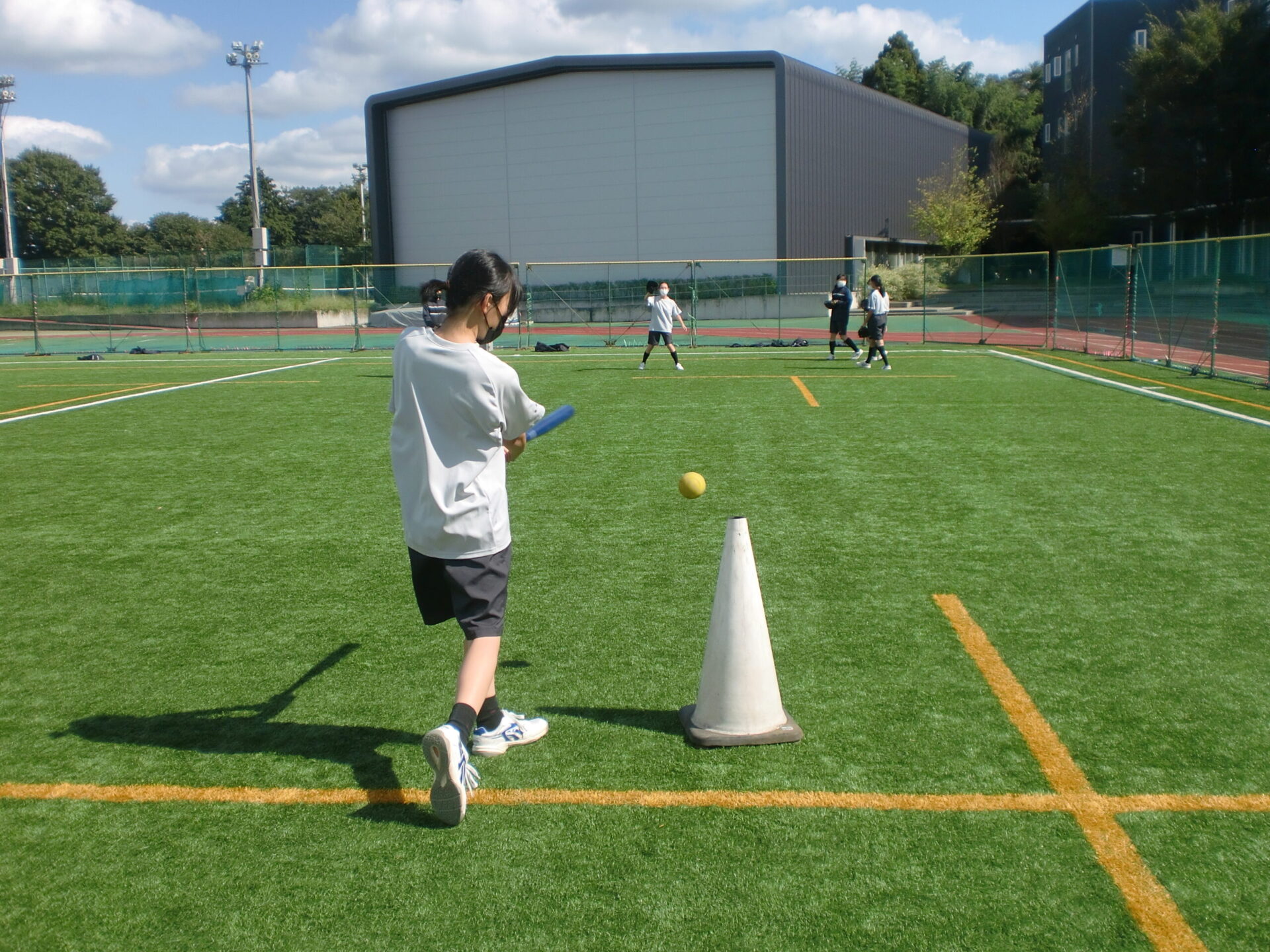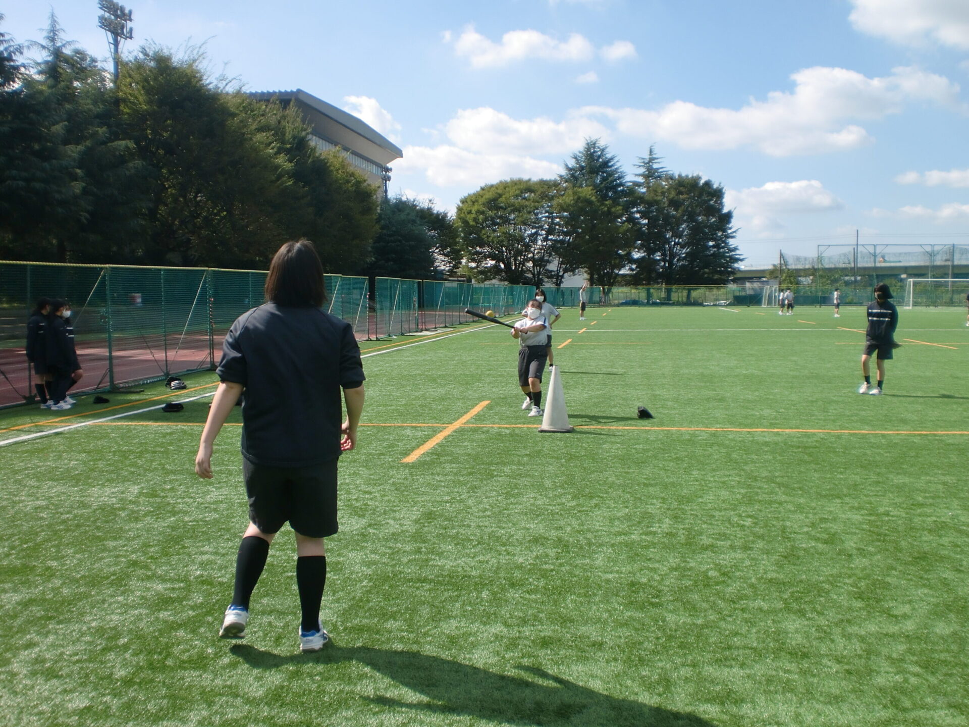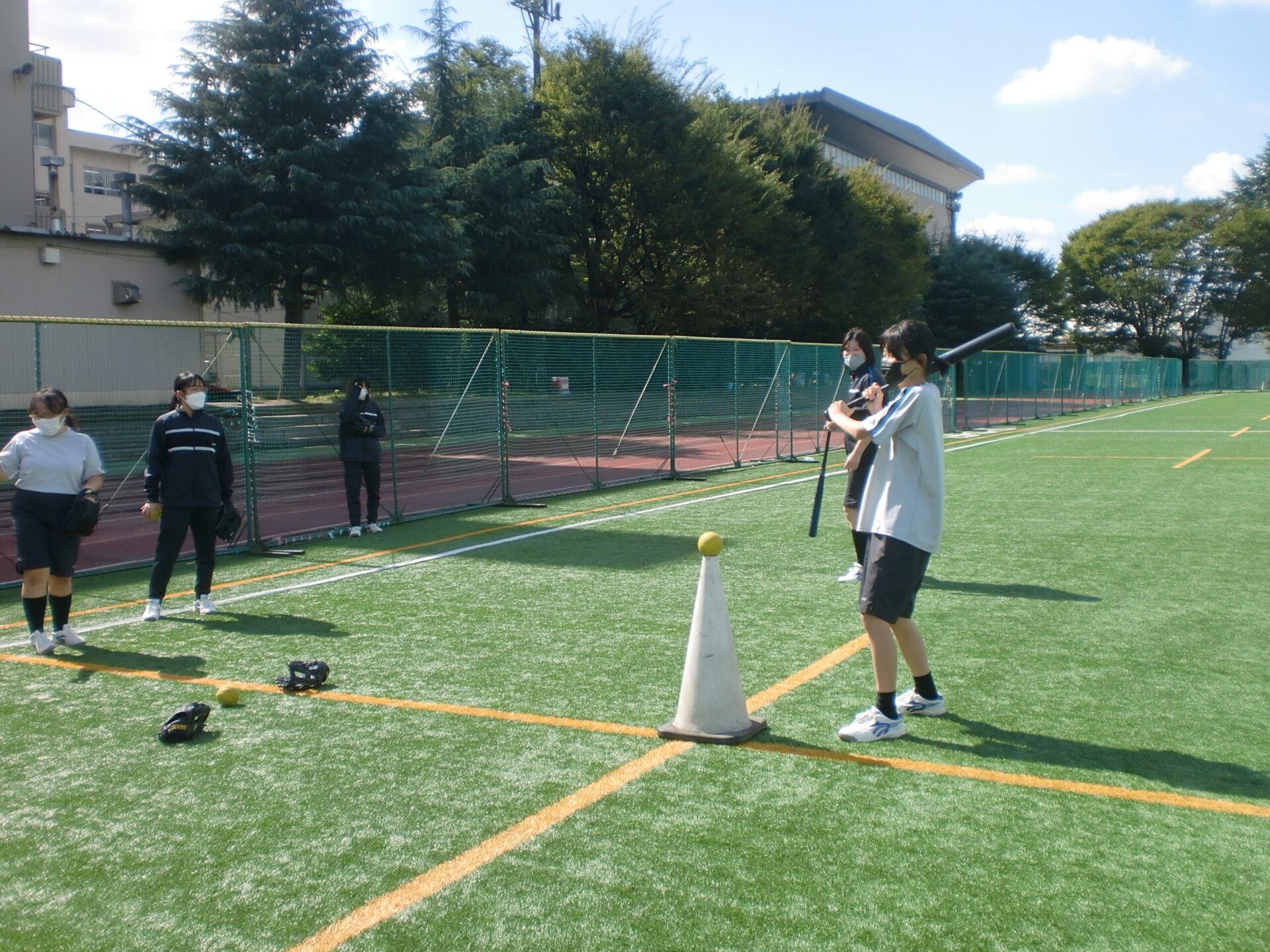 中学2年生の体育の授業です。中間考査前で休み時間にも勉強に一生懸命取り組んでいますが、体育の時間は体を動かすことに専念しています。男子は縄跳び、女子はソフトボール。夢中になって皆で楽しんでいるようでした。