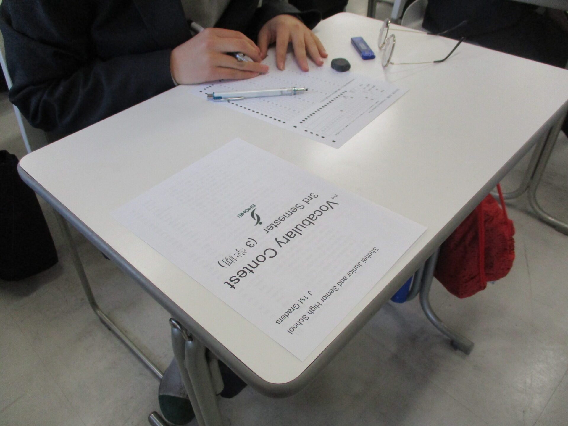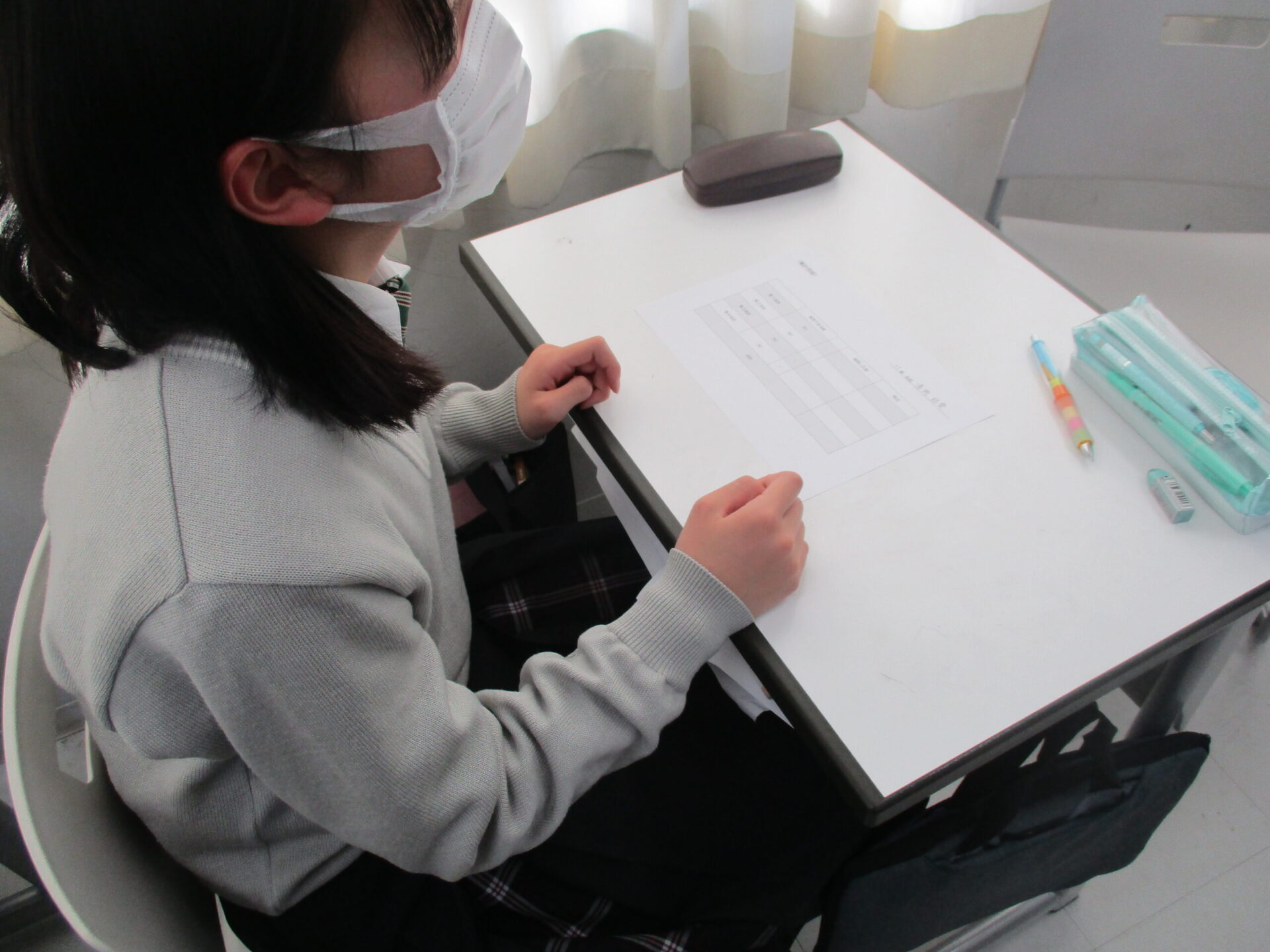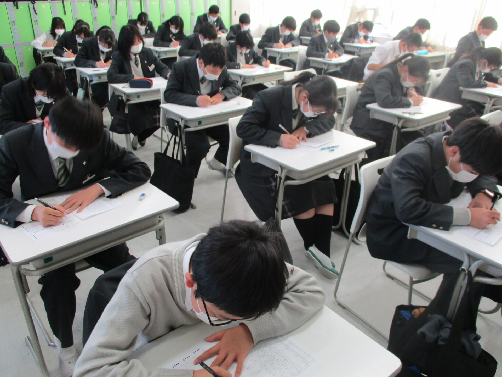 本日の中学1年生のLHRは各クラスごとに活動しました。1組では3月に予定されているボキャブラリーコンテスに向けて1年間のまとめとしてプレテストを実施しました。2組ではクラス全員でビデオレターの企画、制作に取り組みました。3組は水平思考ゲームを実施いたしました。このゲームは問題解決のために、概念や既成の理論にとらわれることなく、さまざまな角度からアイデアを考え出す思考法です。