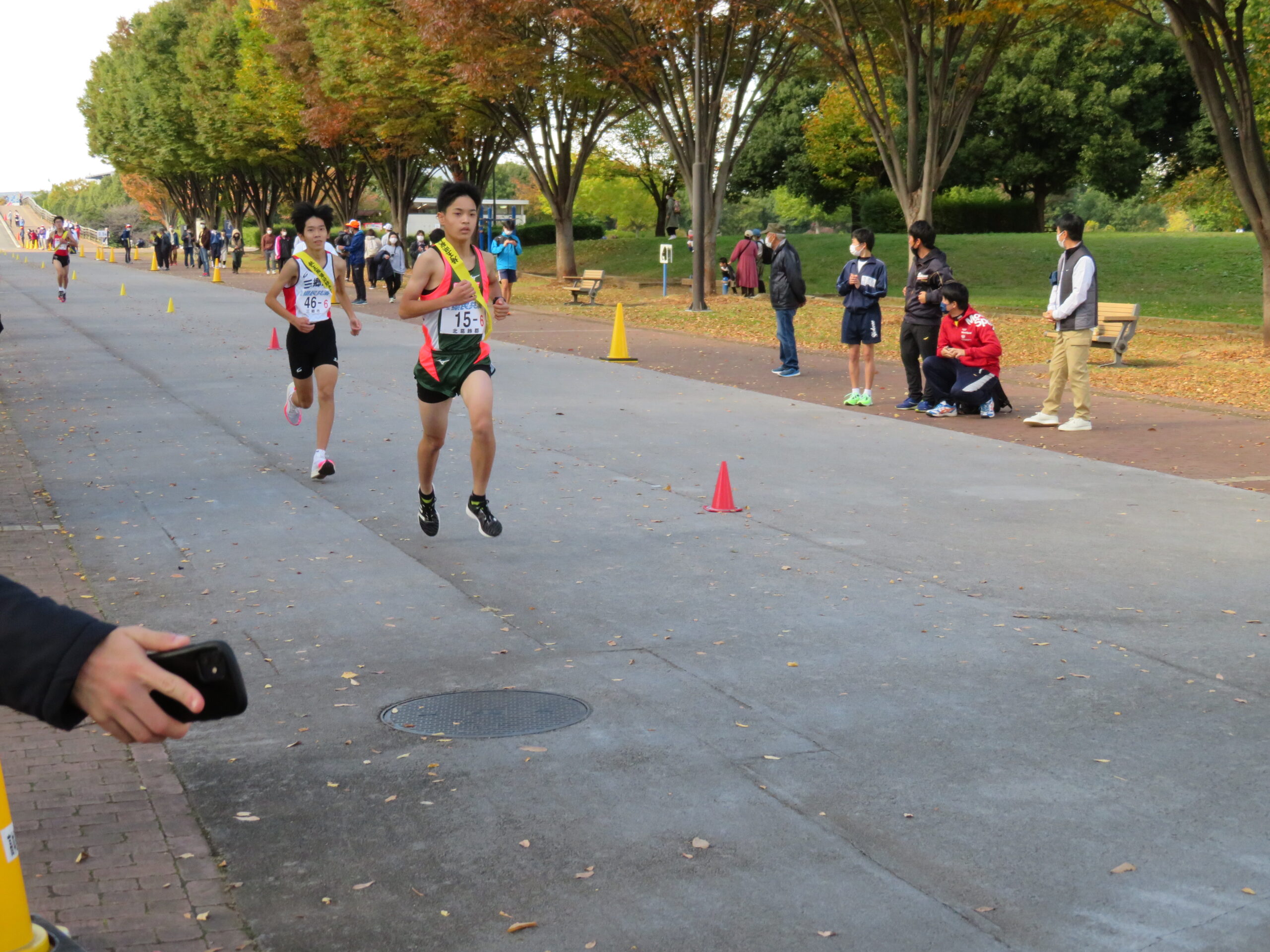 1区渡部智義(3-2):2区岩岡一暉(2-3):3区塩畑峰和(3-2):4区長谷壱丸(3-2):5区大谷航生(3-2):6区榎本壮真(3-3)で走り、結果は1時間4分18秒で62チーム中総合54位でした。初出場の大会でしたが、選手は堂々とした走りを展開してくれました。