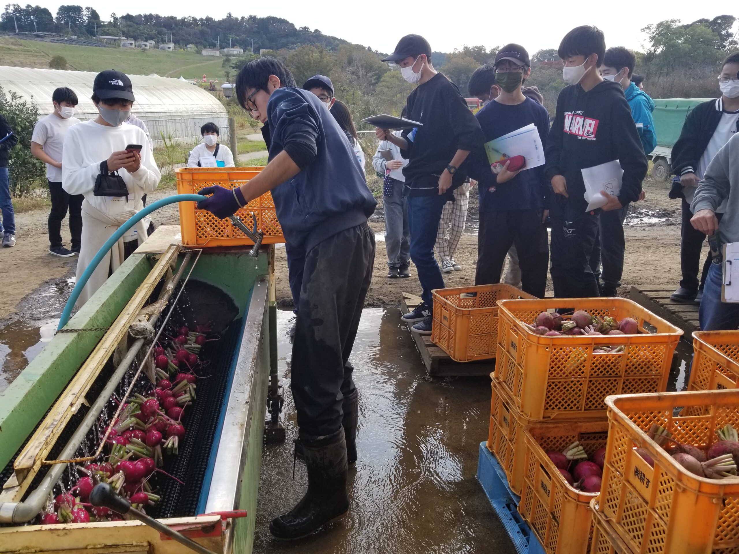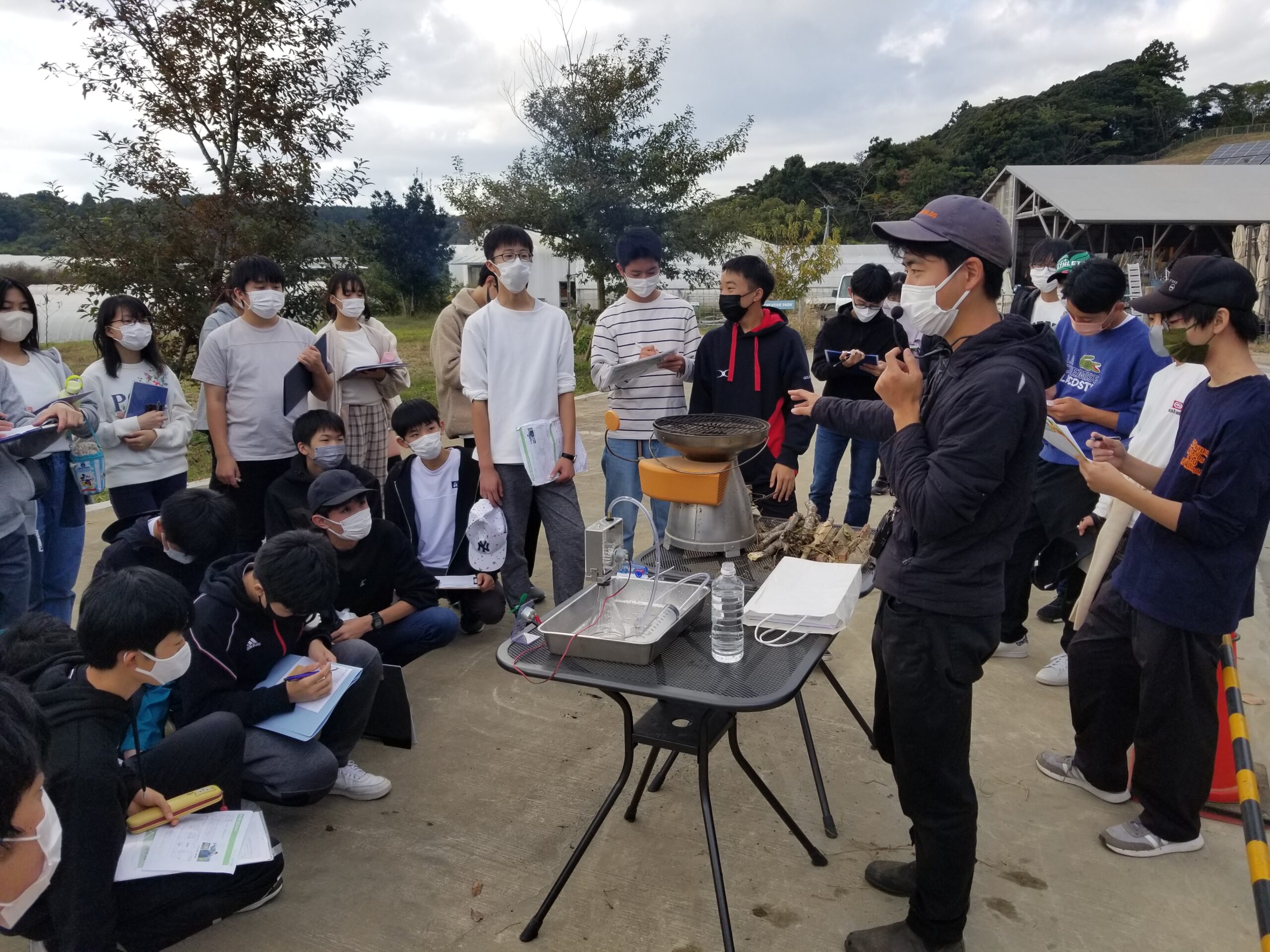 中学3年生は、木更津市にあるクルックフィールズにて校外学習を行いました。内容はSDGsと食料・エネルギーです。午前中は施設内の様々な取り組みについてフィールドワークを行い、午後は①生産と消費、②食料と流通、③再生可能エネルギ― の3つの班に別れ活動しました。広々とした施設で生徒は積極的に活動し、食料やエネルギーの有り難さについてあらためて認識を深めました。