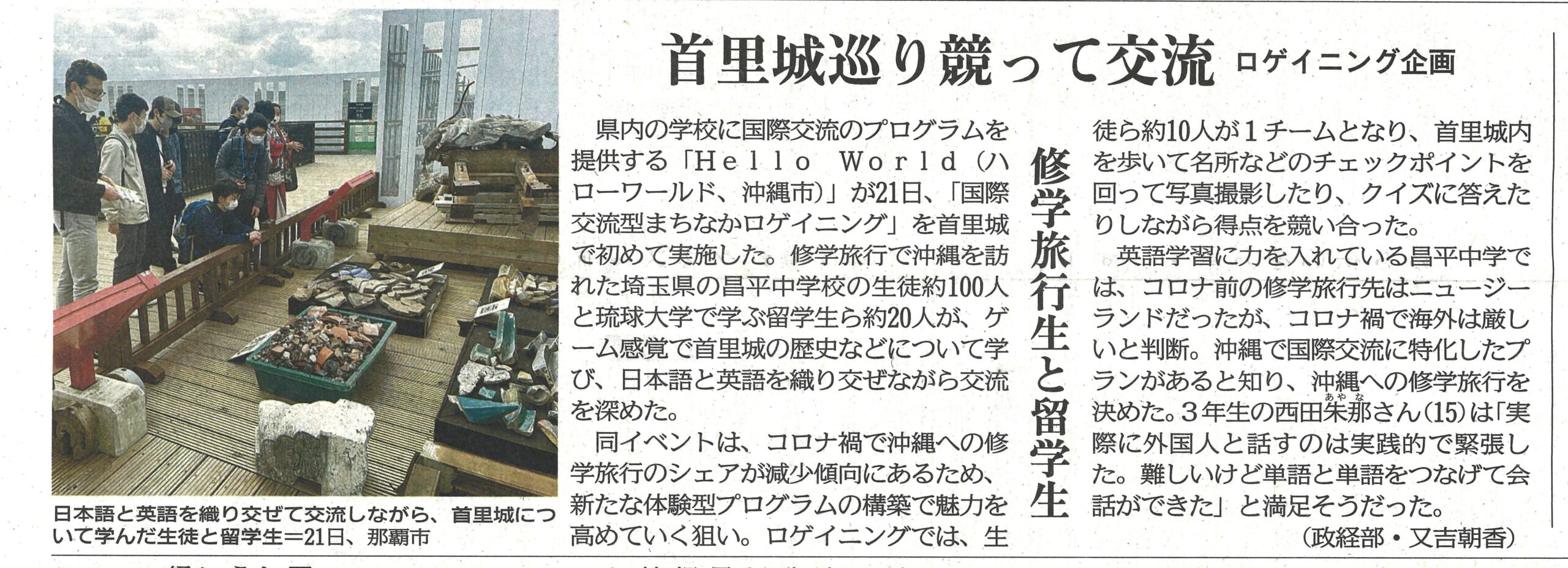 首里城での活動は地元テレビ局・新聞社の取材を受けましたので紹介します。