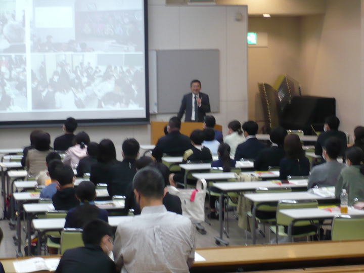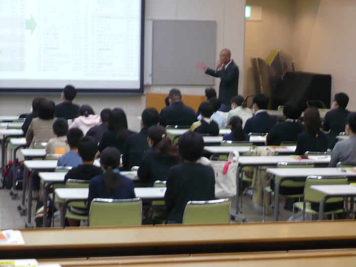 本日午前に、学校説明会を行いました。今回から、新規来校の方と再来校の方とで会場を分けて実施し、2会場で生徒の学校生活の様子や入試概要についてお話しさせていただいています。