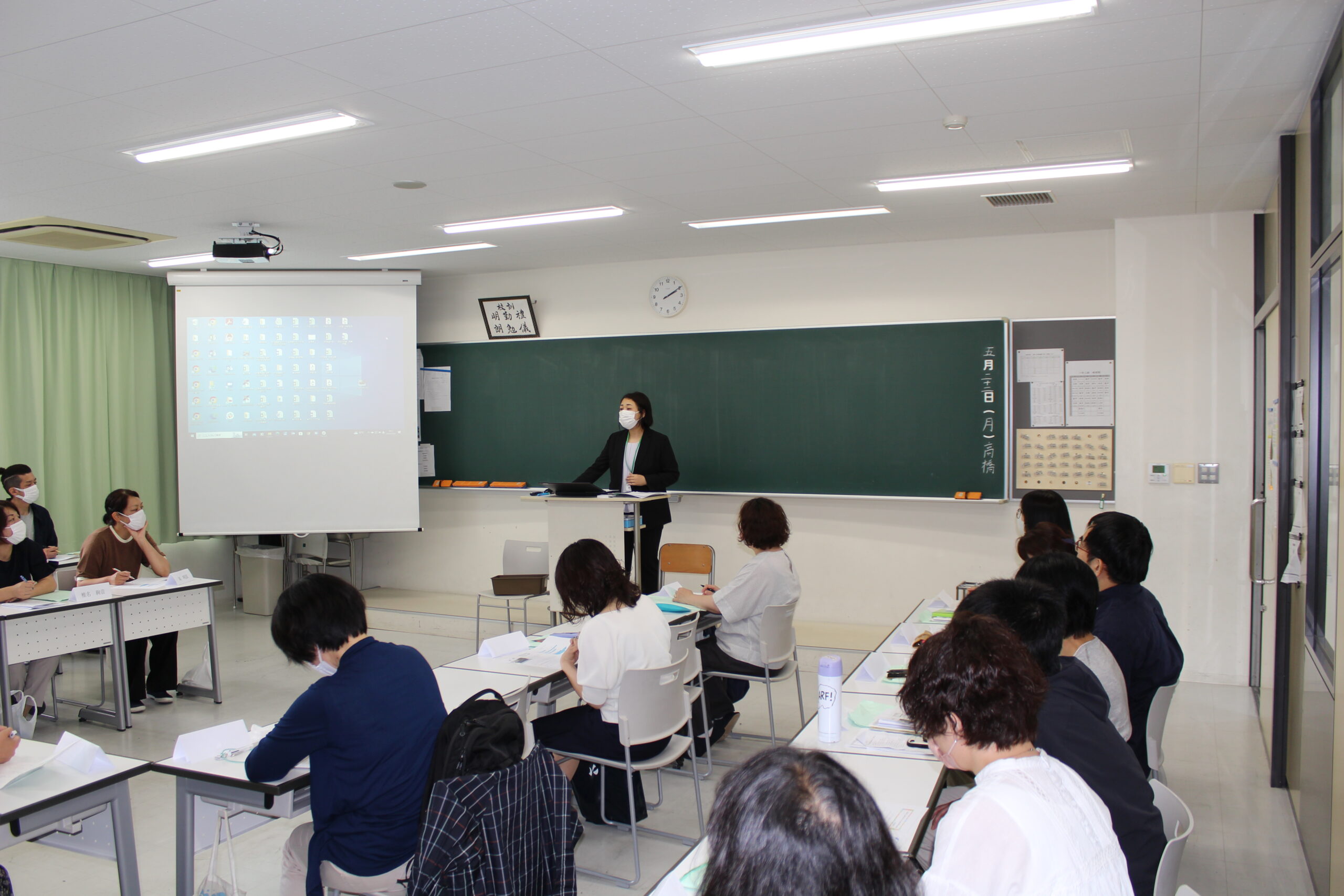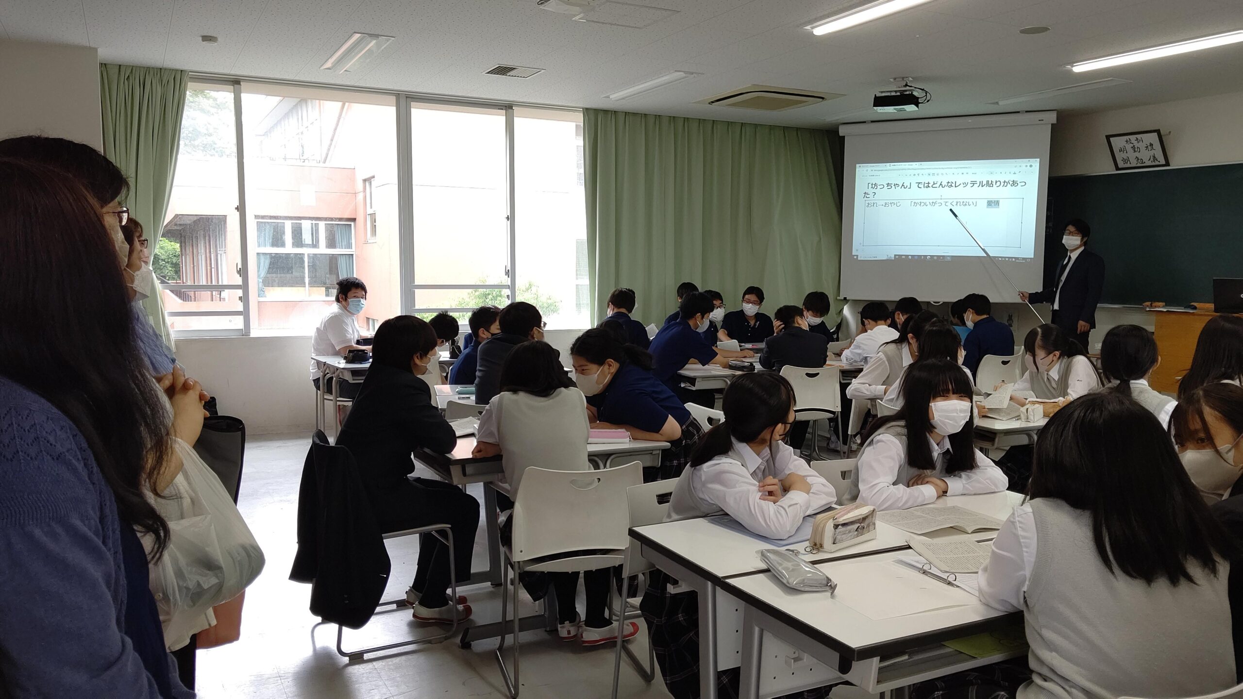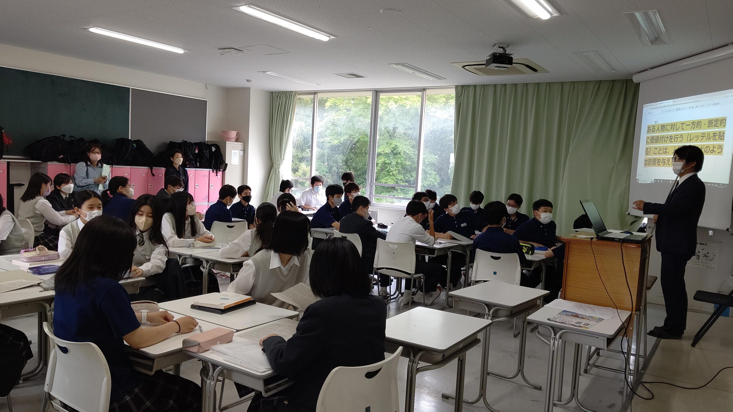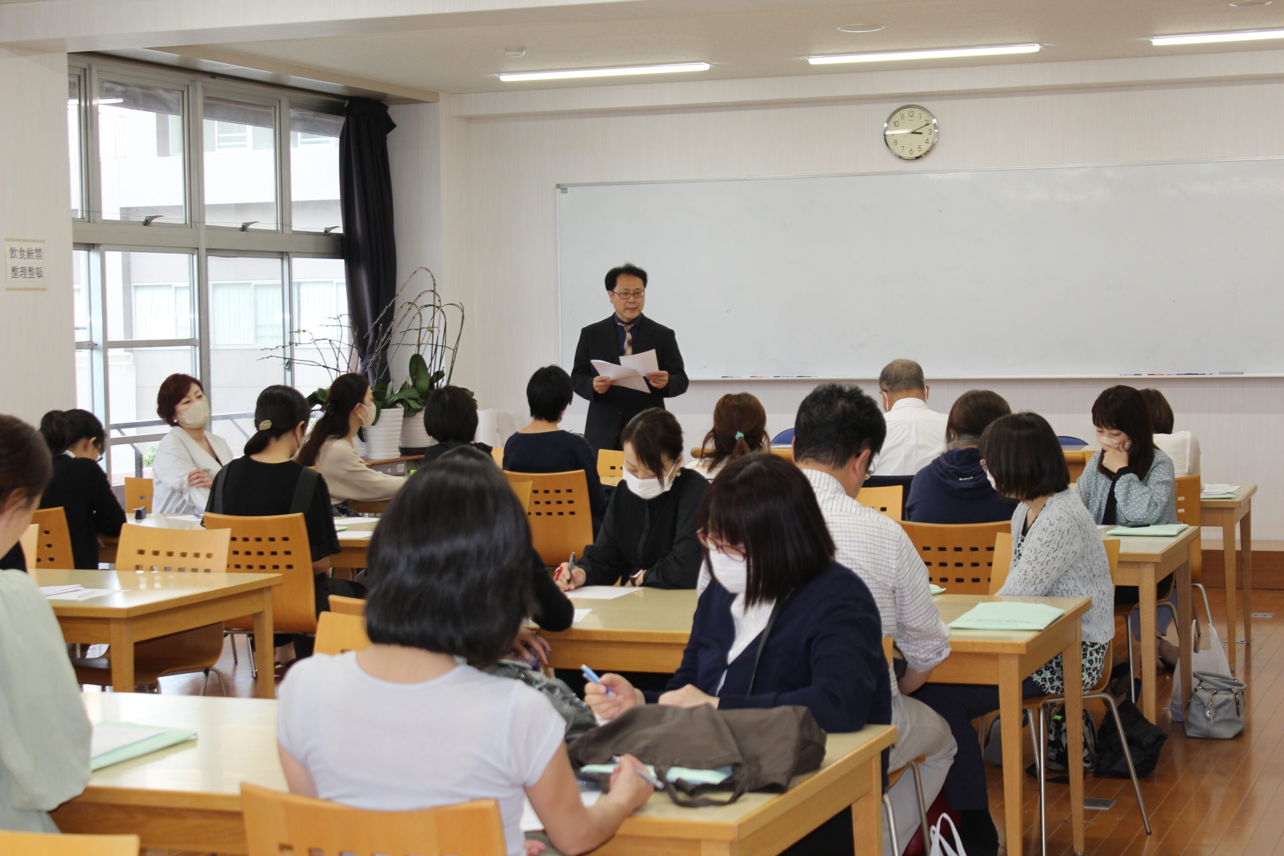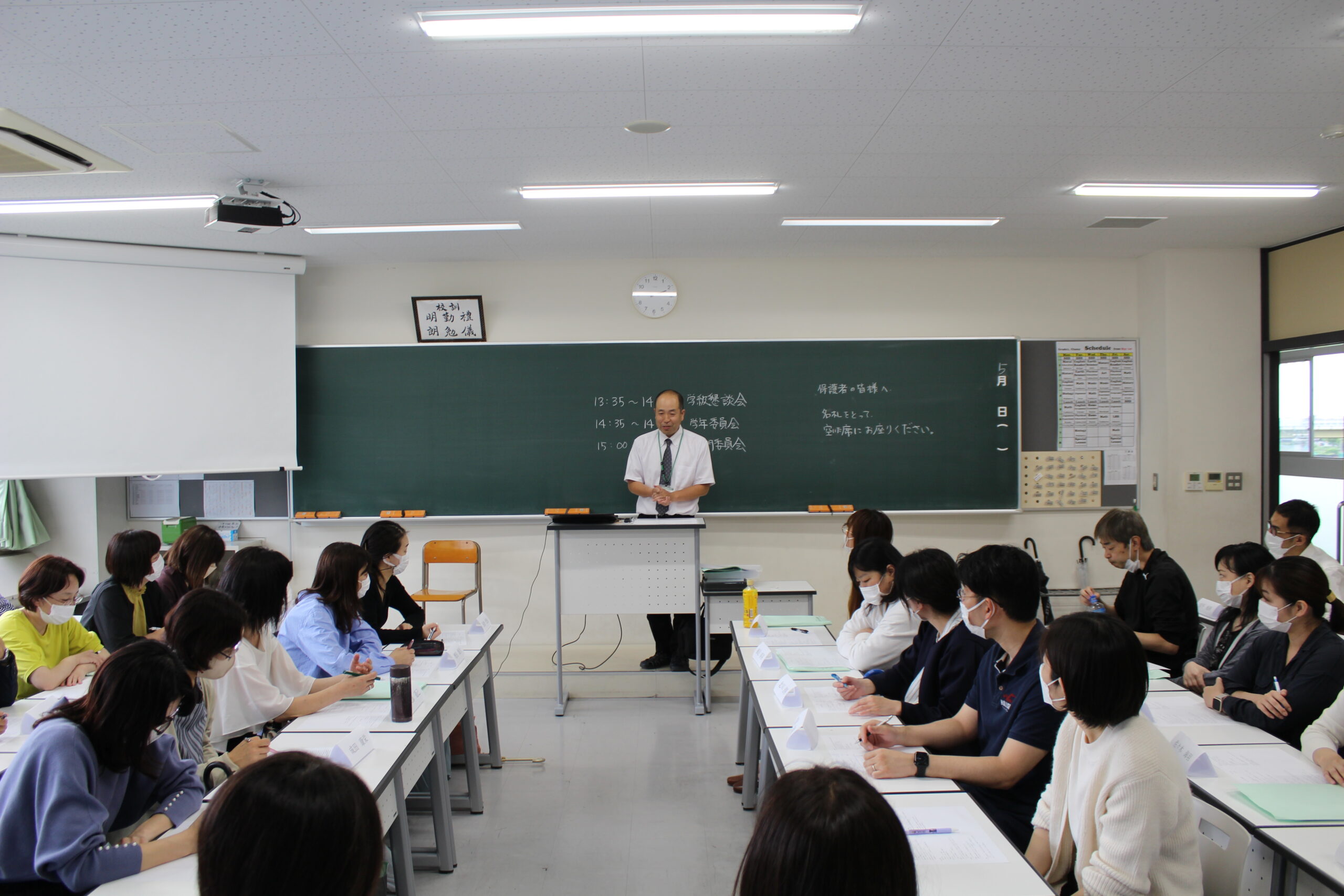 午前中に授業参観、文化後援会、PTA総会、そして午後には各クラスに移動して学級懇談会、学年委員会、専門委員会が行われました。午前中の授業参観ではグループワークの授業が多く、生徒たちが積極的に発言している様子が多くみられました。学級懇談会では担任にとってもご家庭での様子を聞かせていただくなど、貴重な時間を保護者の皆様と過ごさせていただきました。