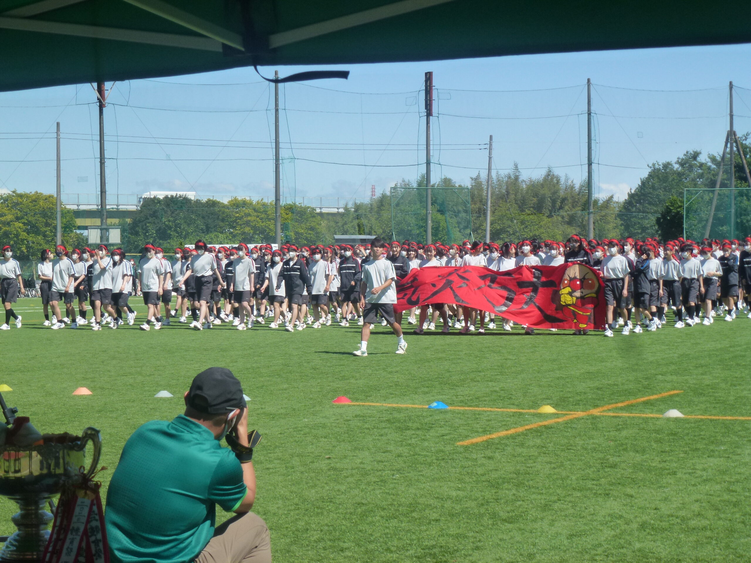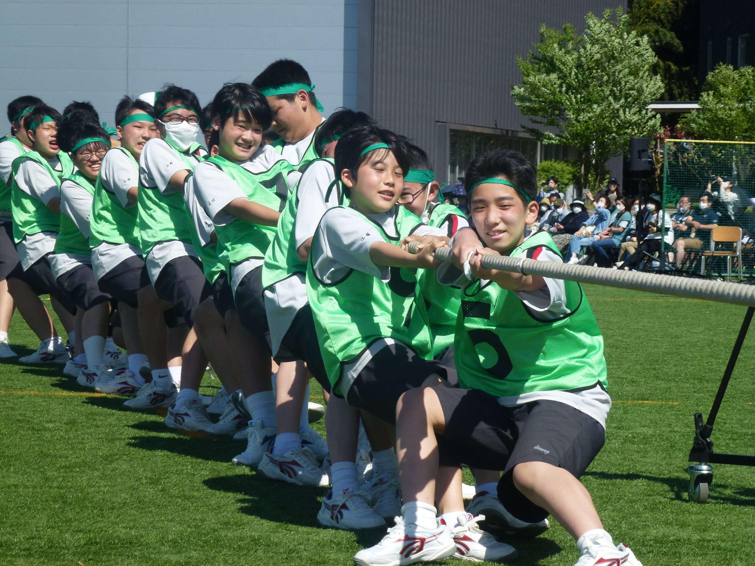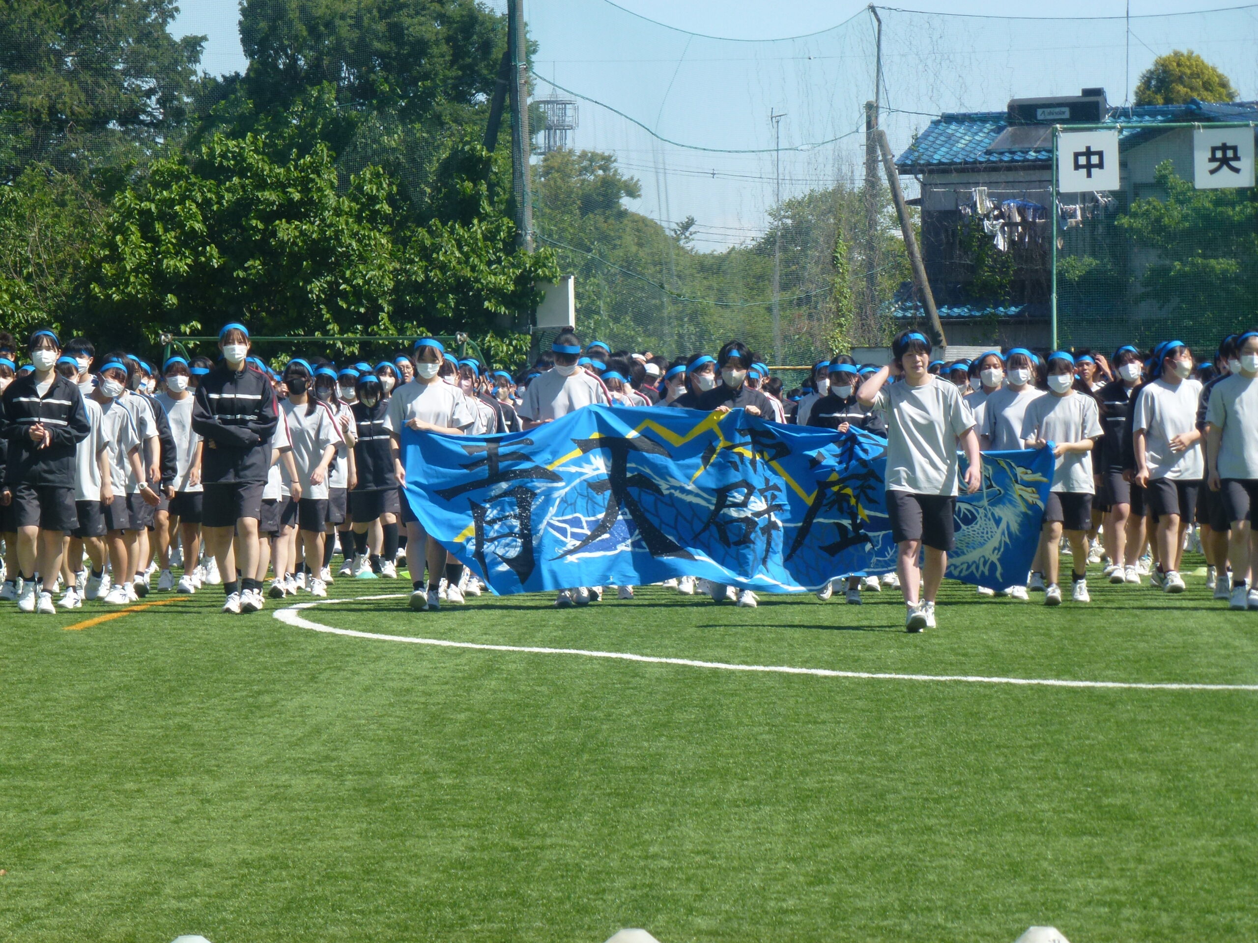 本日は晴天に恵まれた中、体育祭を実施しました。各クラスが学年縦割りで赤・青・黄・緑の4色に分かれ、様々な種目で熱戦を繰りひろげました。特に、クラス対抗リレーや色別対抗リレーは、応援席がどよめくほどの大盛り上がりを見せました。競技者のみならず応援席からも生徒の熱気あふれる姿が最後まで続きました。また、中学生全体による昌平よさこい踊りでは、クラス皆で心を一つにして日頃の練習の成果を発表いたしました。また、本日は数多くの保護者の方々にもご参観いただきました。誠にありがとうございました。