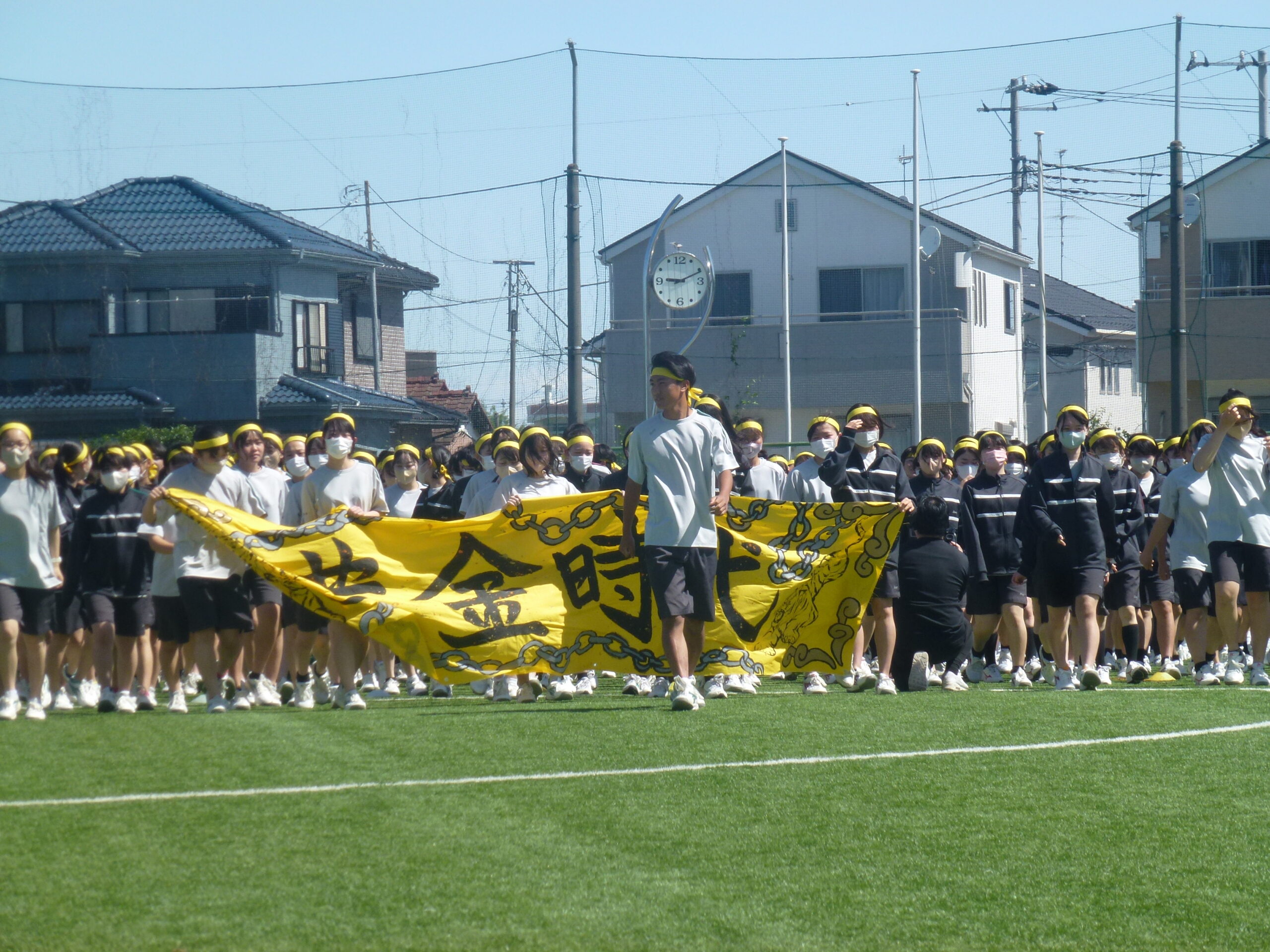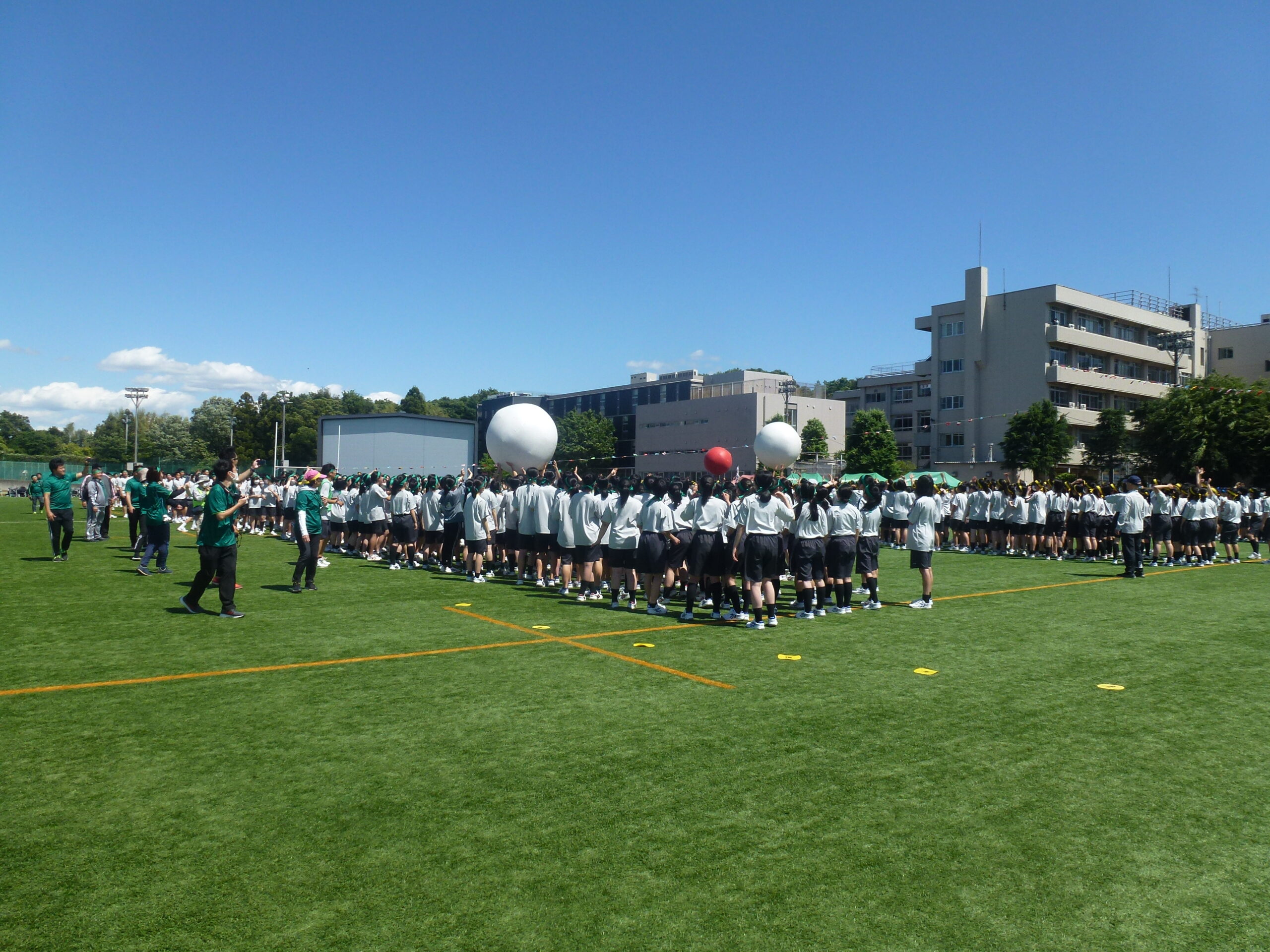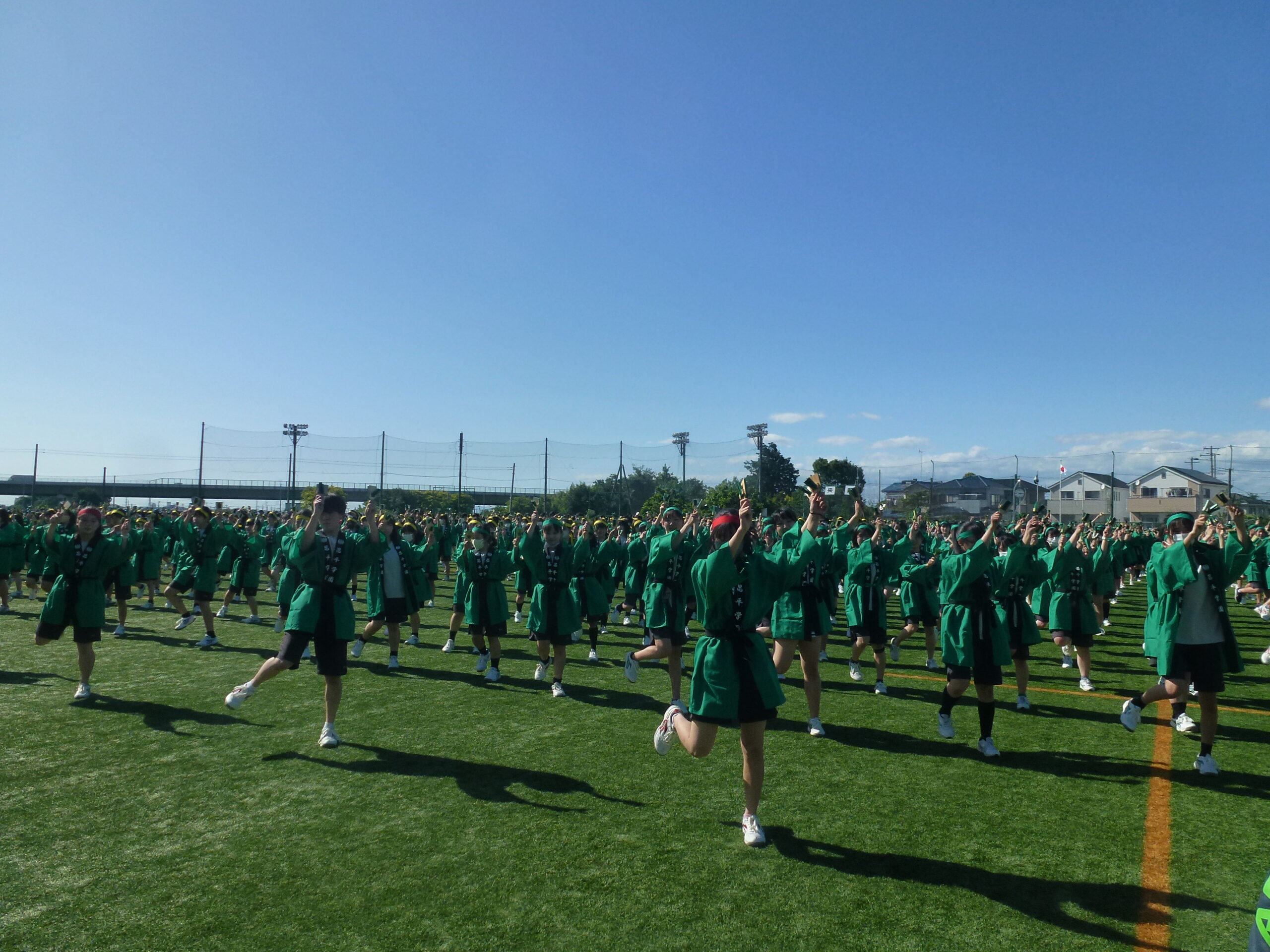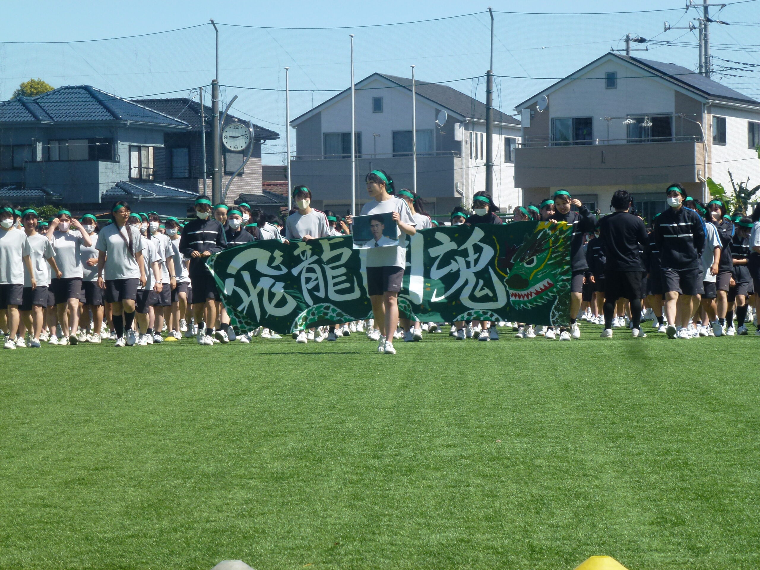 本日は晴天に恵まれた中、体育祭を実施しました。各クラスが学年縦割りで赤・青・黄・緑の4色に分かれ、様々な種目で熱戦を繰りひろげました。特に、クラス対抗リレーや色別対抗リレーは、応援席がどよめくほどの大盛り上がりを見せました。競技者のみならず応援席からも生徒の熱気あふれる姿が最後まで続きました。また、中学生全体による昌平よさこい踊りでは、クラス皆で心を一つにして日頃の練習の成果を発表いたしました。また、本日は数多くの保護者の方々にもご参観いただきました。誠にありがとうございました。