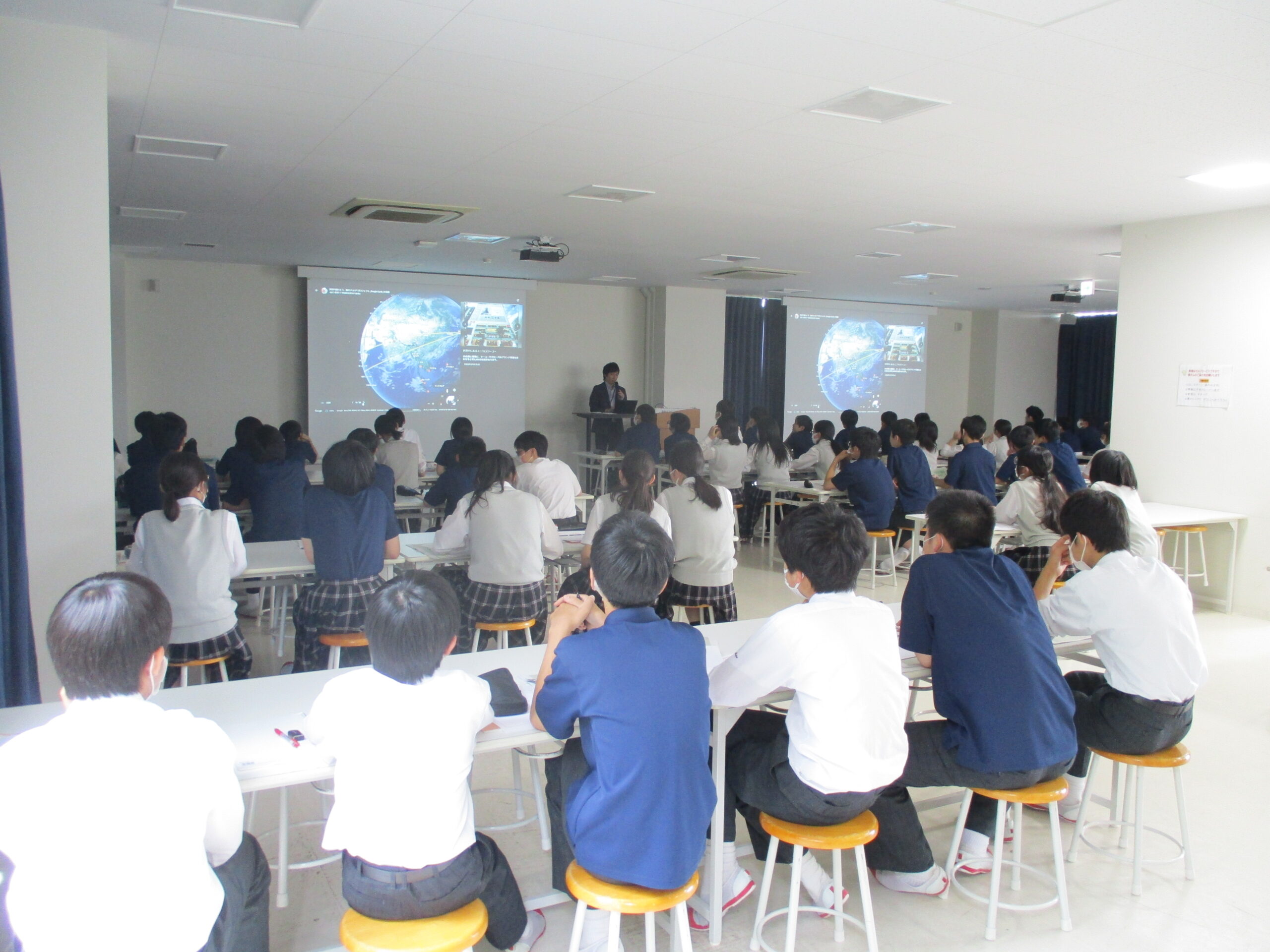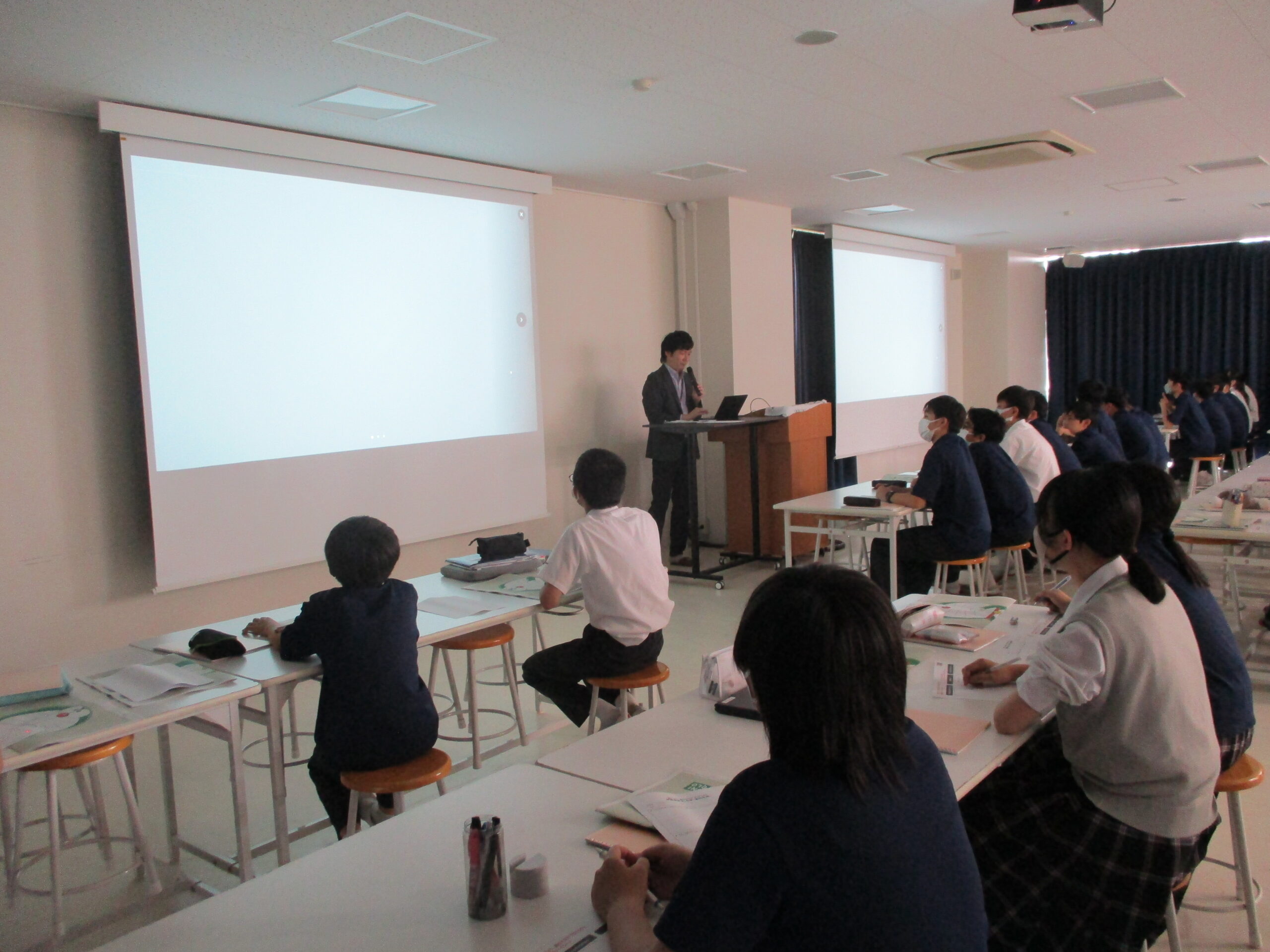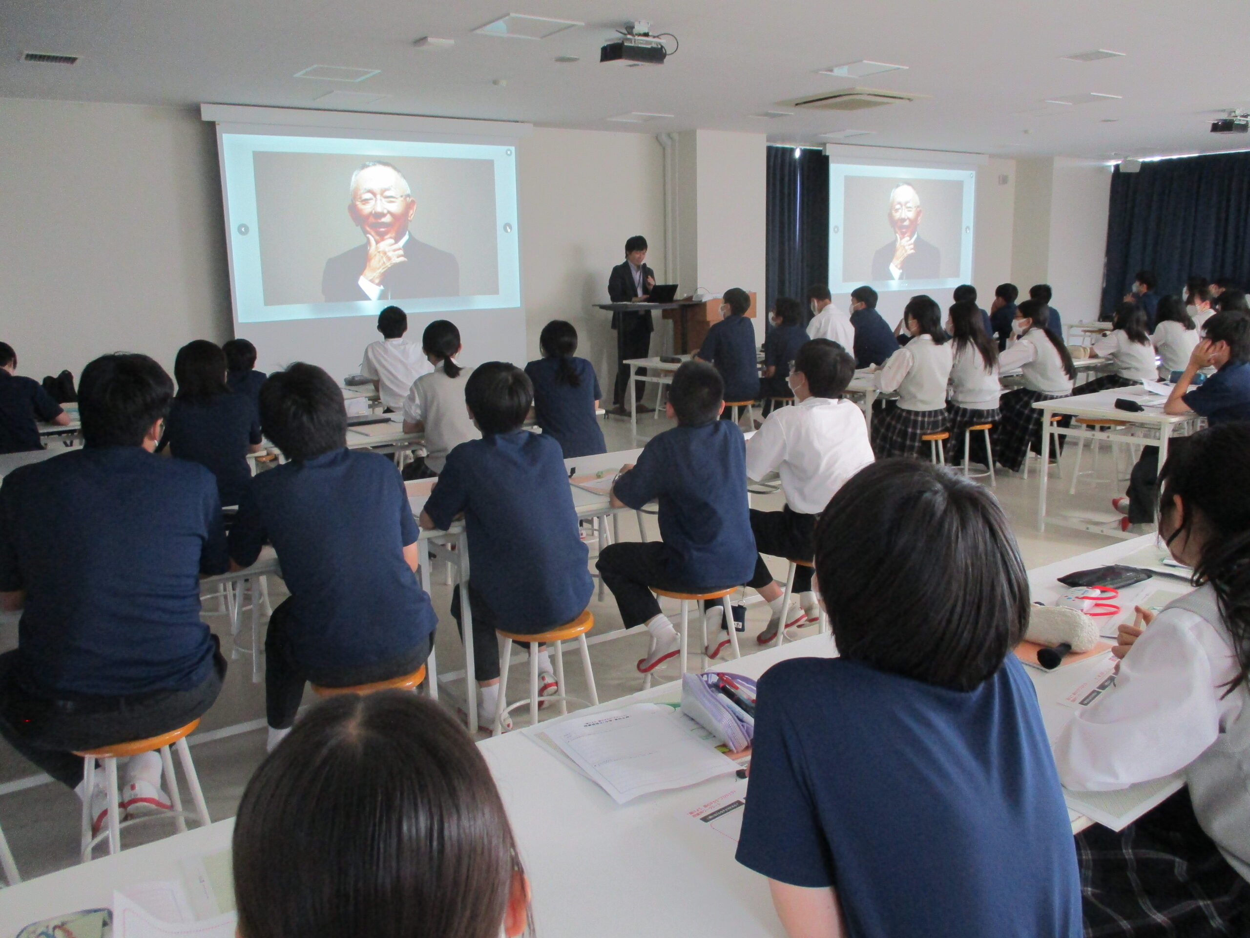 本日6限LHRにおいて、㈱ファーストリテイリング デジタル業務サービス部より杉山聡明氏をお招きし、中学2年生を対象とした特別授業を行いました。内容は、ユニクロ・GUが行っている、”届けよう、服のチカラ”プロジェクトについてです。2年生は、7月から10月にかけてこのプロジェクトに参加します。班を編成し、活動を計画・実践することで社会との関わる意識を高めます。生徒は新鮮な気持ちで興味深く話を聞き、活動に対する意欲を高めることができました。