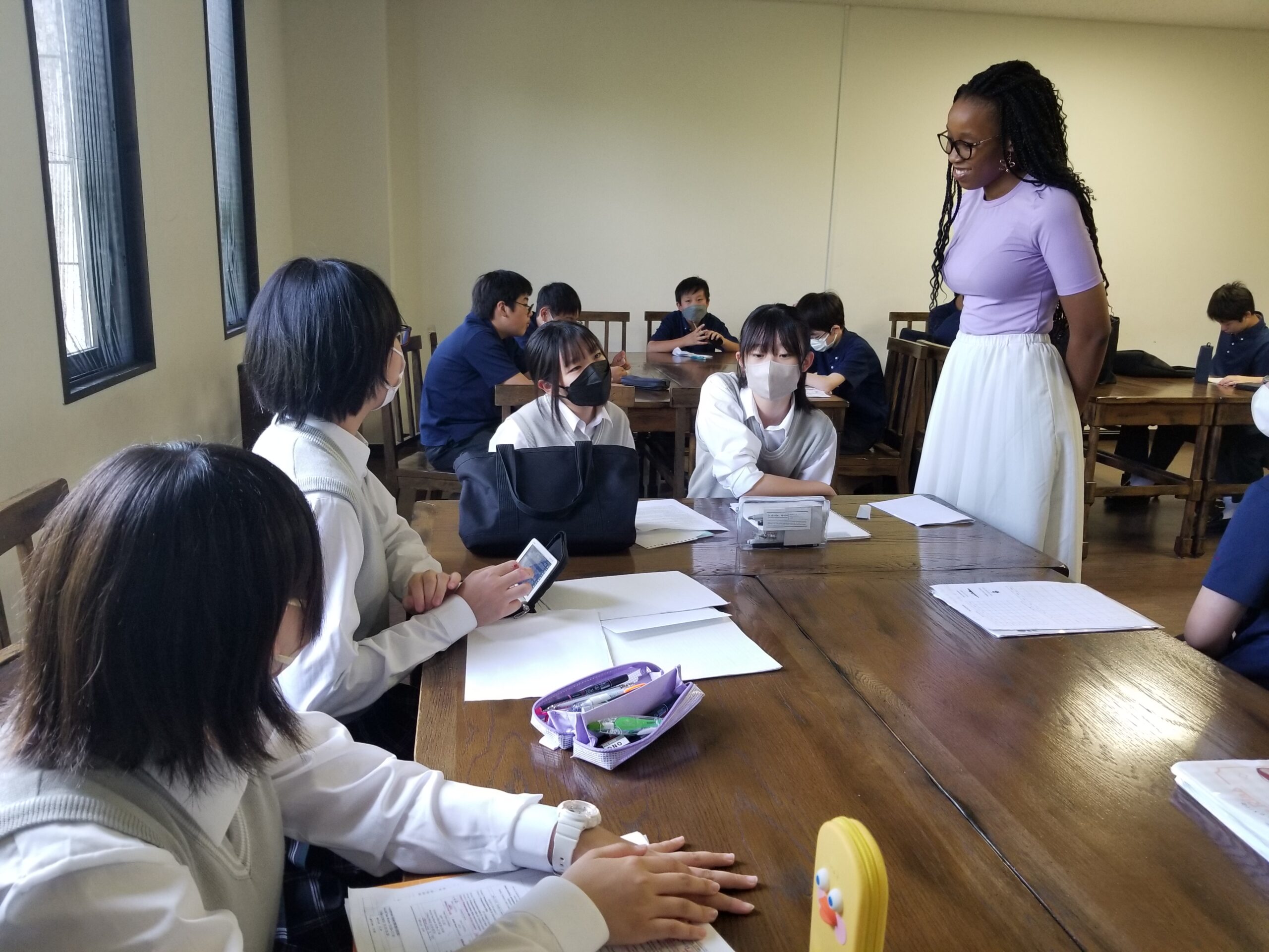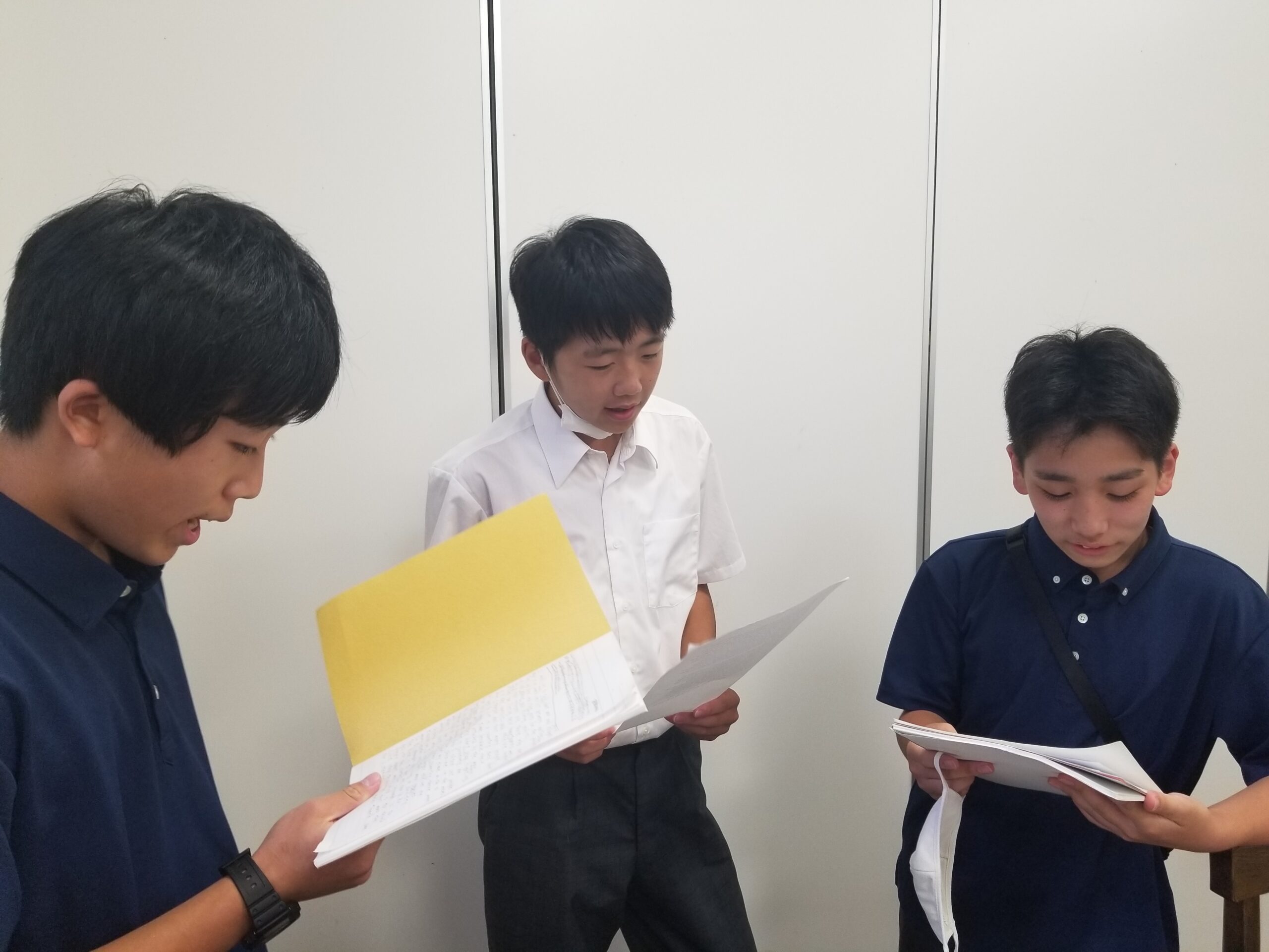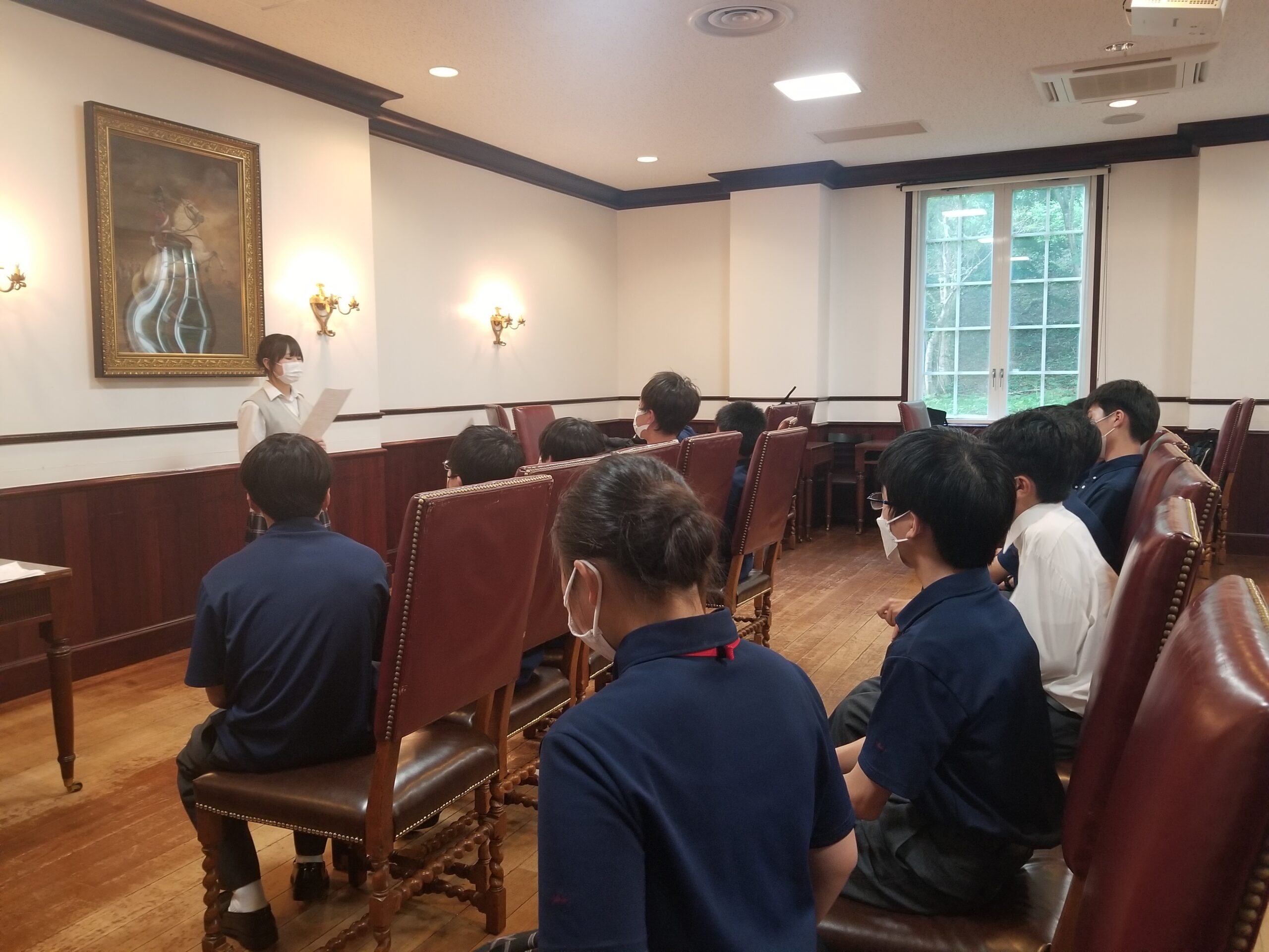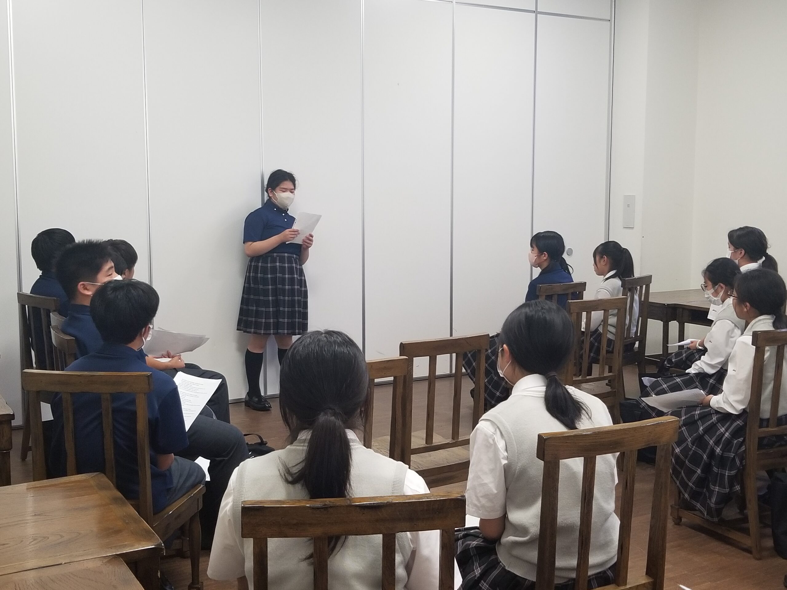 2日目の主な内容は、英語によるスピーチです。特にアイコンタクトやジェスチャーなど、普段はあまり意識しないことも練習し、事前に準備した原稿を元に全員が発表しました。大勢の前で緊張していましたが、自分の考えを一生懸命伝えようとする姿勢が見えました。