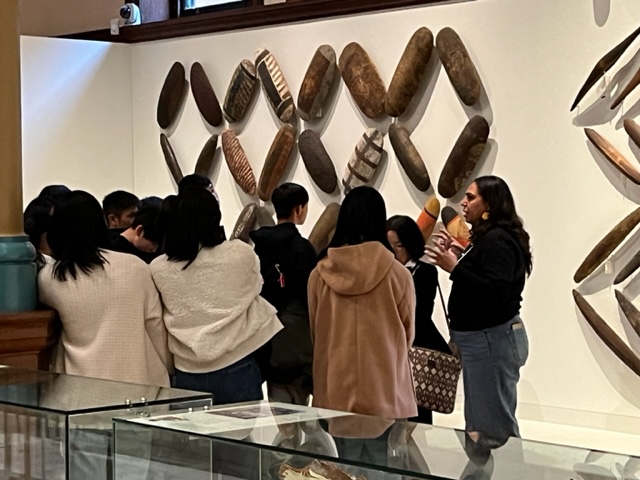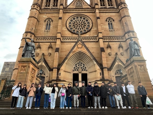 週末をホストファミリーとゆっくり過ごした生徒達ですが、Shireでの生活も残り2日となりました。今日は学校を離れてシドニー市内での学習の一日となりました。まずは市内にある世界遺産であるハイドパークバラックス(囚人収容所)と聖メアリー大聖堂を見学しました。歴史的建造物の重厚さと荘厳な雰囲気に生徒たちも圧倒されていました。その後、オーストラリア博物館で先住民=アボリジニについて学びました。アボリジニのブリーさんの案内でその歴史や文化などについて説明を受けました。最後に一人の男子生徒が、イギリス人入植後のアボリジニとの関係について質問をしました。するとブリーさんはしばしの沈黙の後、「それはとても良い質問だ。でもとても難しい質問だ」と心なしか目を潤ませながら答えてくれました。長い歴史的の中には深くつらい出来事が沢山あったことを思い知ることとなりました。