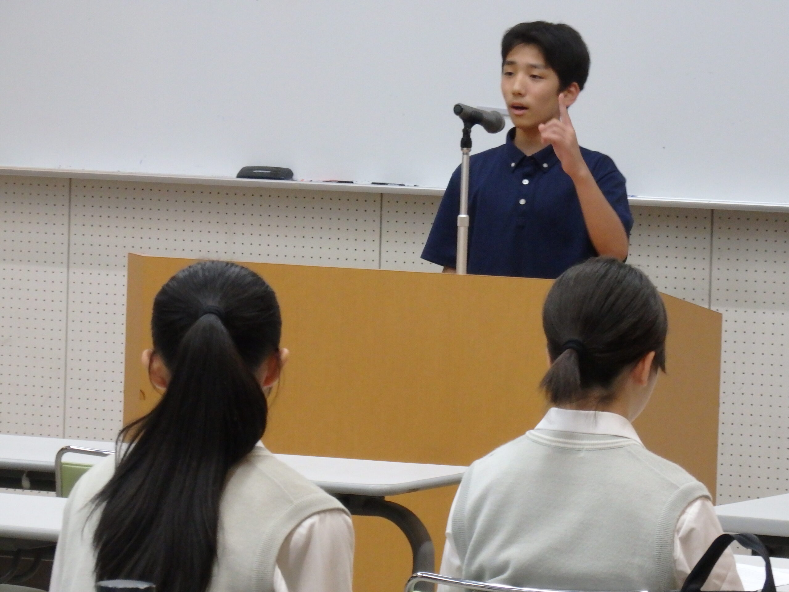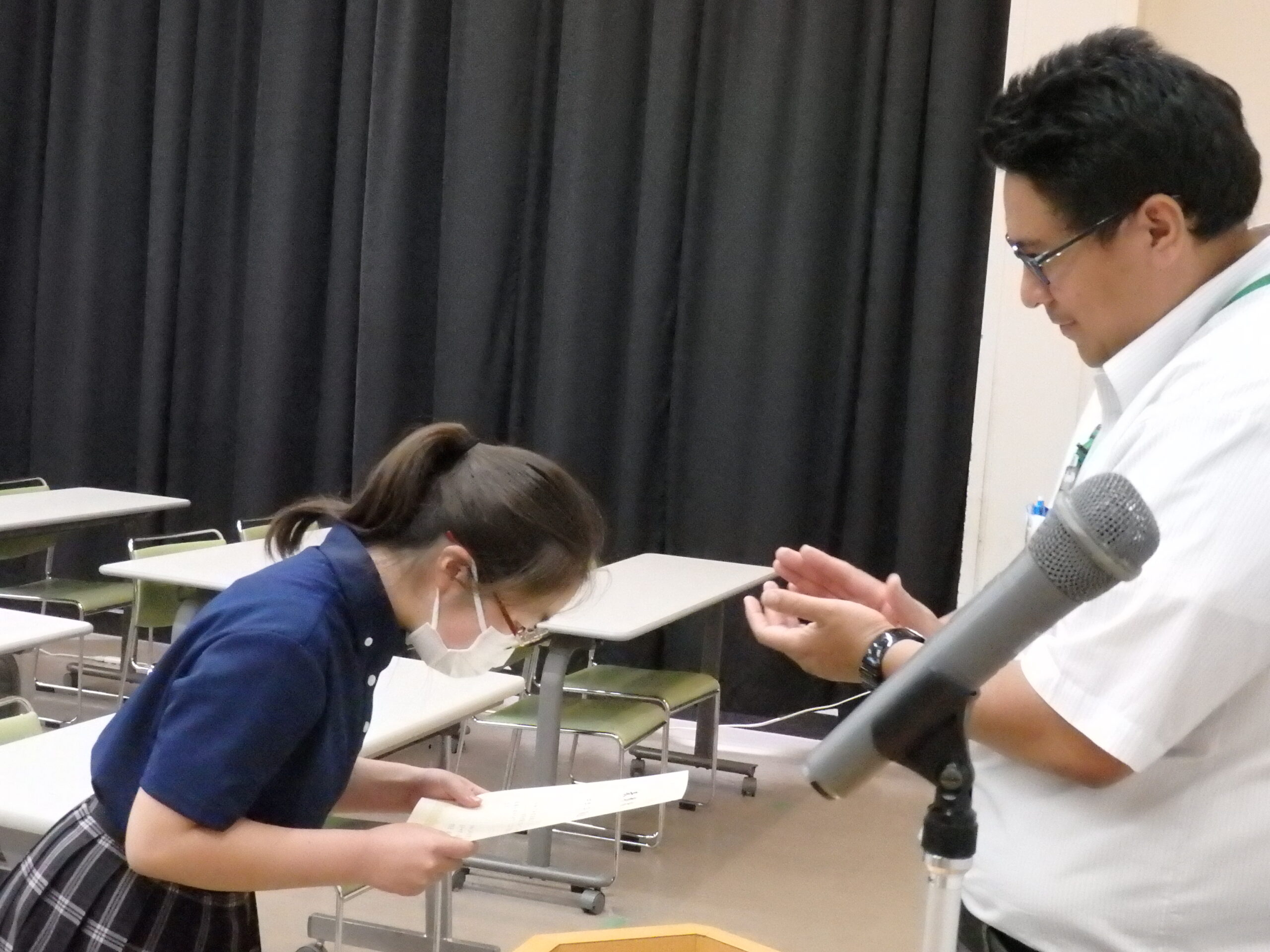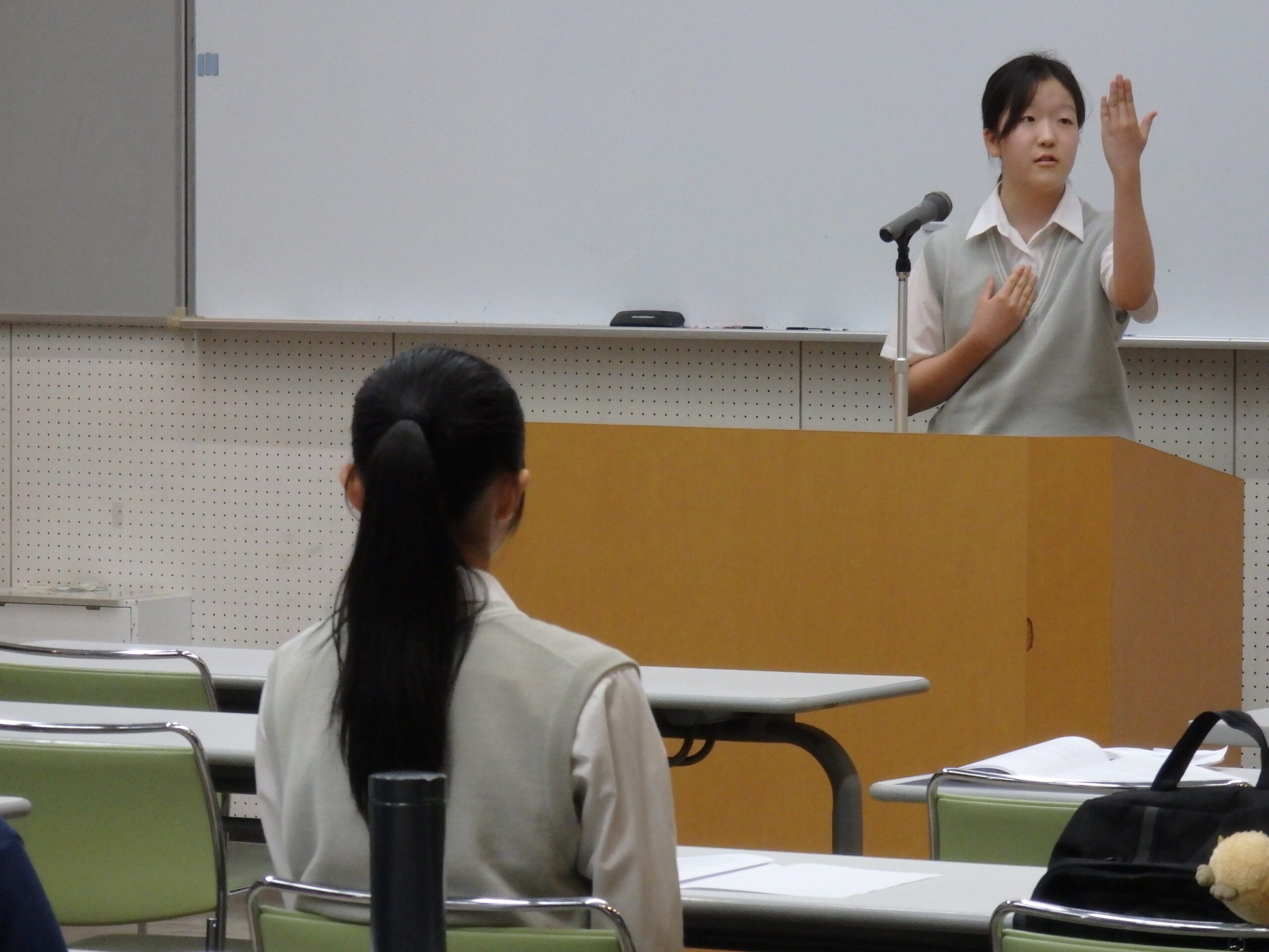 各学年のクラス代表が出場し、それぞれが夏休み中に猛練習した文章をジェスチャーも自分で考えながら発表しました。
