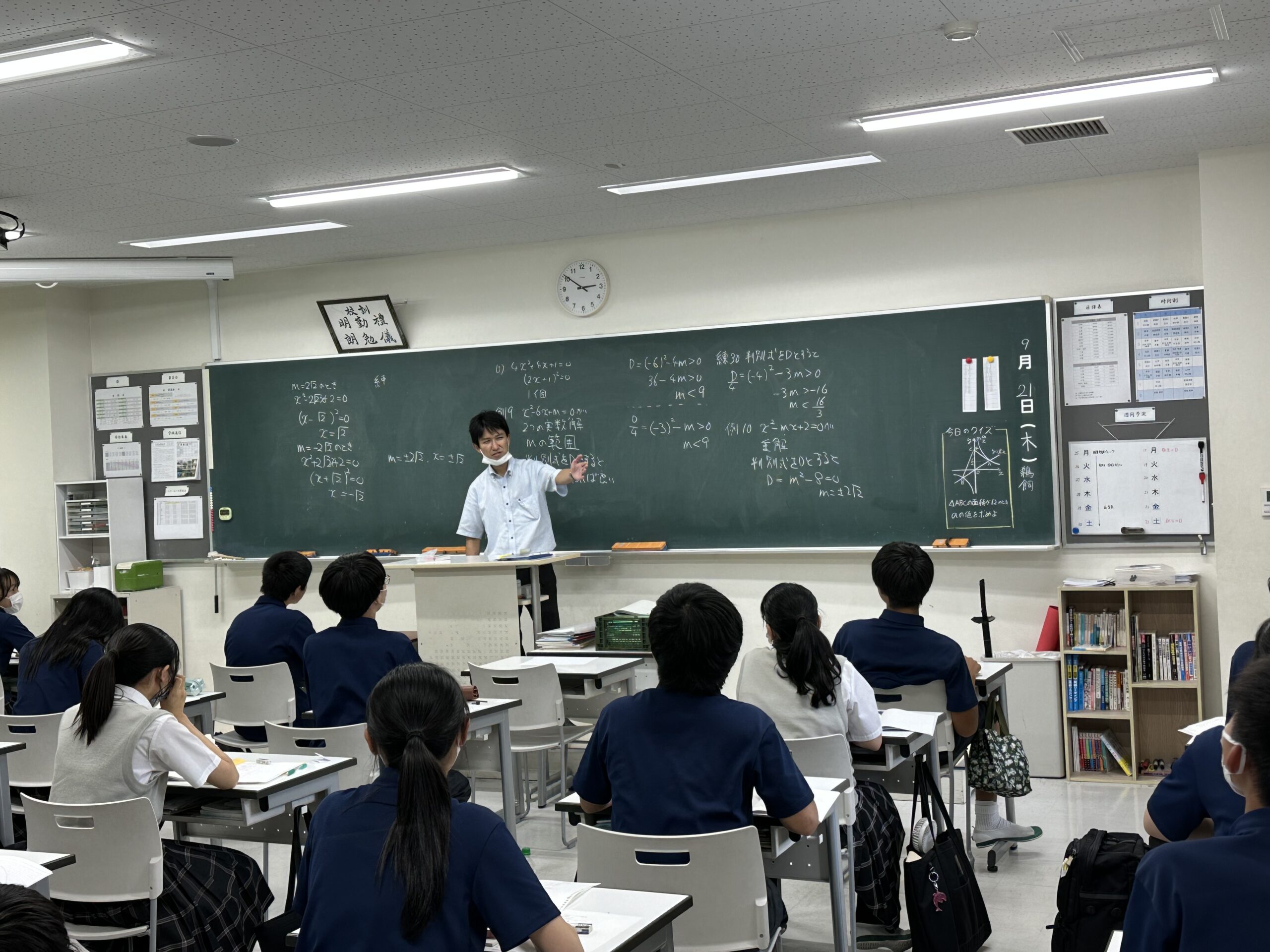 数学の授業は3年間、週6単位ということもあり、2年の3学期までに中学の内容を終え、3年の1学期の6月から高校の学習内容になります。現在は2次関数の授業を行っていますが、教科担当者は数学の面白さを伝え、一人でも多くの生徒が「探求心」「思考力」を付けられるように授業を行っています。