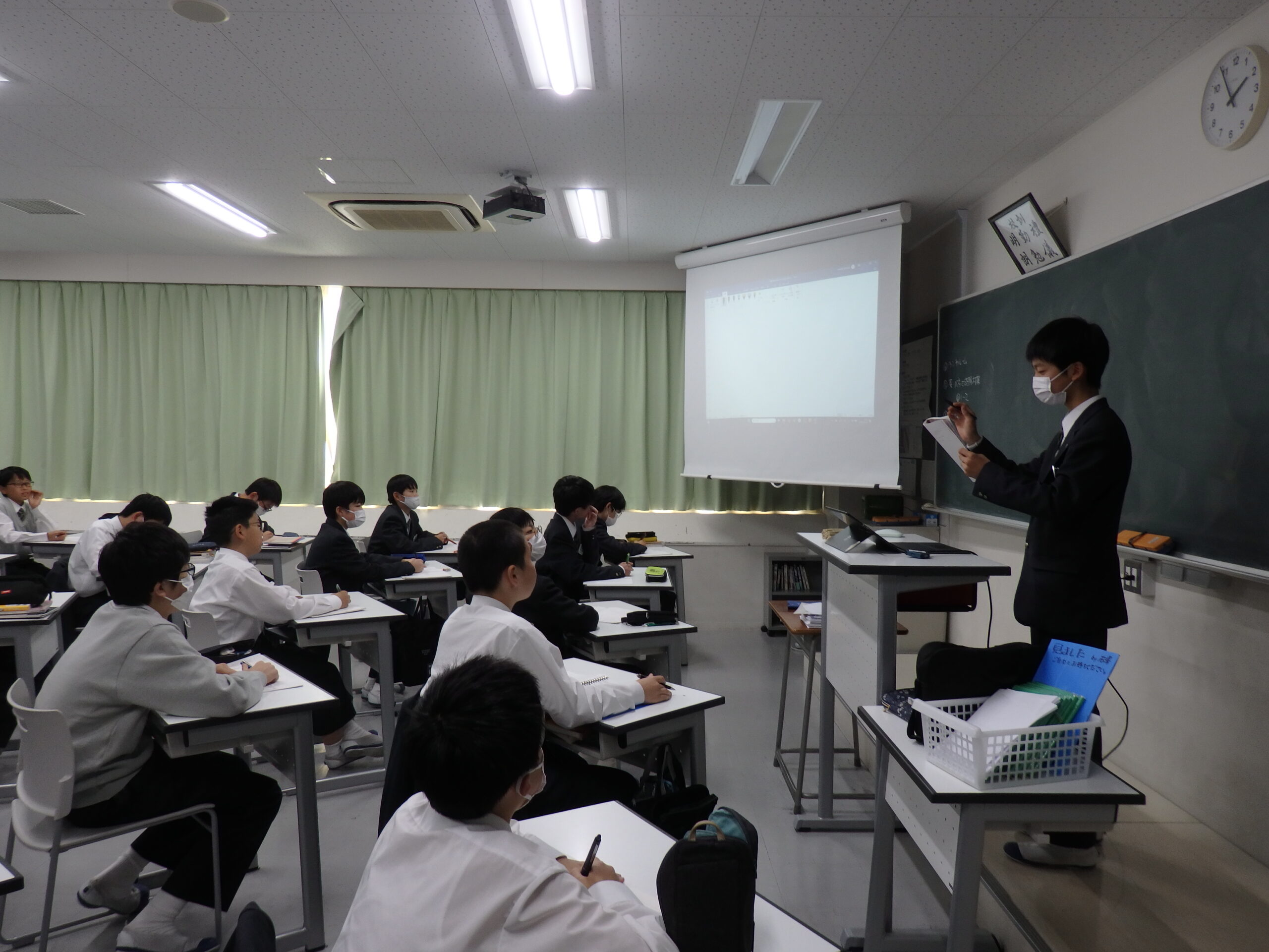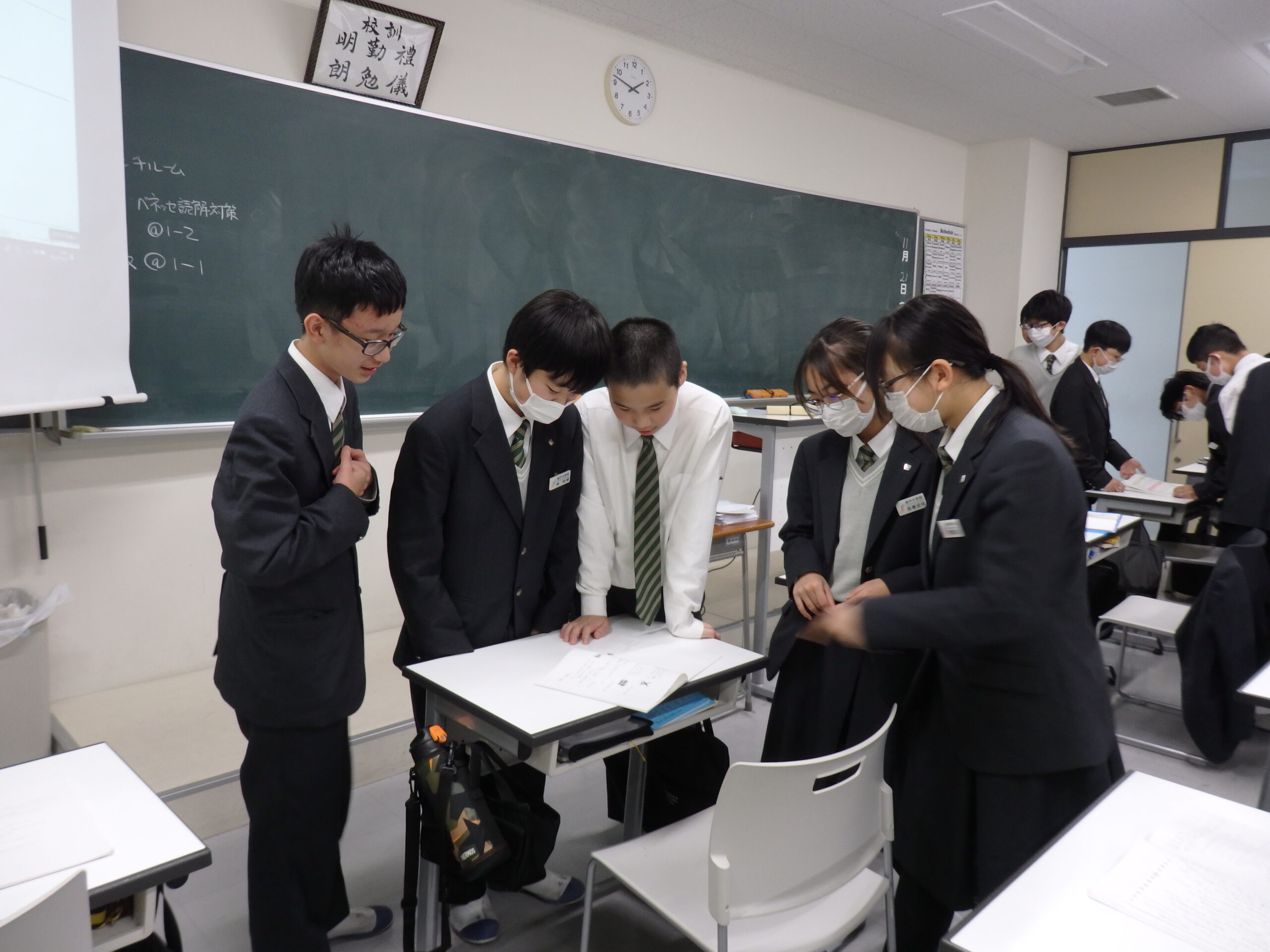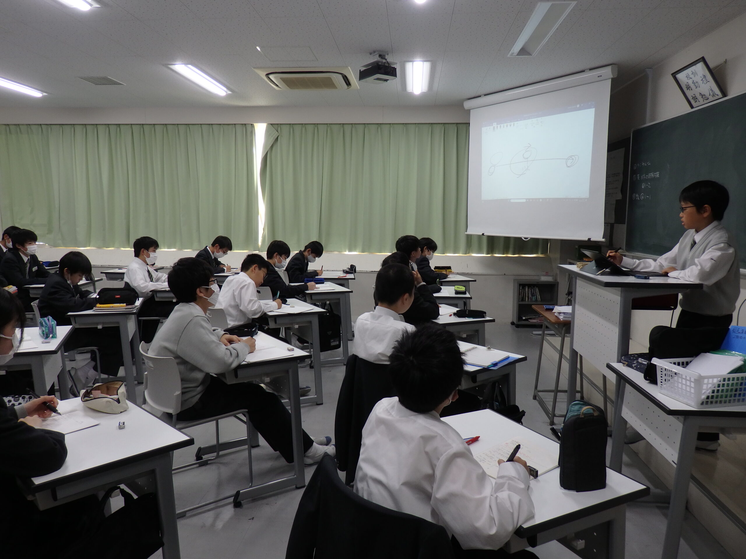 中学1年生の英語G(文法)の授業では、新しい単元に入るときにリサーチノート(予習ノート)にその単元を予習します。リサーチノートは全員で共有し、上手だと思うノートを3冊選んでサインをします。クラスメイトのサインがたくさん自分のノートに書いてあるとやる気が出ますね!予習なので難しいチャレンジではありますが、新しい文法をみんなに説明します。間違ってもクラスメイトが助けてくれます。お互いに助け合い英語の力を高めていきます。難しい壁にもチャレンジ精神を持って登っていく、入学から8か月、1年生は非常にたくましく成長しています!!