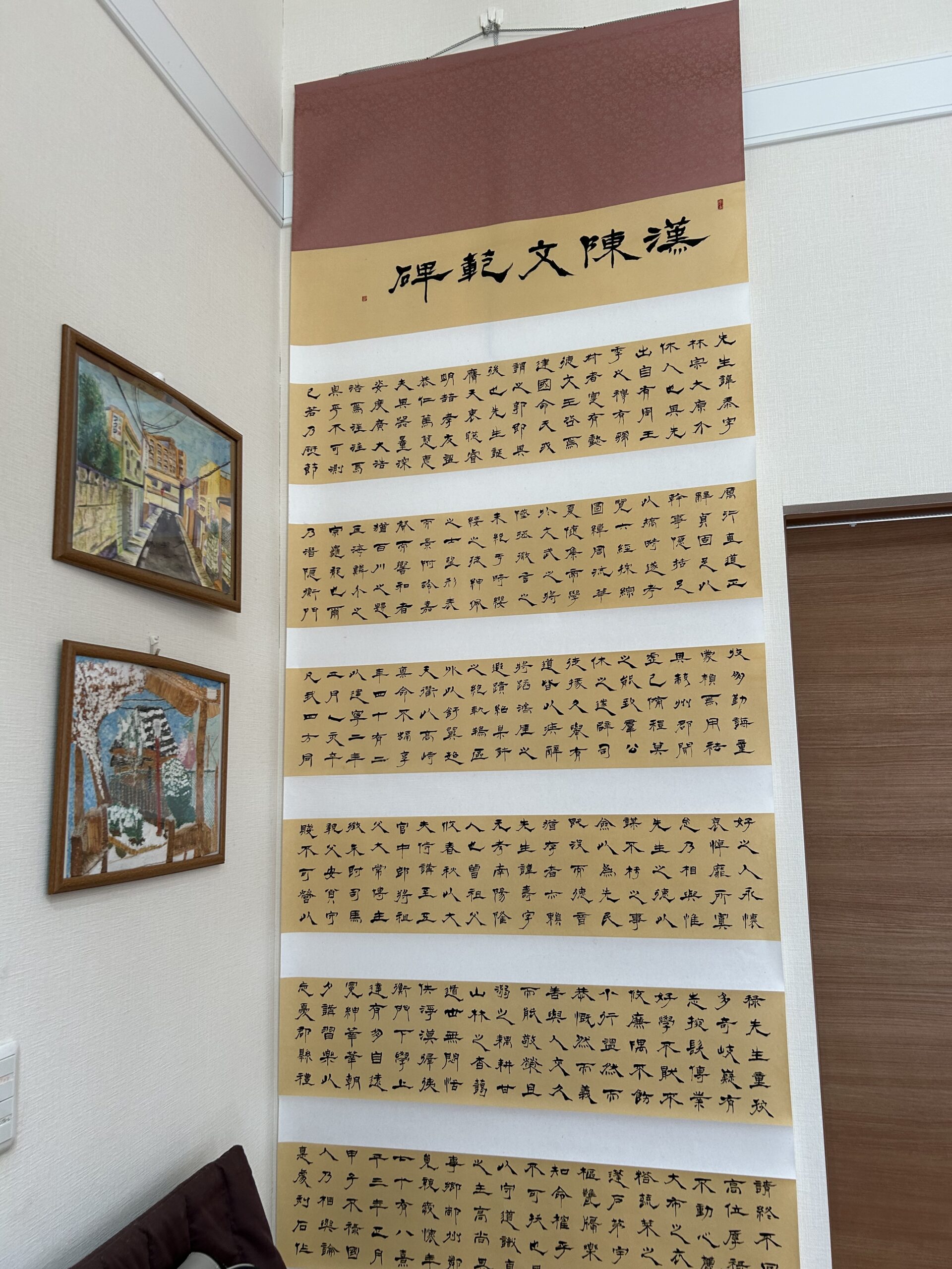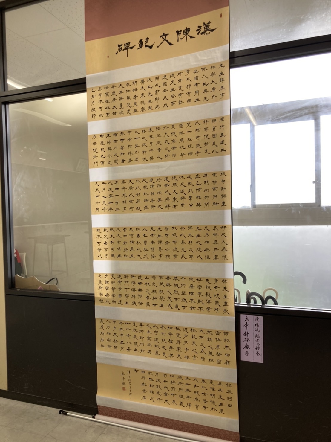 その中の「作品展・書道部門」に、昌平中学校の3年生・4名の作品が出展されました。作品はどれも、各々の好きな“四字熟語”を掛け軸に、心を込めて書き記した力作です。写真左から紹介します。