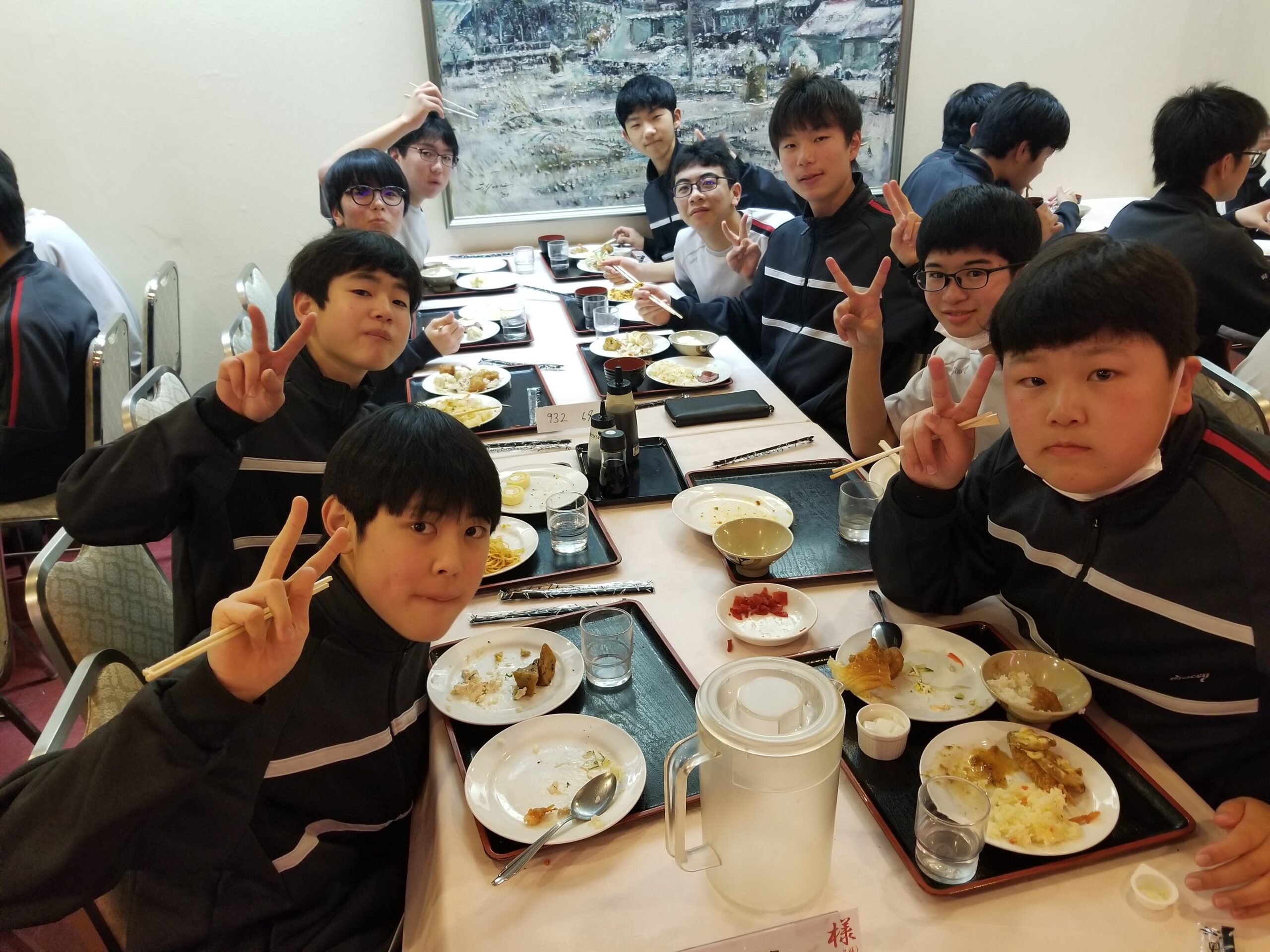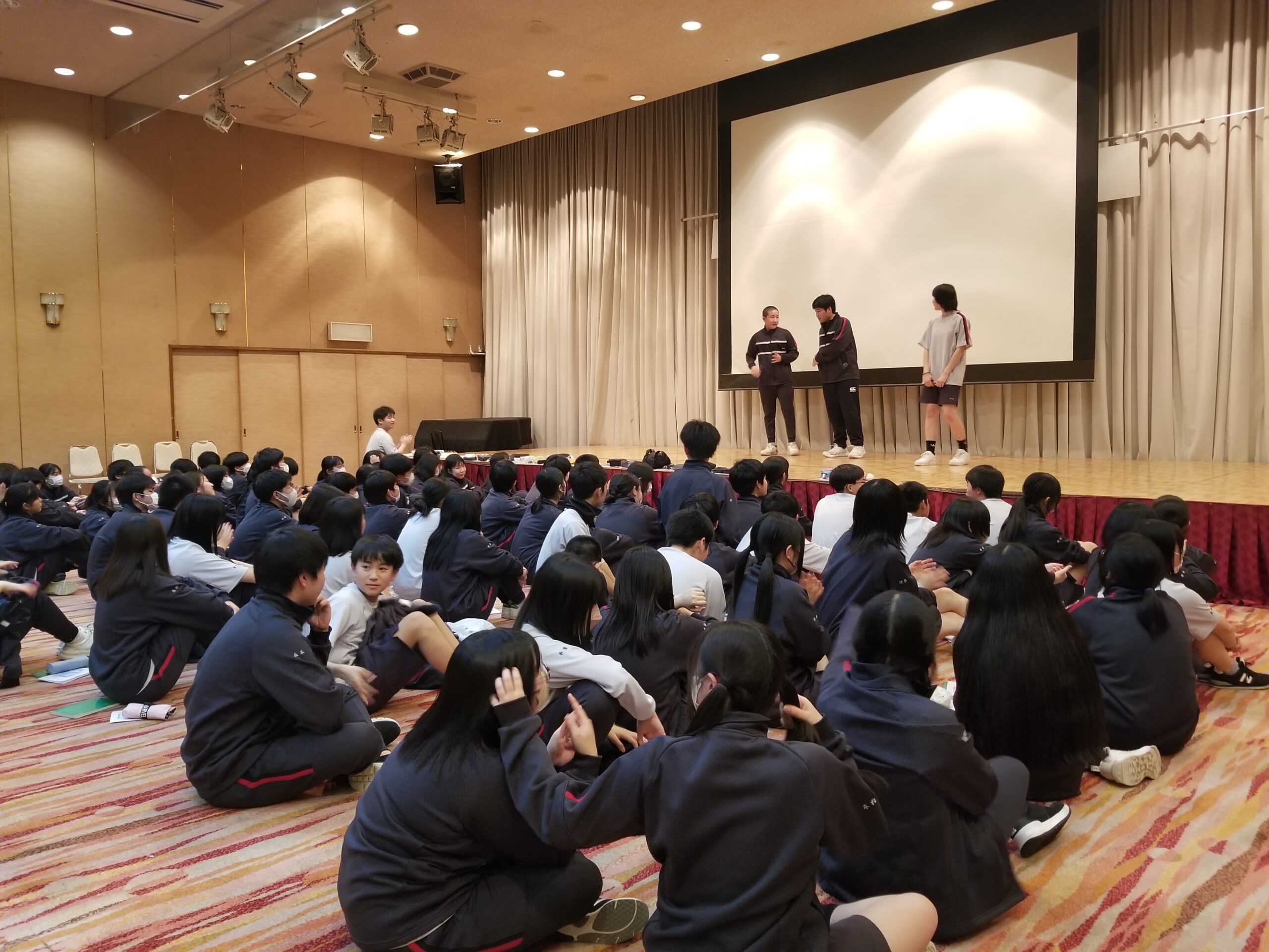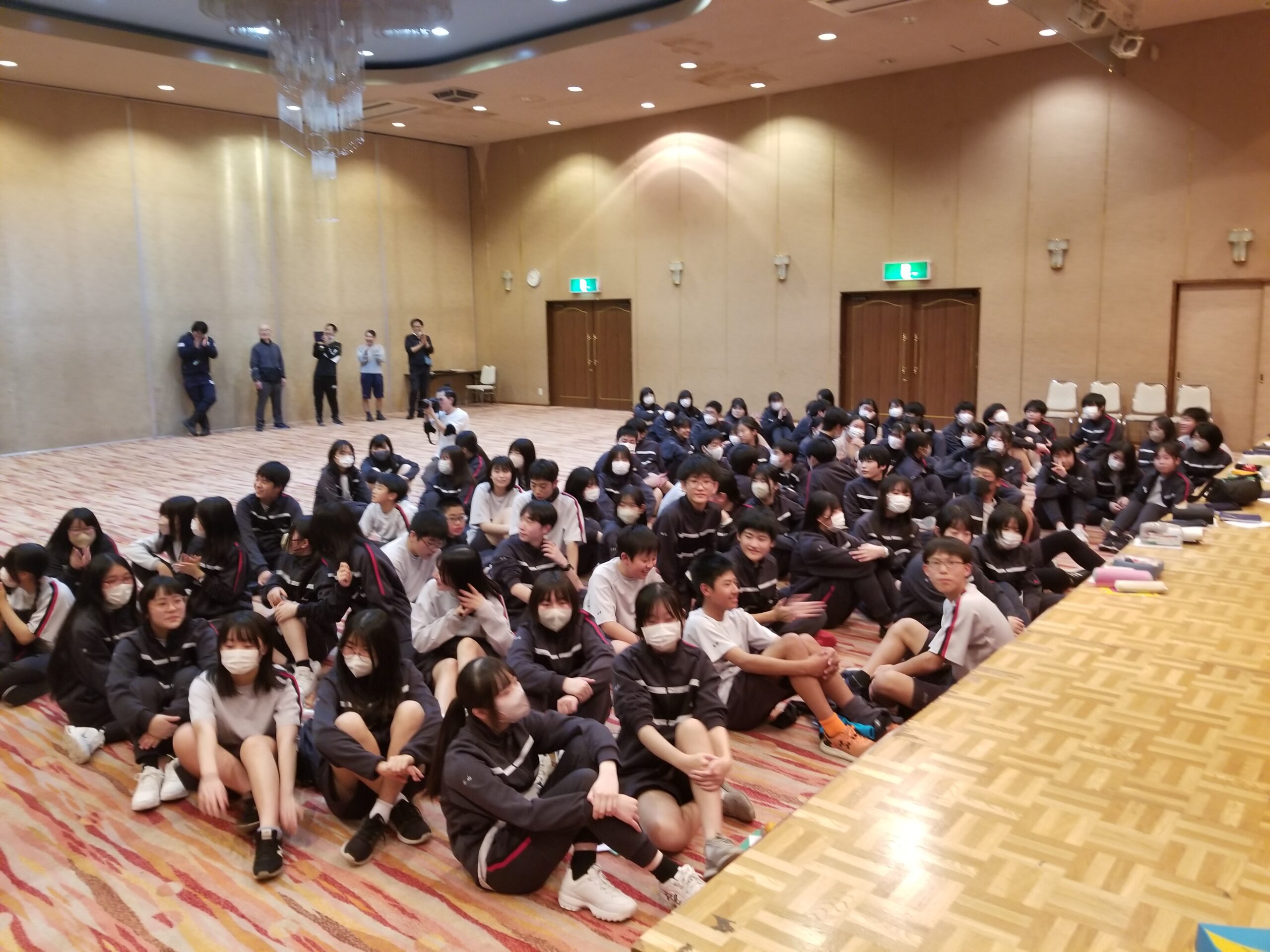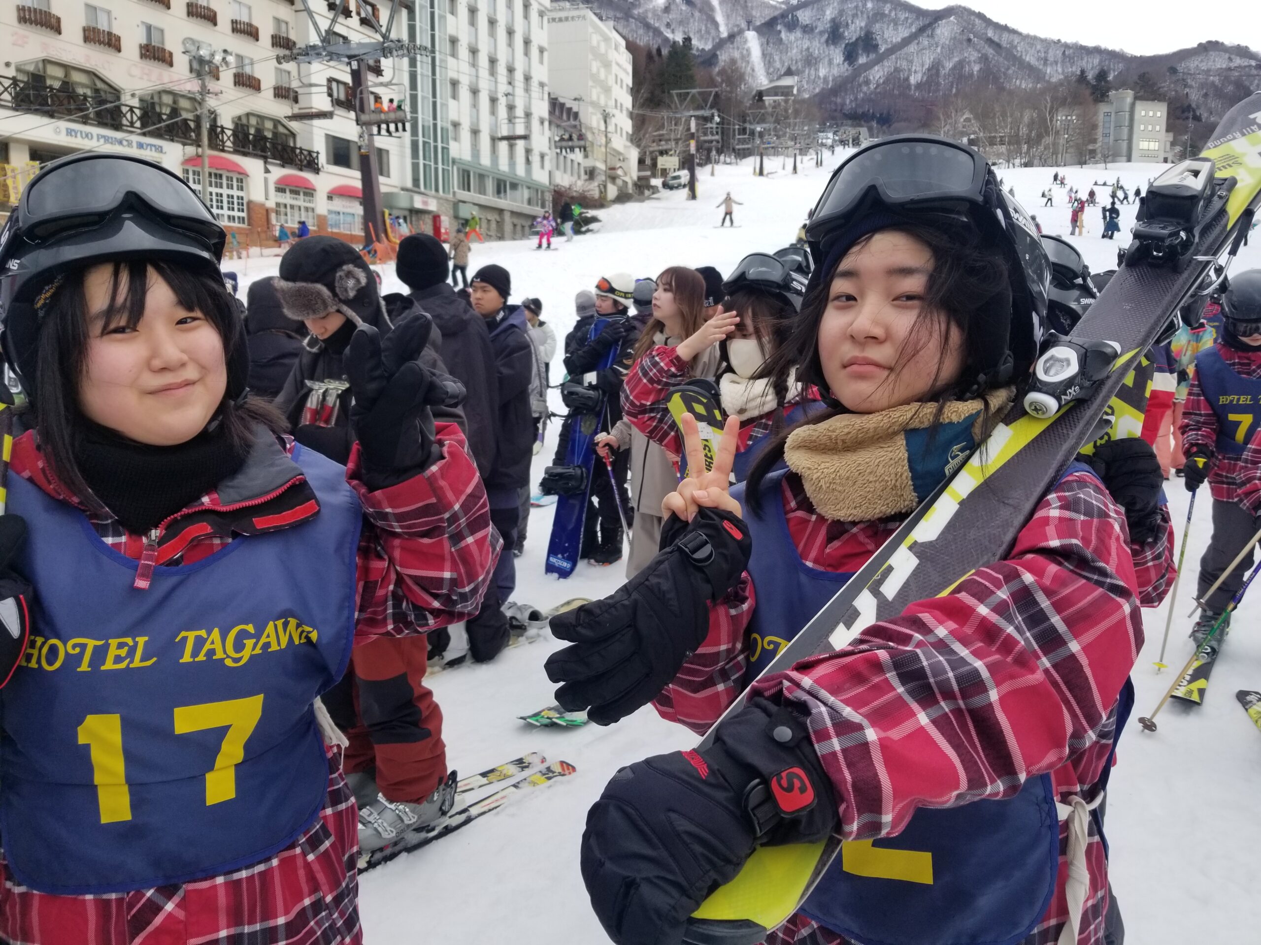 中学二年生はスキー教室で北志賀高原竜王スキーバークに来てきます。初日の今日は、午後からスキーレッスン。天気が心配されましたが、雨に降られることもなく、レベル班別のレッスンを終えました。約半数が初めての体験でしたが、みんな頑張りました。夕食後はレク委員の企画運営による楽しい会が催され、楽しい1日となりました。