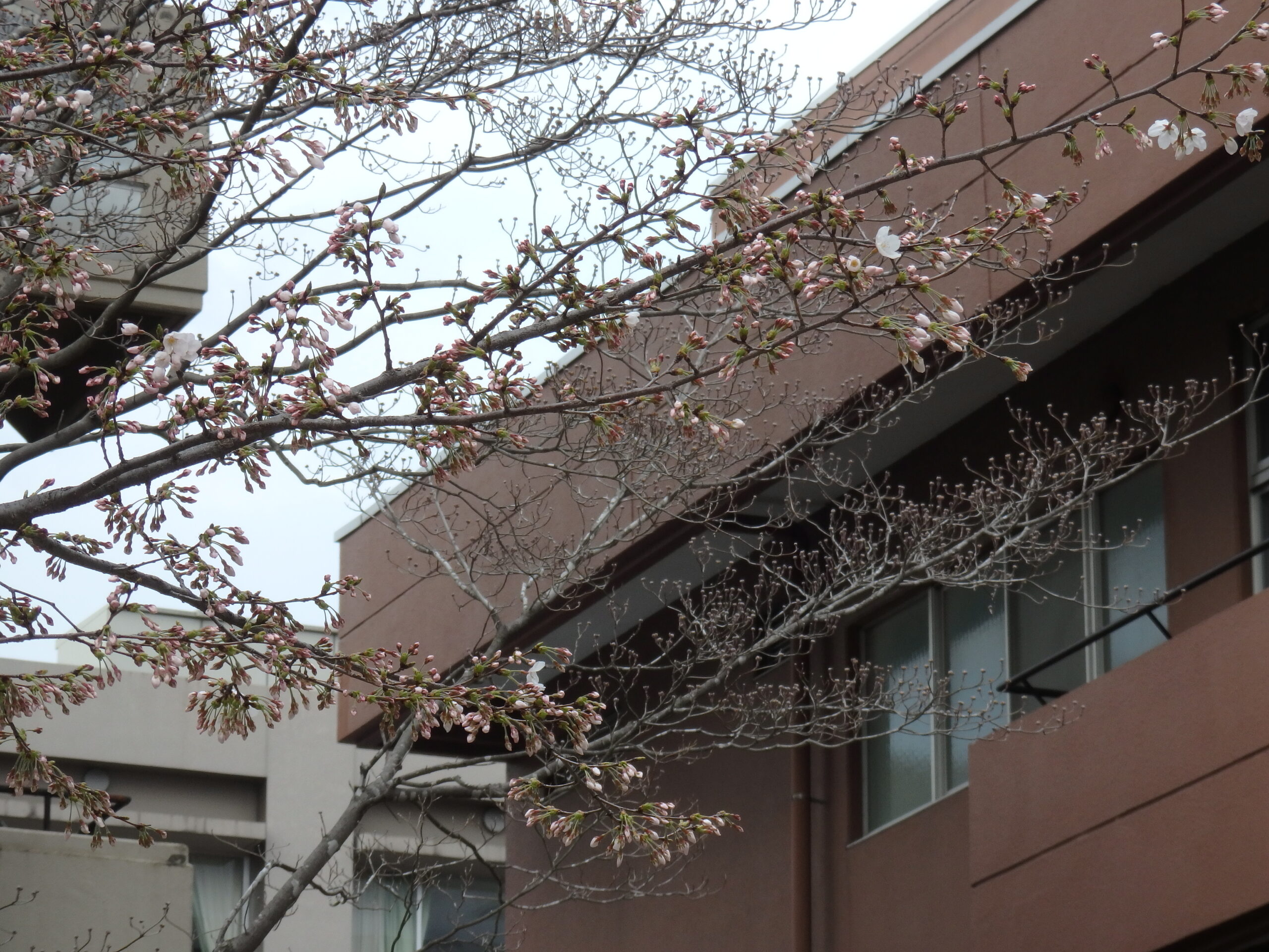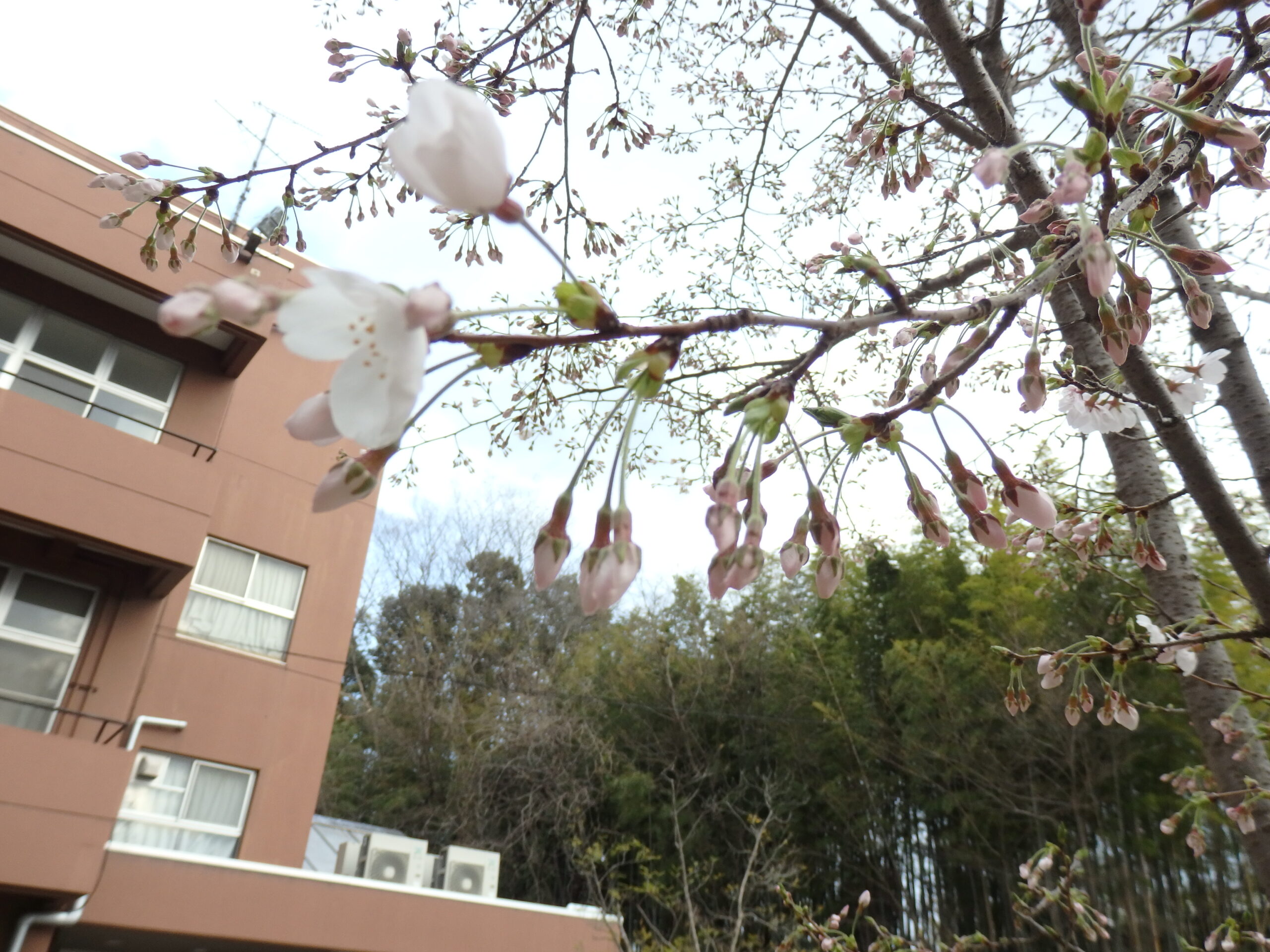 生徒を待ちわびる校舎、桜