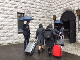 本日より、希望者対象のブリティッシュヒルズ語学研修が始まりました。毎年、この時期に希望生徒が2泊3日の語学研修に参加しており、今年は中学校と高等学校から77人が参加しています。