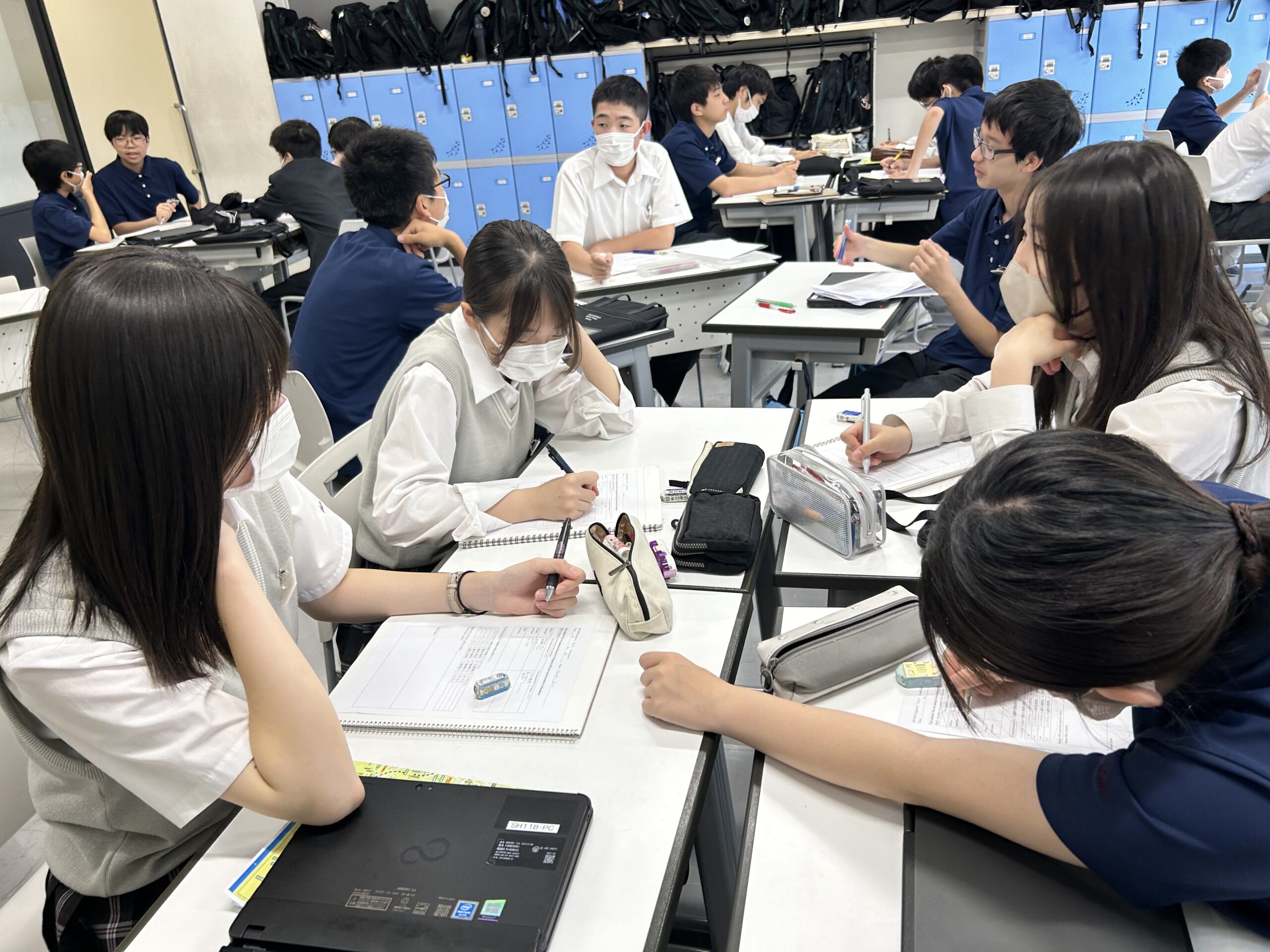 中学2年生は、来週の鎌倉での校外学習中に外国人観光客に英語でインタビューをします。これは普段勉強している英語を実際に使う機会となり、インタビューをした後には鎌倉新聞にまとめます。今日の英語の授業では、当日に向けてインタビュー前・インタビュー中・インタビュー後のマナーを考えました。昌平中学校の生徒そして日本を代表して外国人にインタビューをするということを意識しながらどのような態度がふさわしいのか考え実行することはとても大事なことです。そして、その後は質問項目を<About their country(相手の国について)>、<About Japan(日本について)>という二つの項目に分けて考えました。次の授業では考えた質問をグループのメンバーと持ち寄って実際にグループで何を聞くかをまとめ、インタビューの準備を進めていきます。