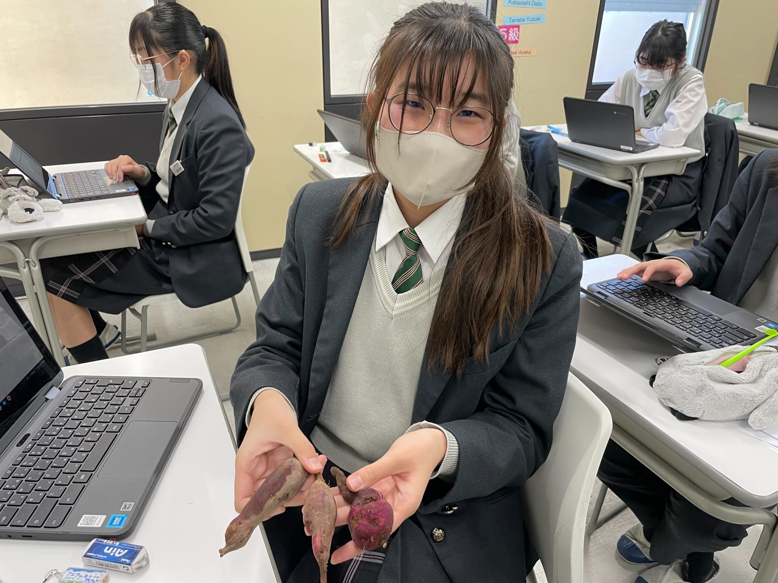 2年生では技術の授業で育てて収穫したサツマイモを教室で炊飯器を使いふかしています。待っている間に各自パソコンでオンライン教材に取り組んでいますが、だんだん教室中においしそうなにおいがただよってきました。おなかがすきましたね~!