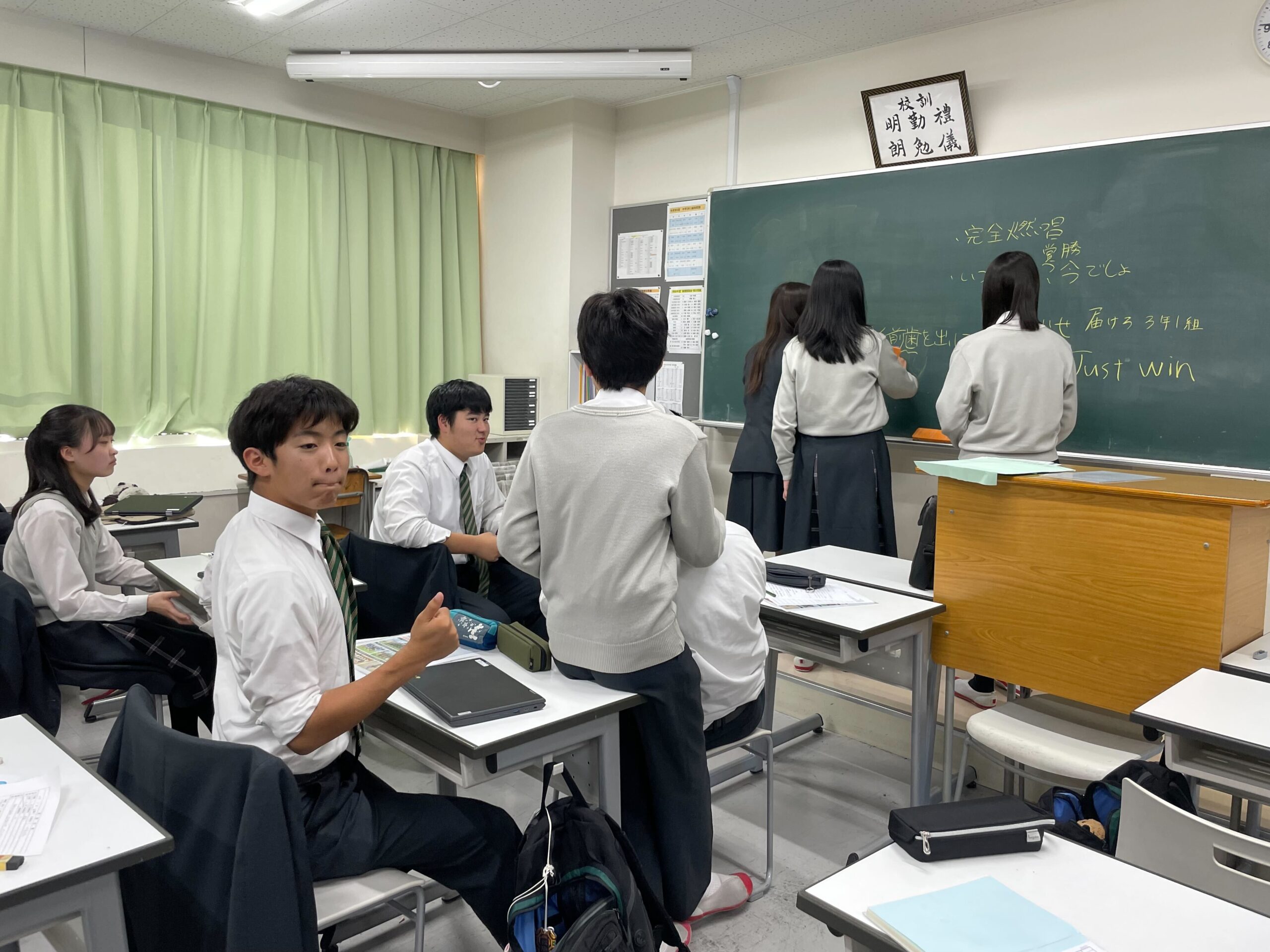 期末考査が本日の2限で終了し、3限はホームルームです。いくつかのクラスの様子をのぞいてみましょう!