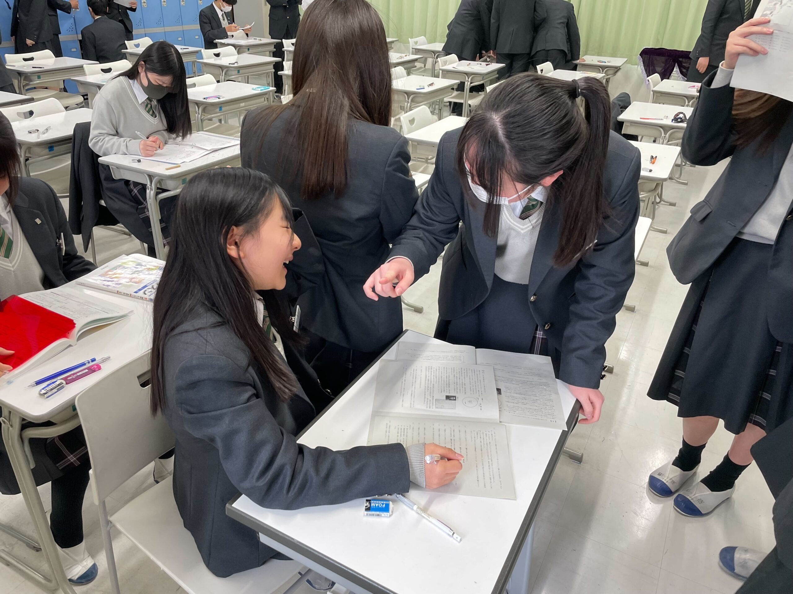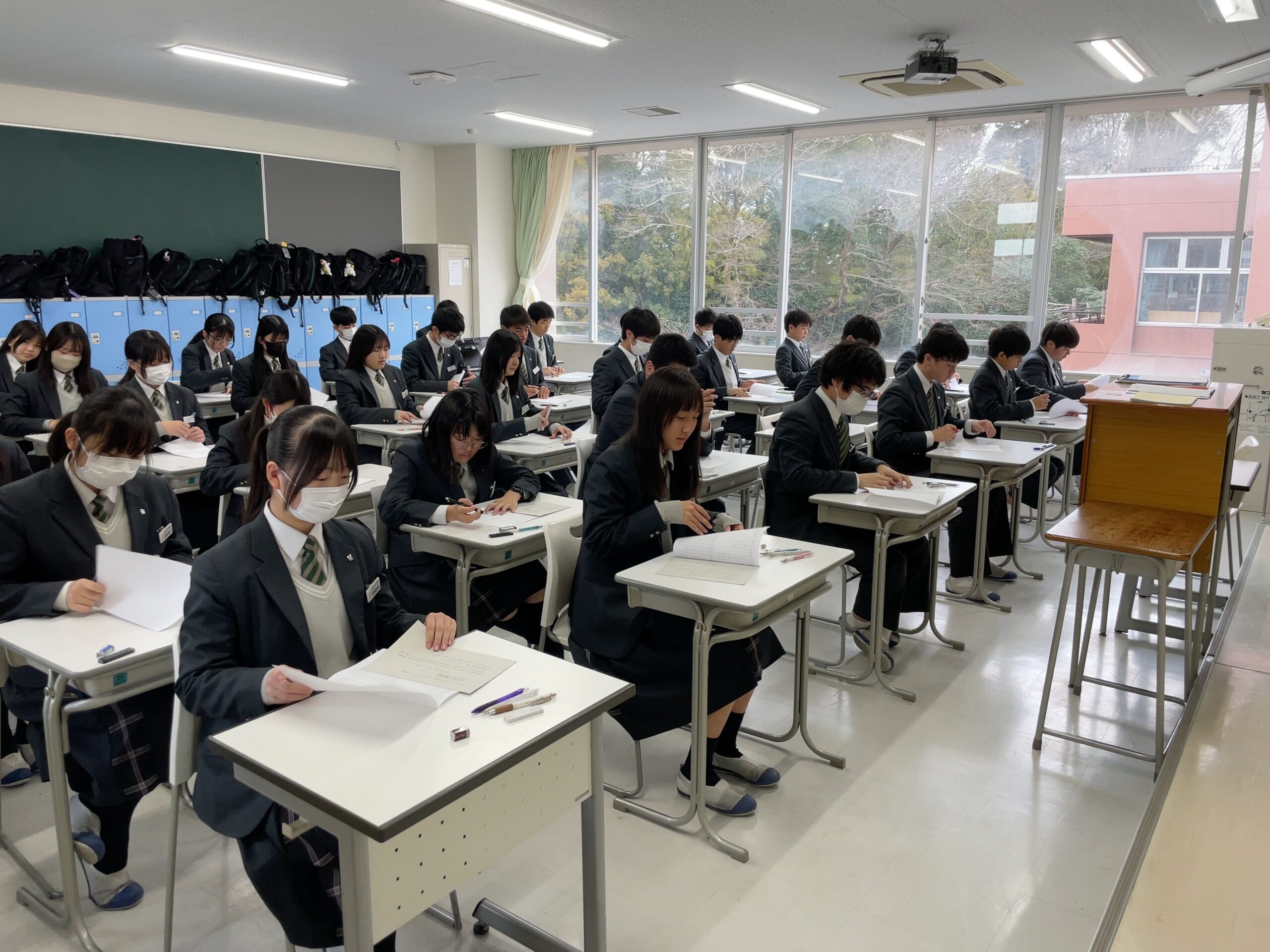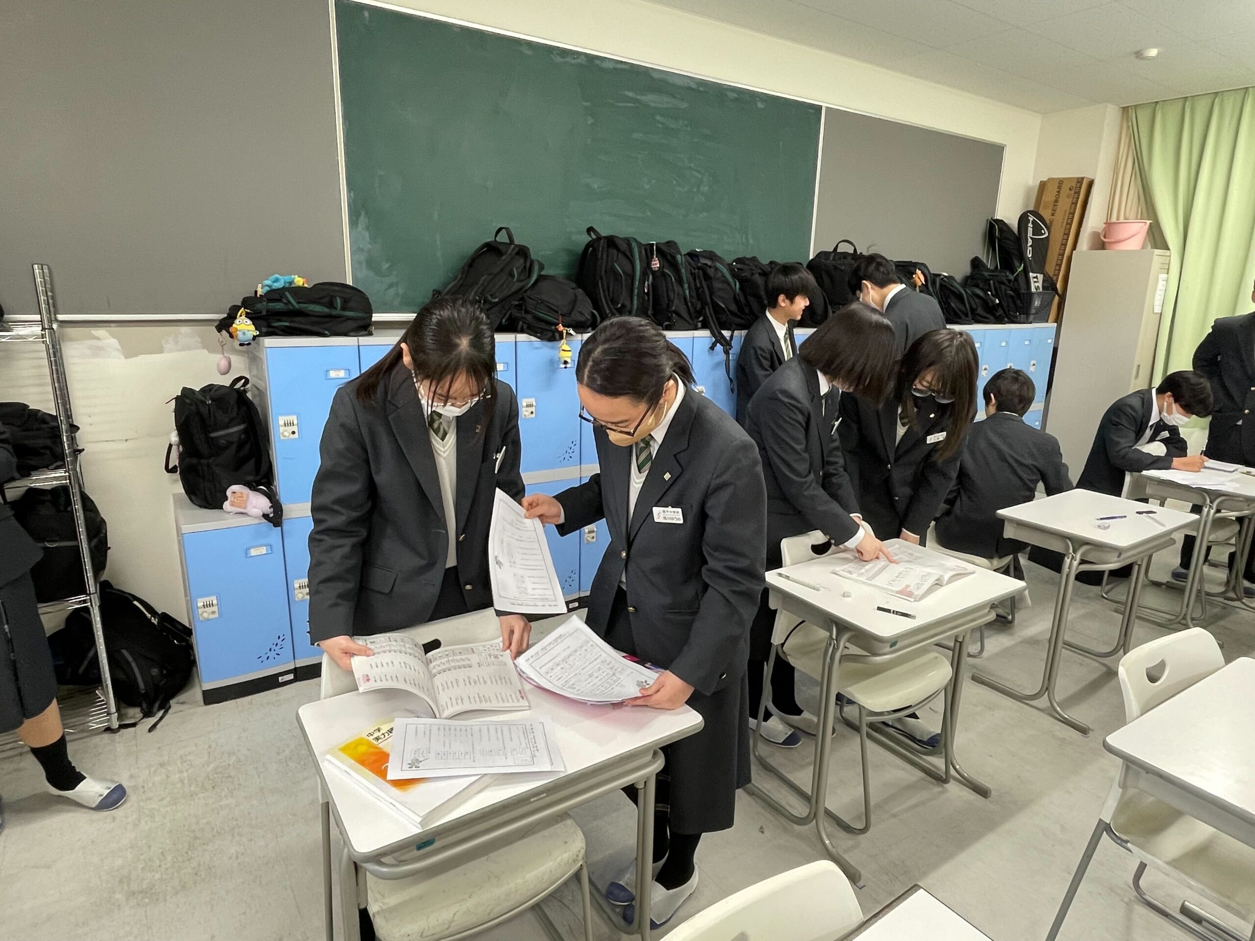 今年度最後の考査「学年末考査」の真っ最中です。家庭でもしっかりと勉強をしてきて、試験開始前の教室でも友達同士で確認し合い、最後まであきらめずに準備しています。特に3年生は中学での最後の、そして高校進学前の大事な考査です。考査の終わる最後の1分、1秒までしっかりとどの生徒もがんばっています!!