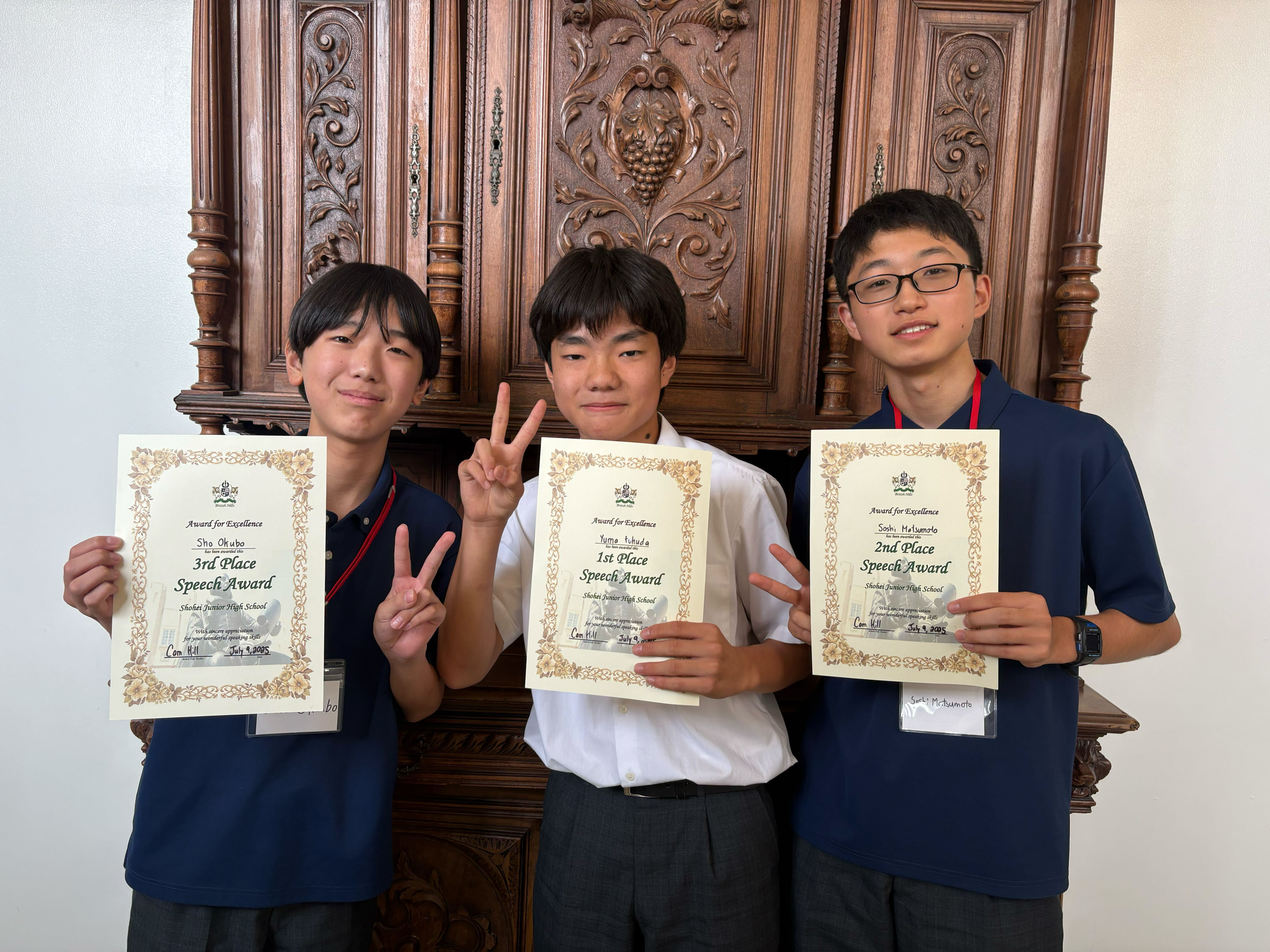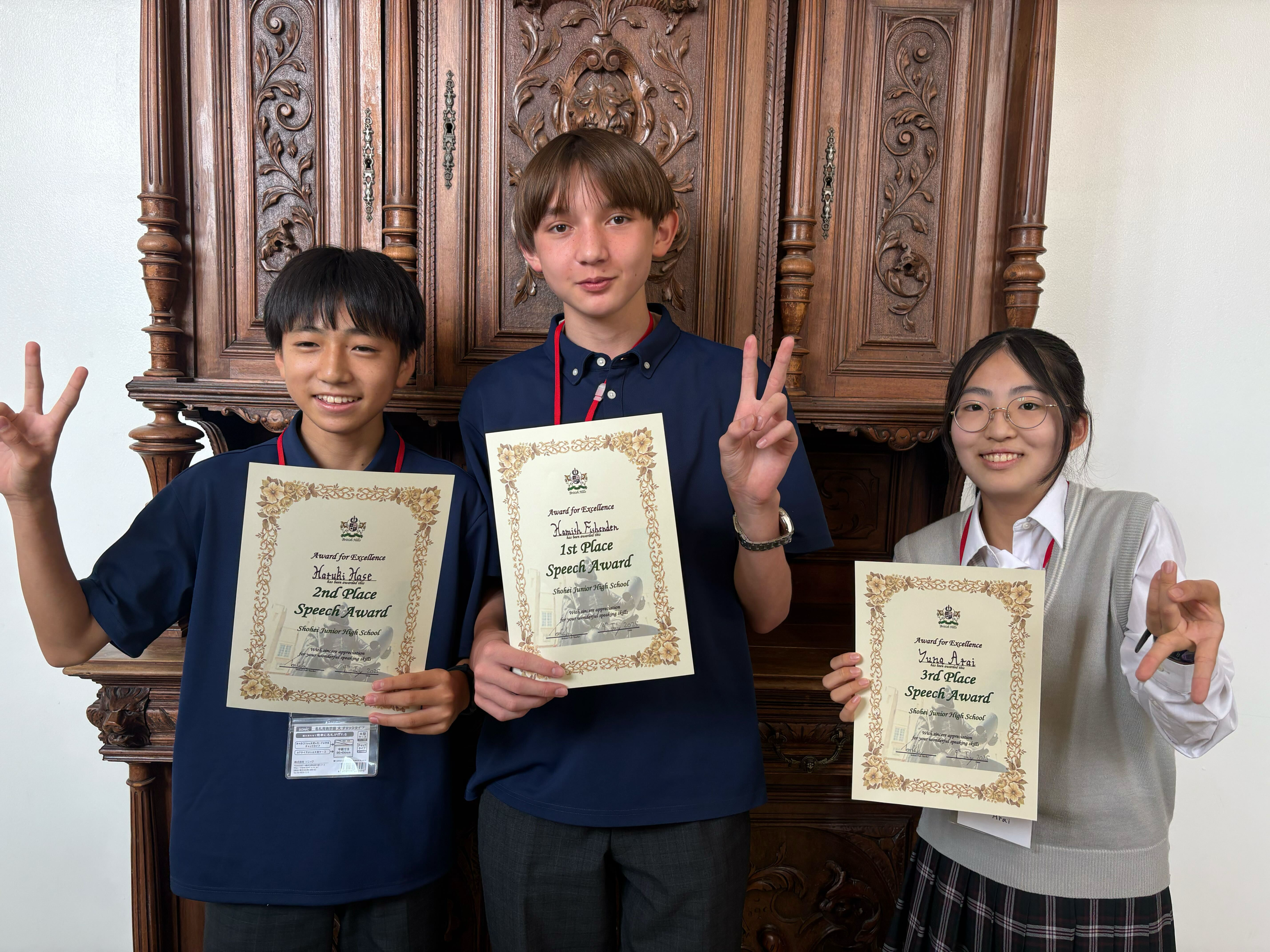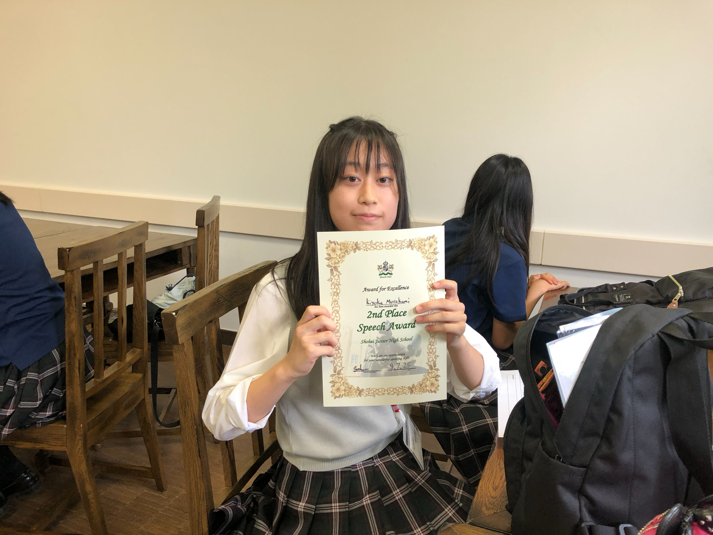 ついに最終日となりました。昨日スピーチを終えた1グループ以外のすべてのグループのスピーチ発表がありました。学校の英語Wの時間に作った自分のMy favorite country(私の好きな国)について、朝から原稿をずっと見て本番に備えている生徒を多く見かけました。