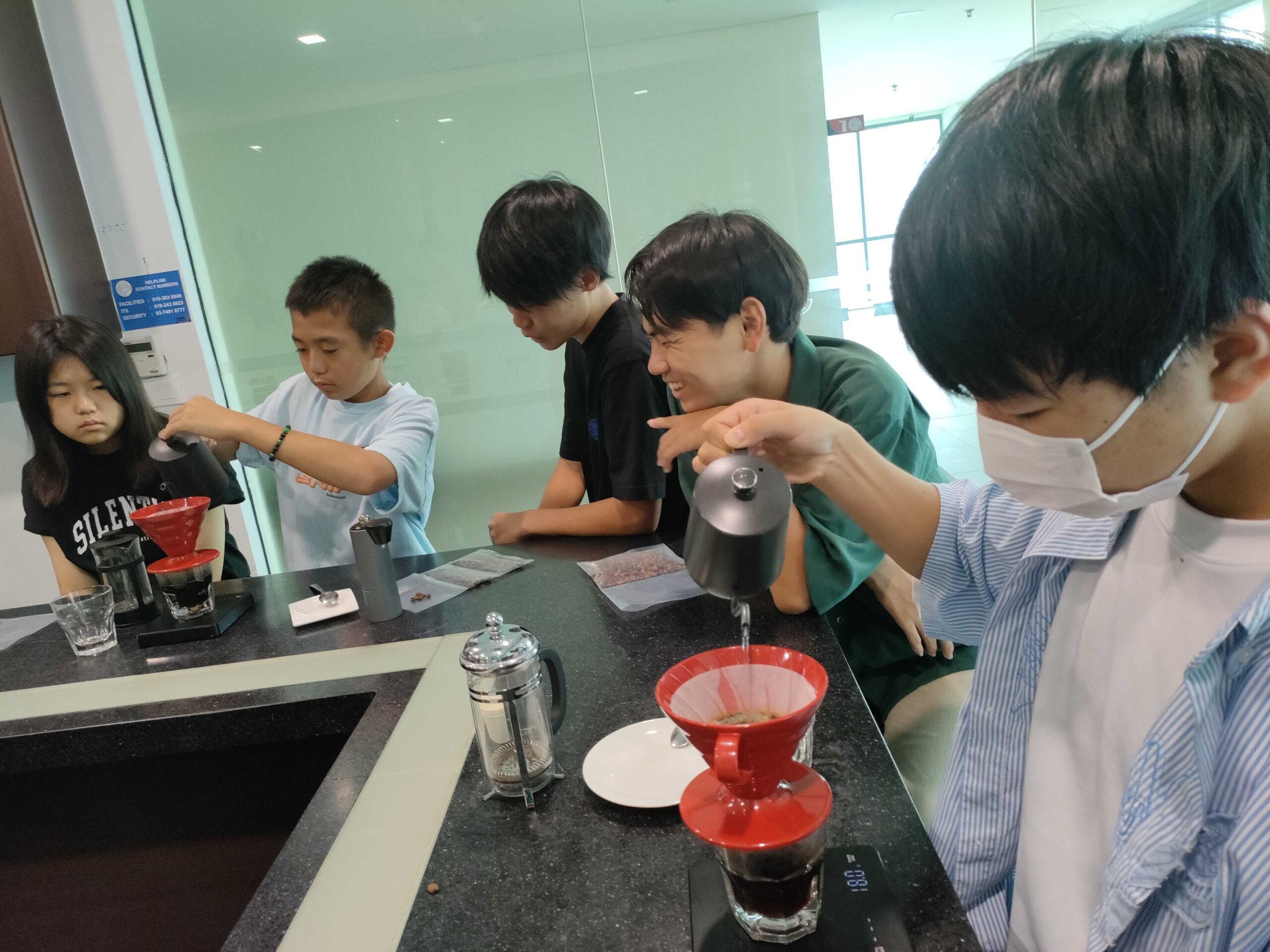 そして、Day6は「文化」「学問(アカデミック)」の体験に特化した1日となりました。「文化」パートでは、Cultural Cuisine Experienceと題して、五つ星ホテルにてマレーシアをはじめとする様々な民族料理をビュッフェ形式で味わうことができました(贅沢すぎ!)。そして、「学問」パートでは、昨日までのアートに続き、サンウェイ大学が誇る“ホスピタリティ”のワークショップを受けました。今回は「コーヒー豆」を題材に、コーヒーの歴史、豆の栽培方法についてレクチャーを受ながら、実際に豆をコンロで焙煎し、淹れてテイストする一連の工程を体験しました。理論と実践こそが学問の醍醐味ですね。このような体験学習を通じて、生徒たちが進路(キャリア)を考えるきっかけになれば何よりです!