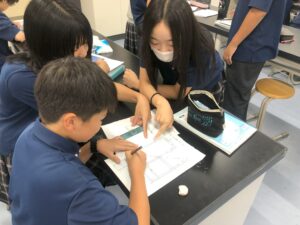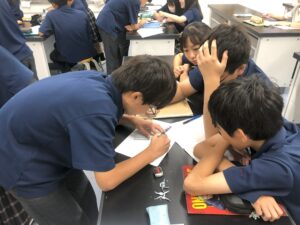 この日は2年3組の生徒たちが班員と相談しながら、デザインした回路を
