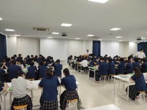 動画の後、生徒たちは植松さんの話から学んだことをワークシートにまとめました。授業の最後に村上先生から「まずは、植松さんが仰るようように“思うは招く”を大事にしてほしい。だが、それだけでは足りない。思ったことを“行動(実践/探究)”してこそ結果が伴う。行動して実現してほしい!」との激励がありました。みなさんの行動を我々もサポートしていきます!!