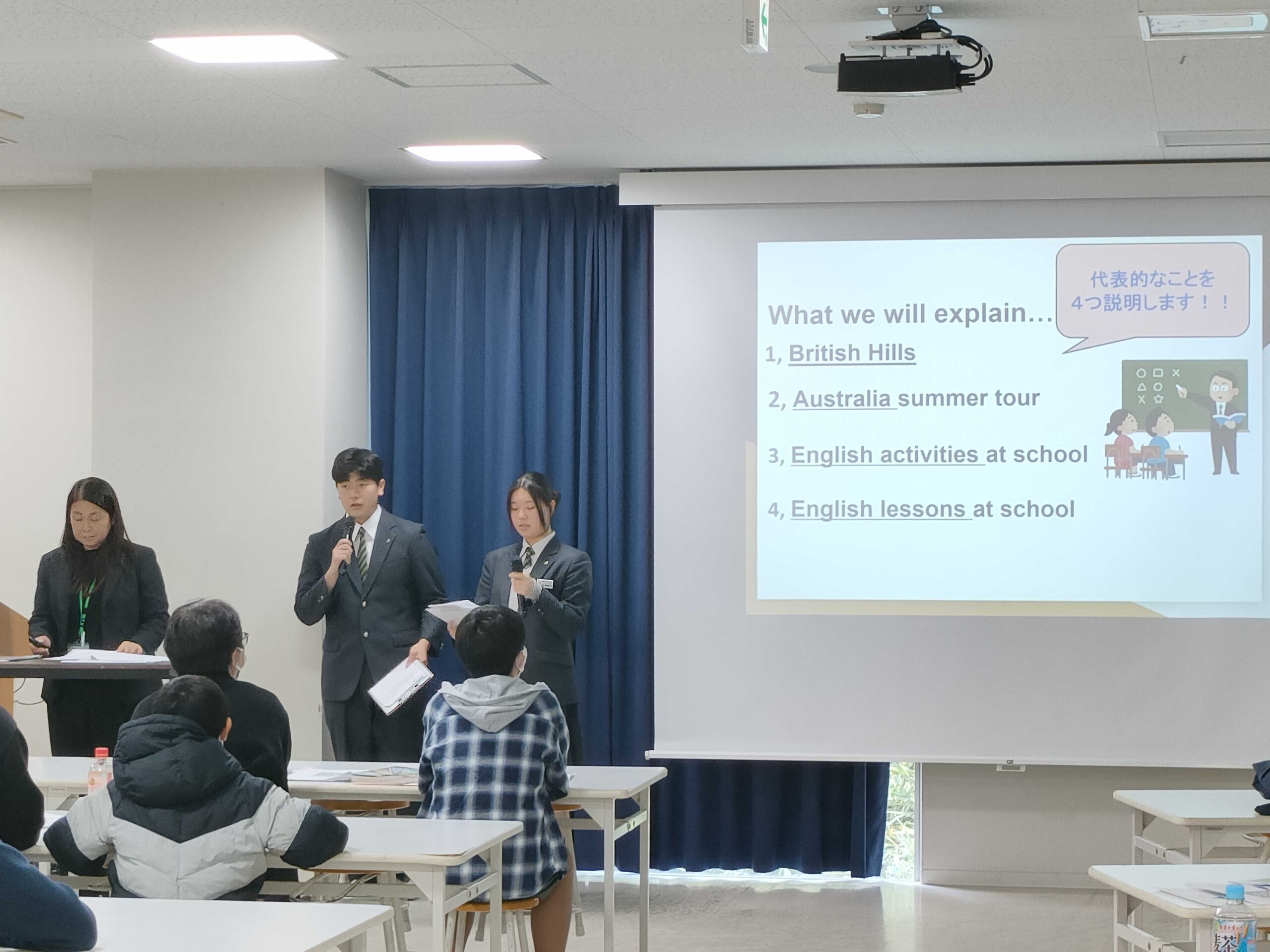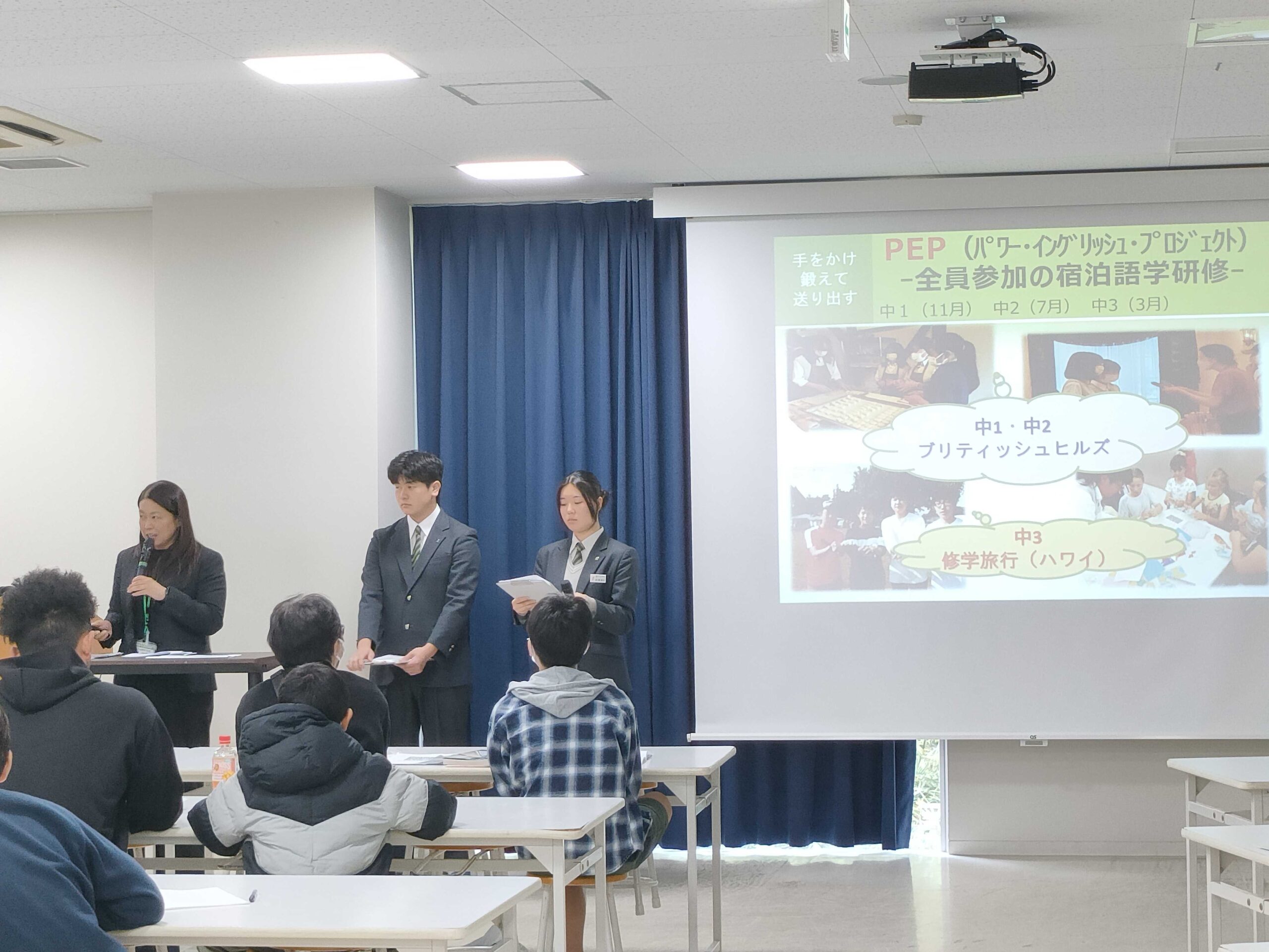 ▶本校の英語教育について –> PEPや語学研修での経験について英語で紹介する。