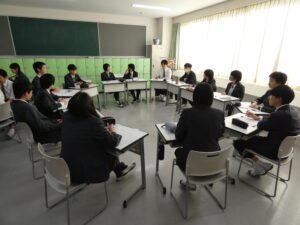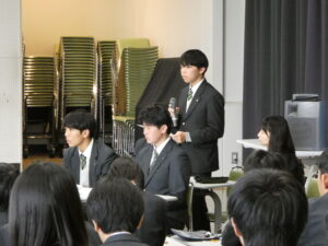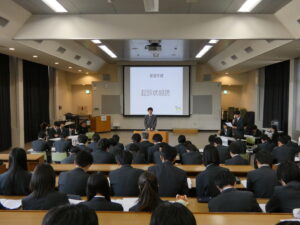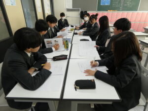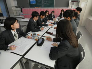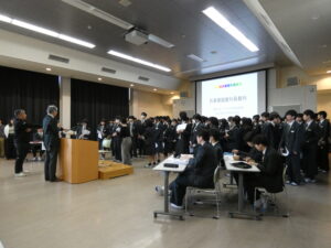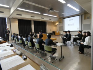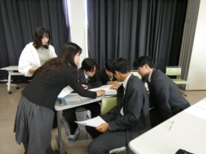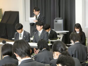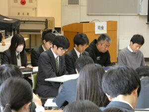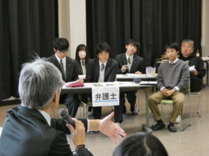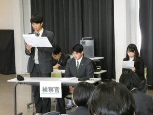 生徒は、午前中には法律についての講義受講、模擬裁判の傍聴をして、午後には生徒同士で協議を通して判決を推測し、その後判決の言い渡しを傍聴、まとめ講義を受講しました。