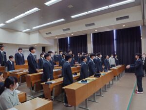 学年主任の先生から、どういうことを意識しなければいけないのか話があり、真剣に聞いていました。