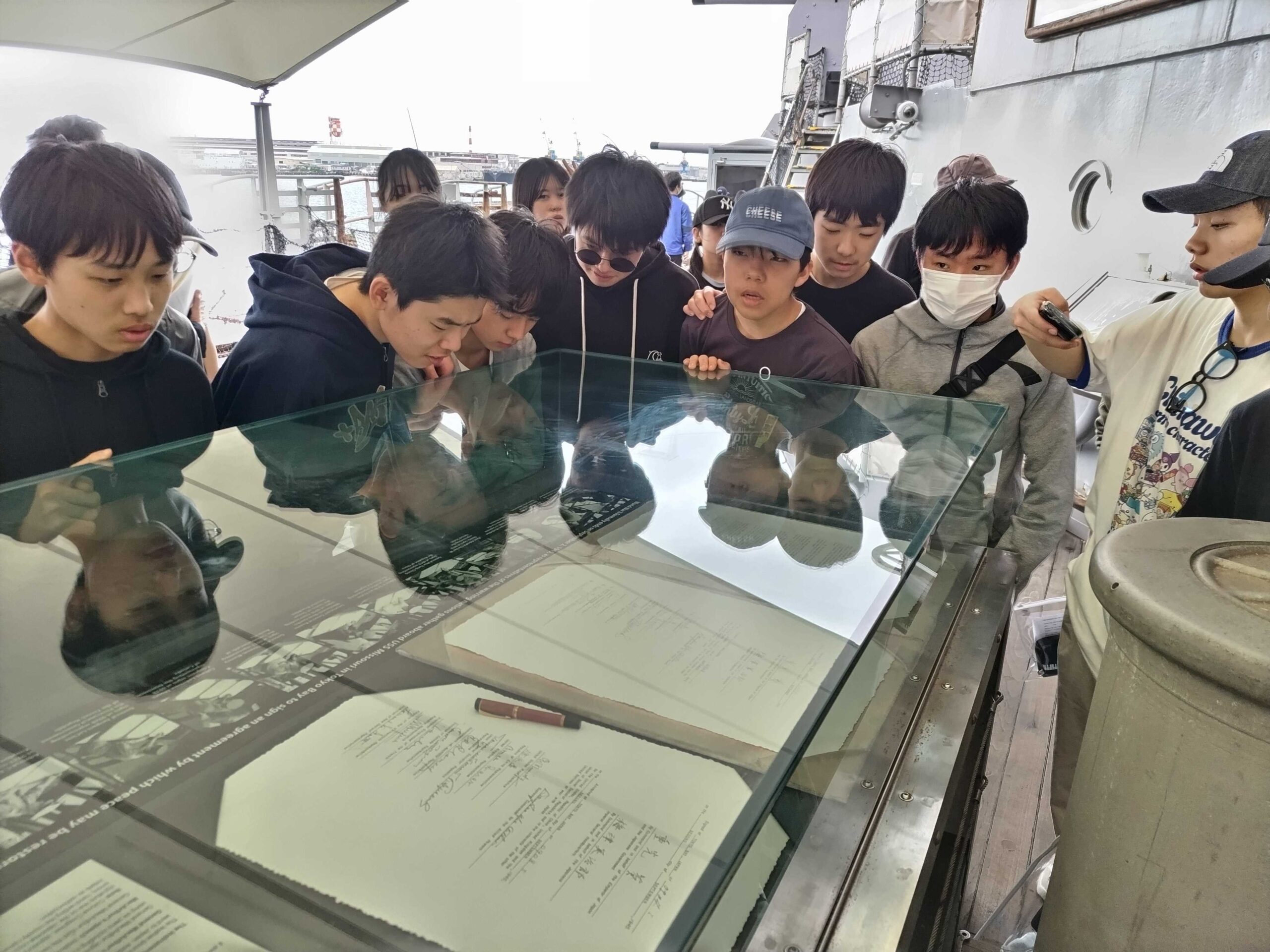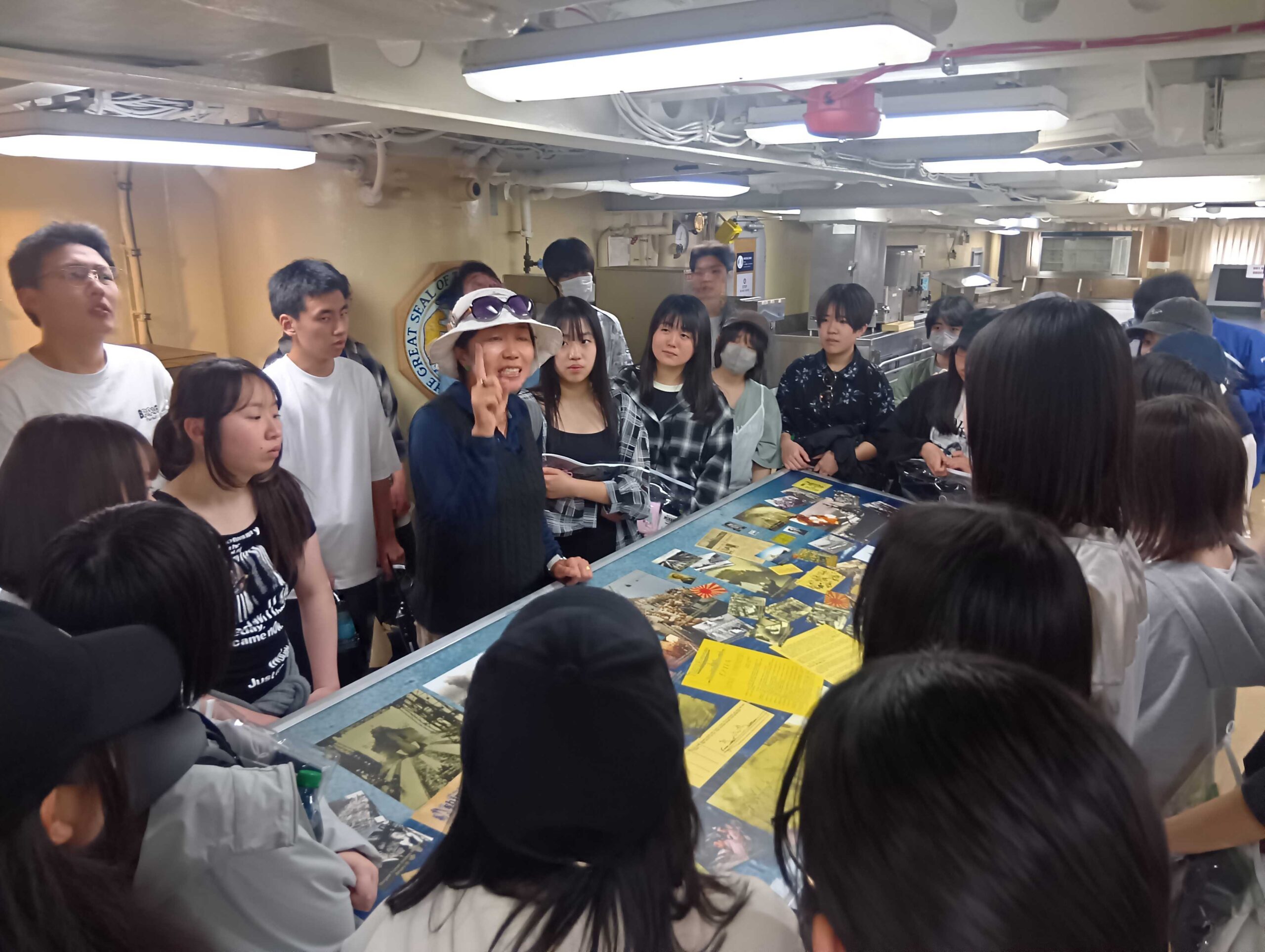 まずは真珠湾を訪れ、戦艦ミズーリを見学しました。太平洋戦争開戦の地で、終戦の降伏文書が調印された船を目の当たりにし、胸に迫るものがありました。生徒たちも神妙な面持ちでガイドさんの説明に聞き入っていました。
