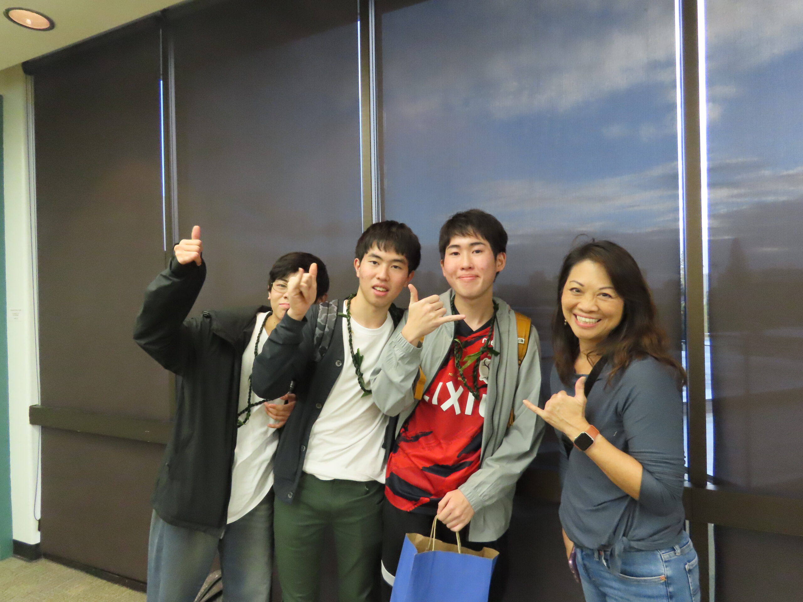 夕方5時にはハワイ大学マノア校でホストファミリーと対面しました。生徒たちは元気いっぱいに挨拶を交わし、それぞれの家庭へ向かっていきました。ホストファミリーとたくさん会話をしながら、英語でのコミュニケーション力を伸ばしていきましょう。