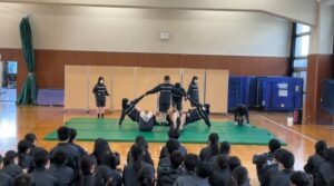 3学期間は、自分たちで演技構成を考えチームごとに授業に取り組んでいました。