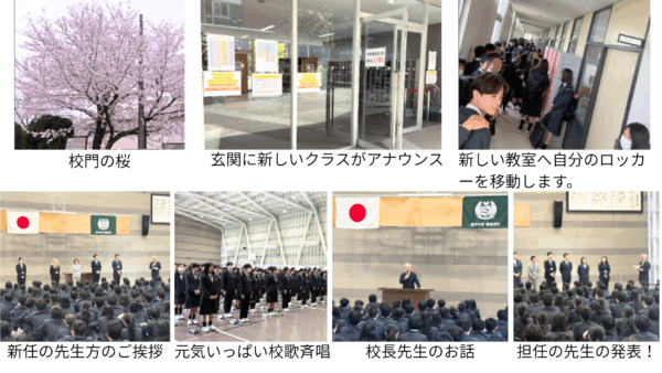 4月6日(月)、うららかな春の日差しの中で、新学期が始まりました。中学1年生は2年生に。2年生は3年生に。明日から入学式で後輩ができることになります。笑顔で迎えましょうね。また一年、みなさんで楽しく学びましょう!