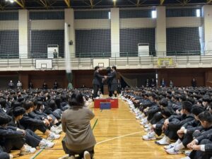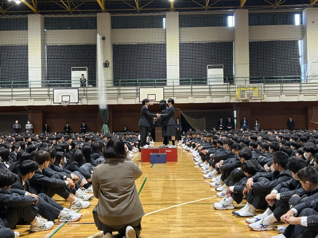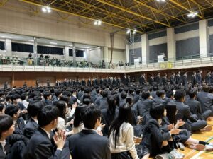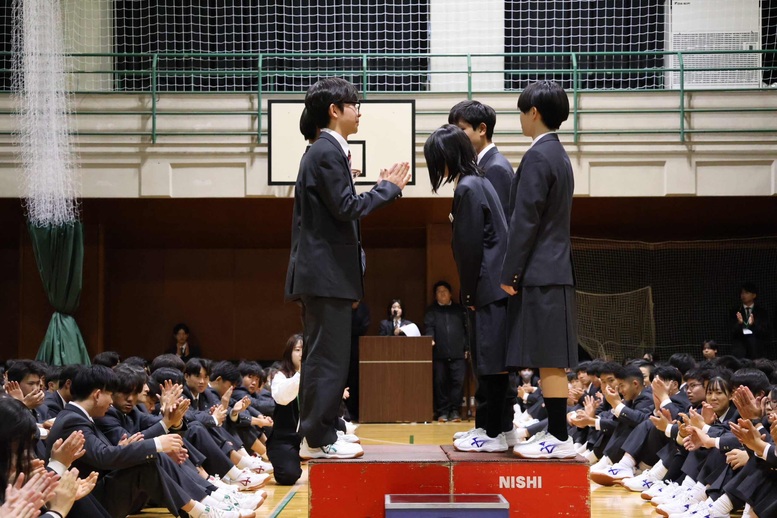 全校生徒が登校する新年度最初の日。中高合同の対面式が行われ、新入生と在校生が一堂に会しました。新入生と在校生の握手に会場には大きな一体感と活気があふれ、今年度のさらなる飛躍を予感させる時間となりました。