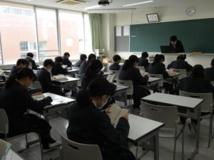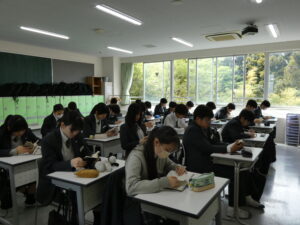 昌平中学校では、全学年で毎日、朝のホームルーム前の10分間に、朝読書を行っています。生徒は時間になるとそれぞれが持参した実用書や小説などの好きな本を取り出し、自分のペースで読み進めます。読書には、心を整える効果に加えて、読み書きの能力や語彙力を向上させる効果があります。朝読書は、昌平中学校創立以来ずっと続いている生徒の習慣の一つです。